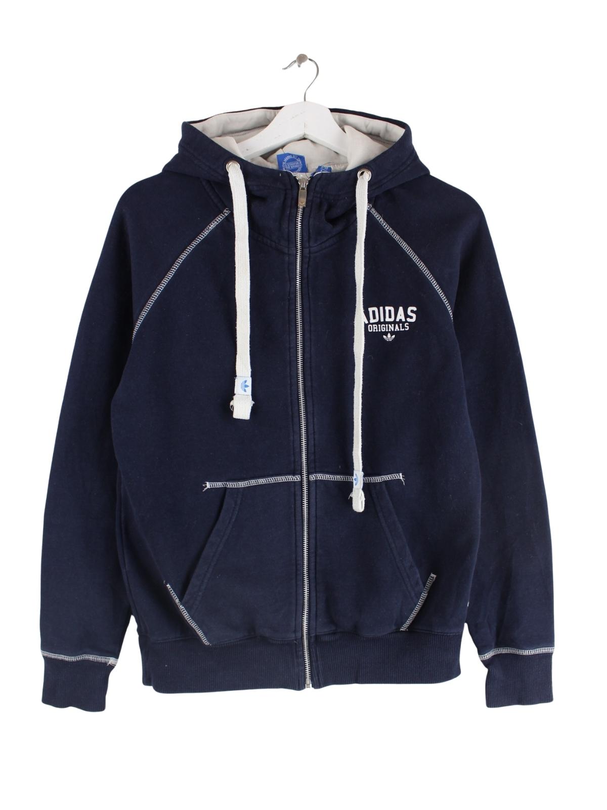 Hoodie aus dem Hause Adidas mit durchgehendem Reißverschluß in Größe S. Er ist aus einer Baumwollmischung hergestellt und in Blau bei uns zu bekommen. Mit schickem undefined Print.