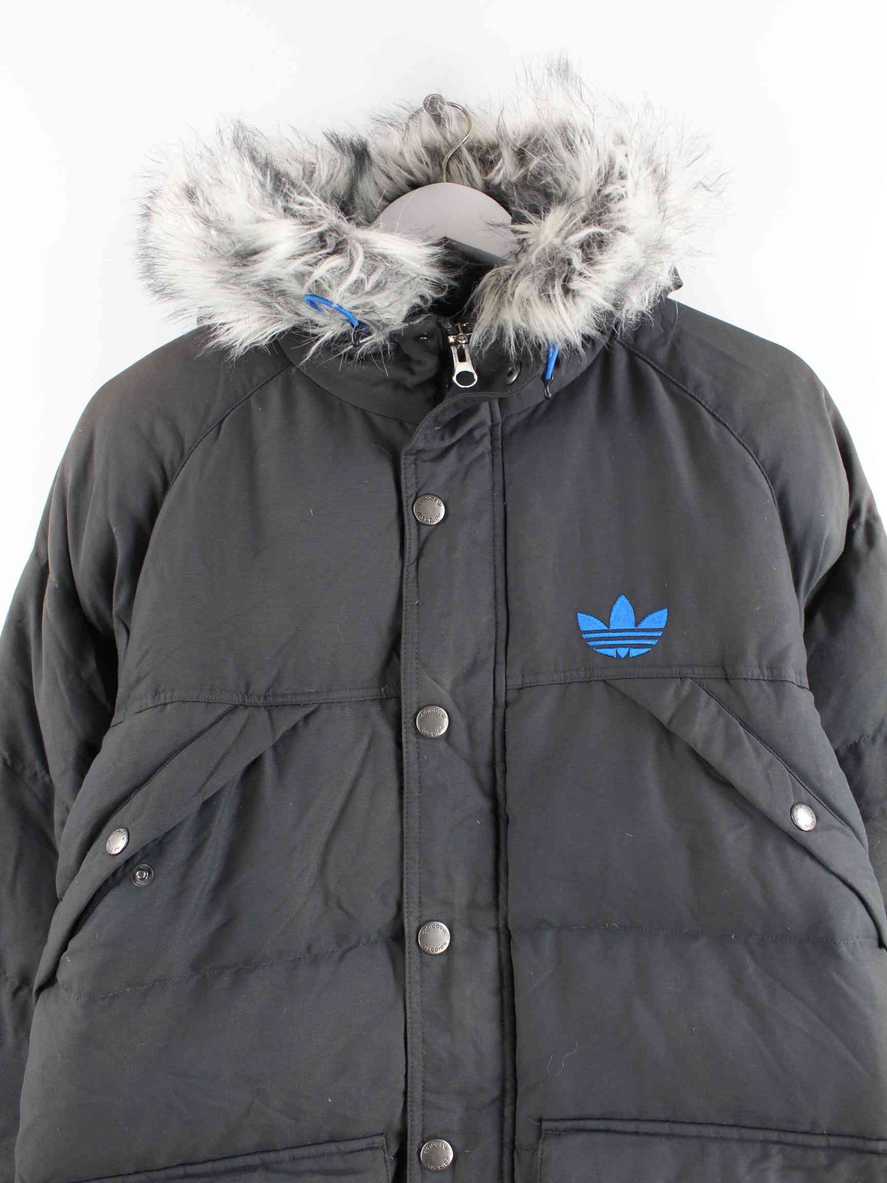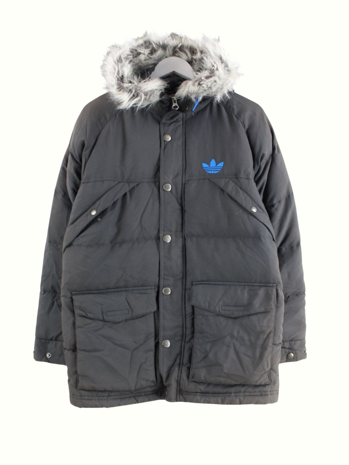Graue Jacke der Marke Adidas in Größe S. Sie ist aus Synthetik und in gutem Zustand zu haben.