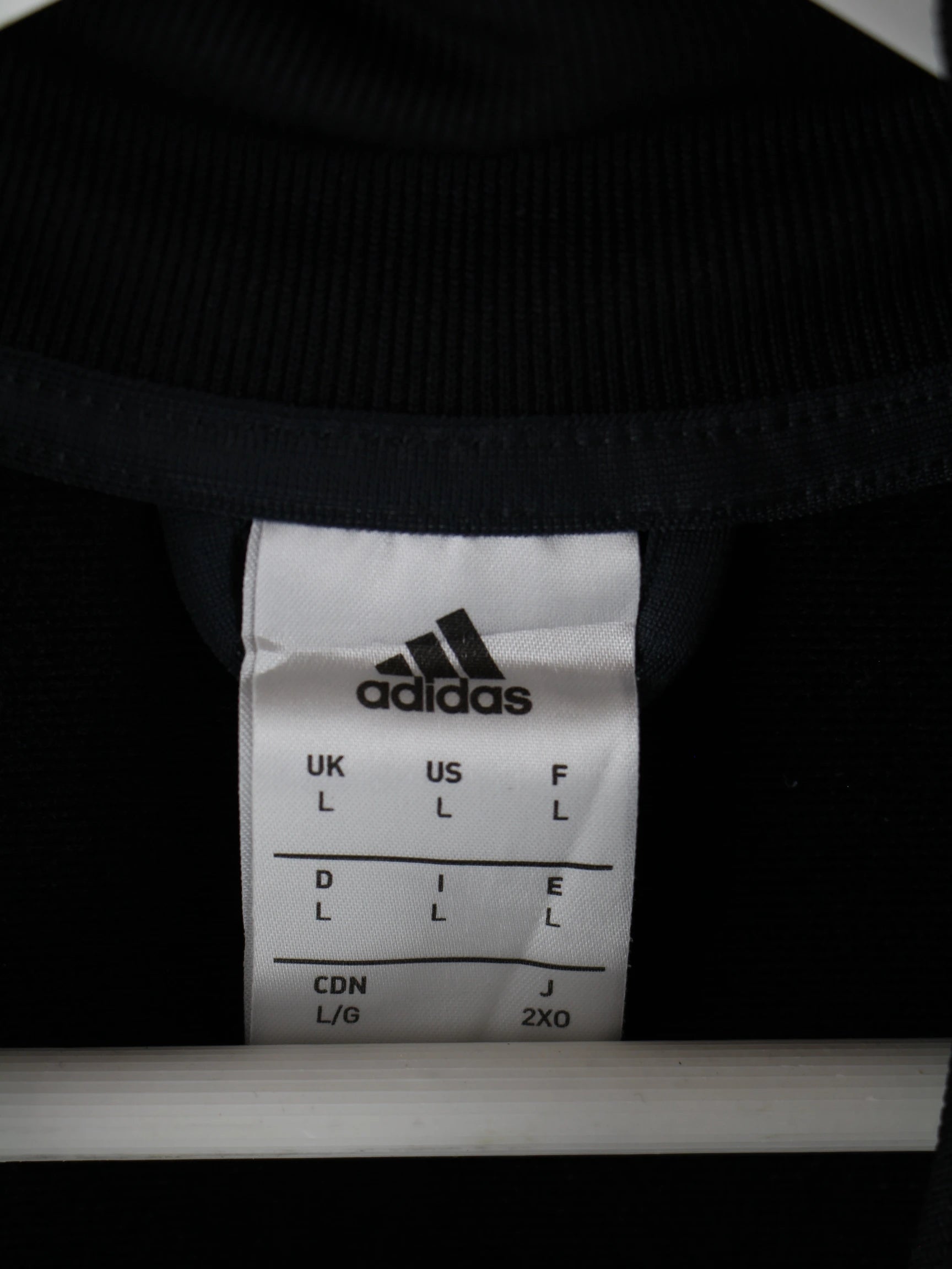 Trainingsjacke der Brand Adidas in Größe L. Sie ist aus Synthetik und in Schwarz bei uns vorrätig.