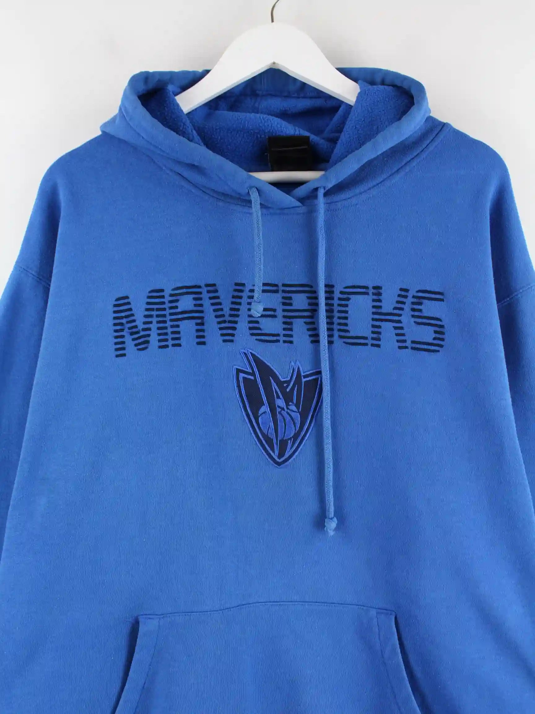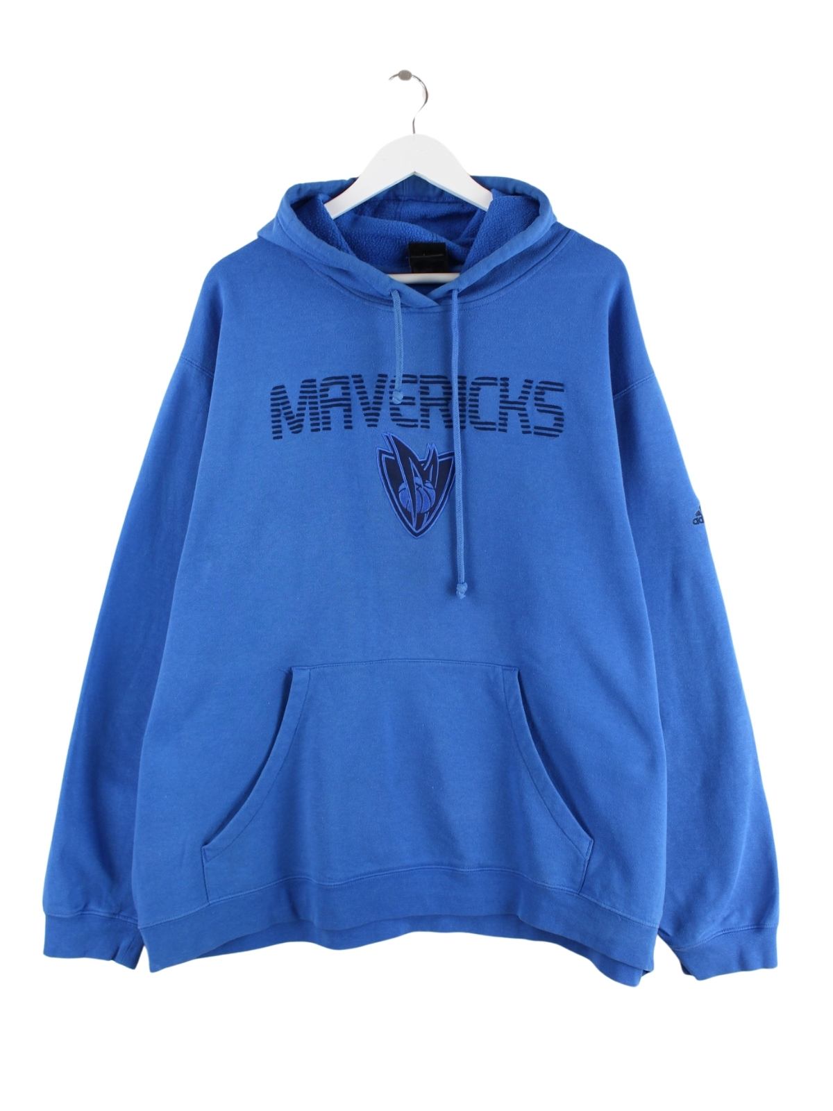 Blauer Hoodie aus dem Hause Adidas in Größe XXL. Er ist aus einer Baumwollmischung angefertigt und in sehr gutem Zustand zu haben. Mit schickem Mavericks Print.