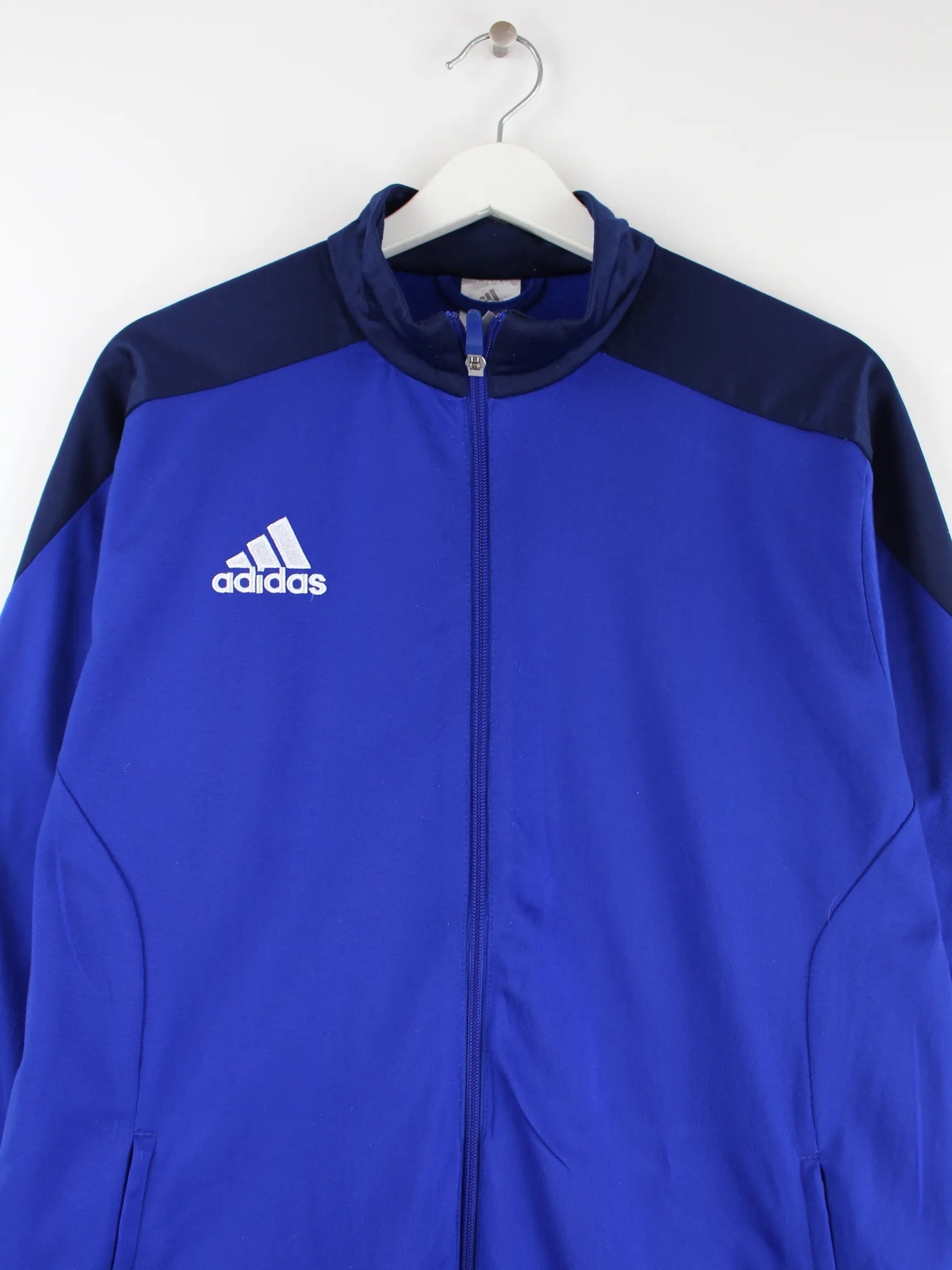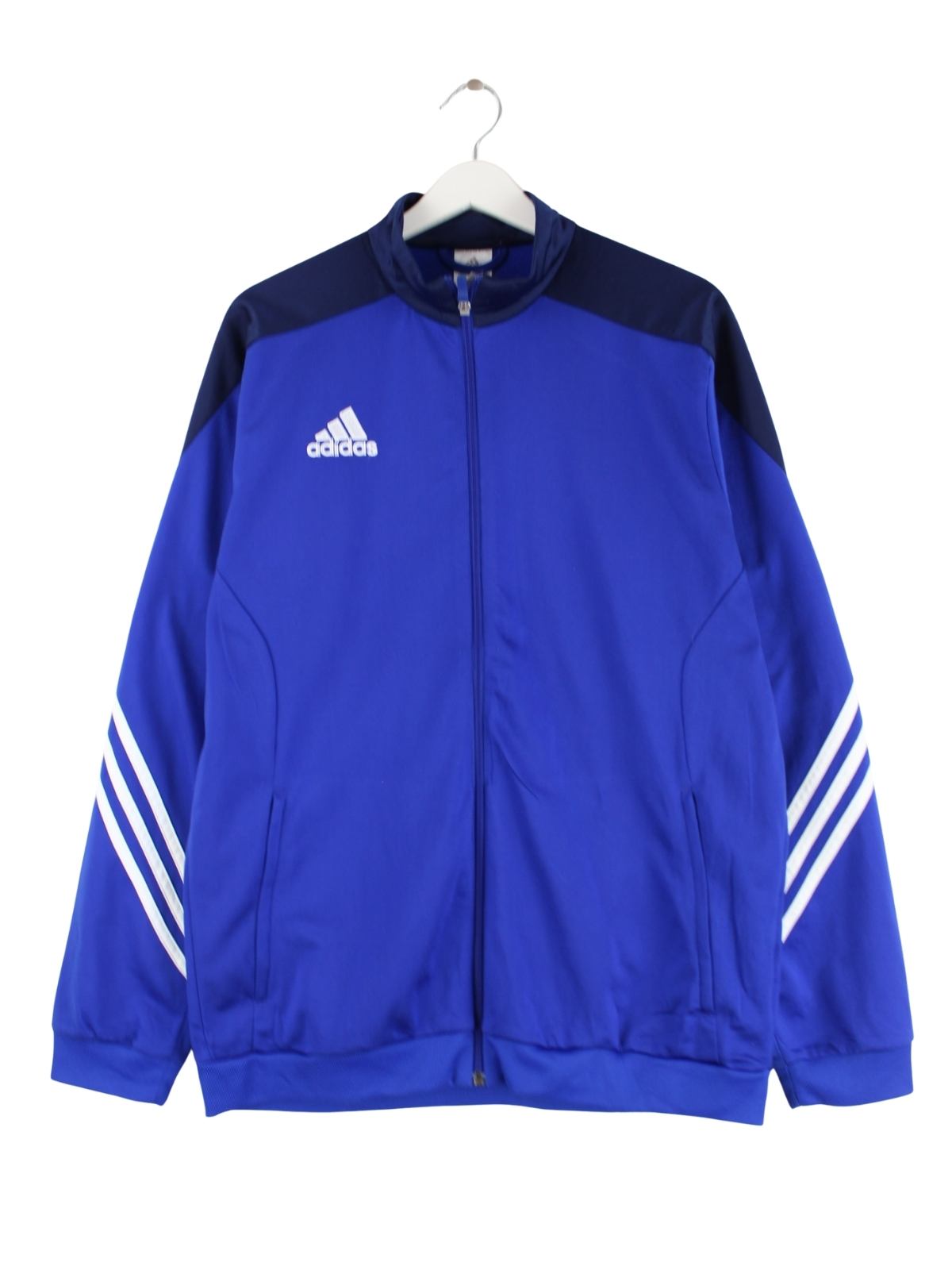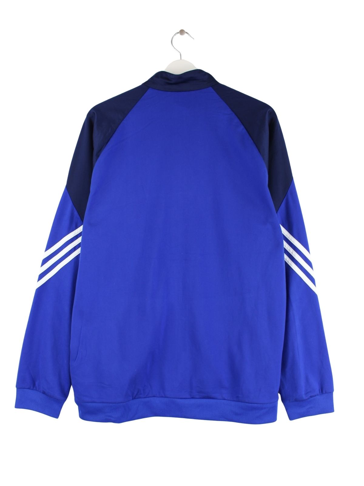 Blaue Trainingsjacke der Marke Adidas in Größe L. Sie ist aus Synthetik angefertigt und in sehr gutem Zustand zu haben.