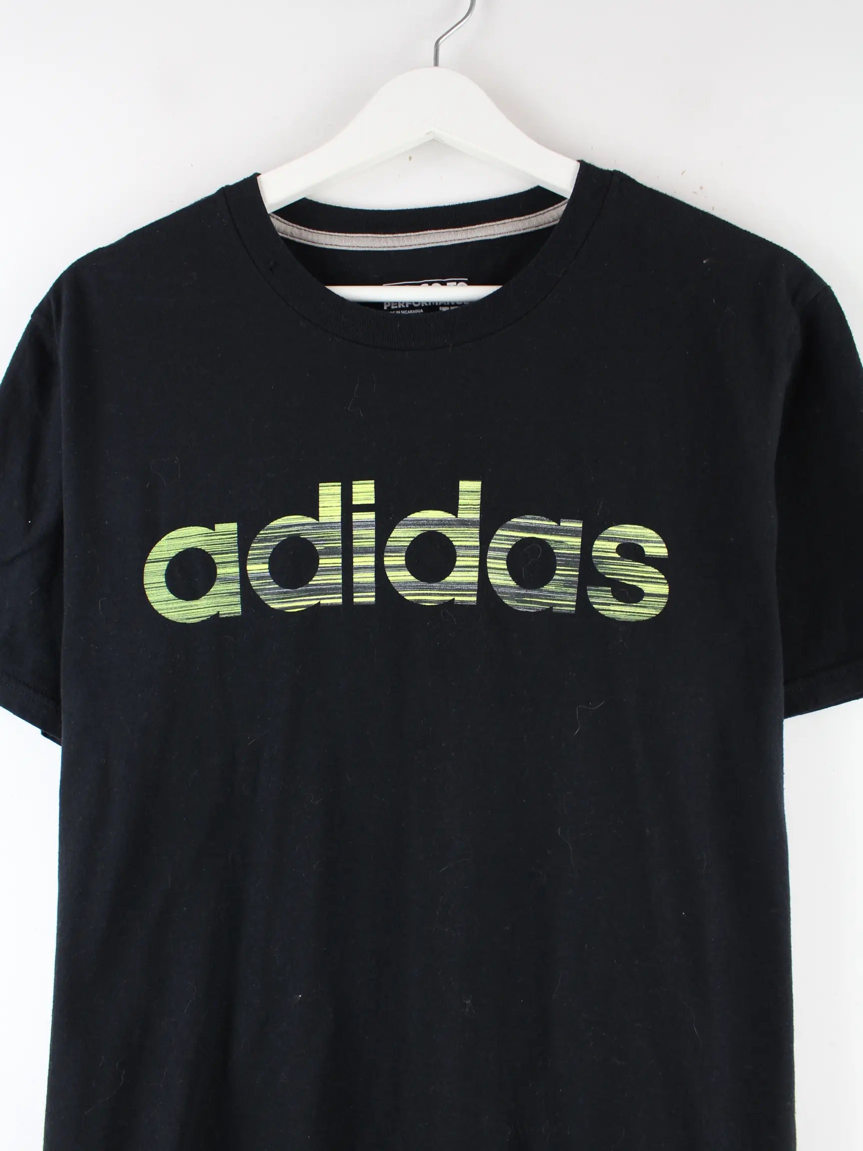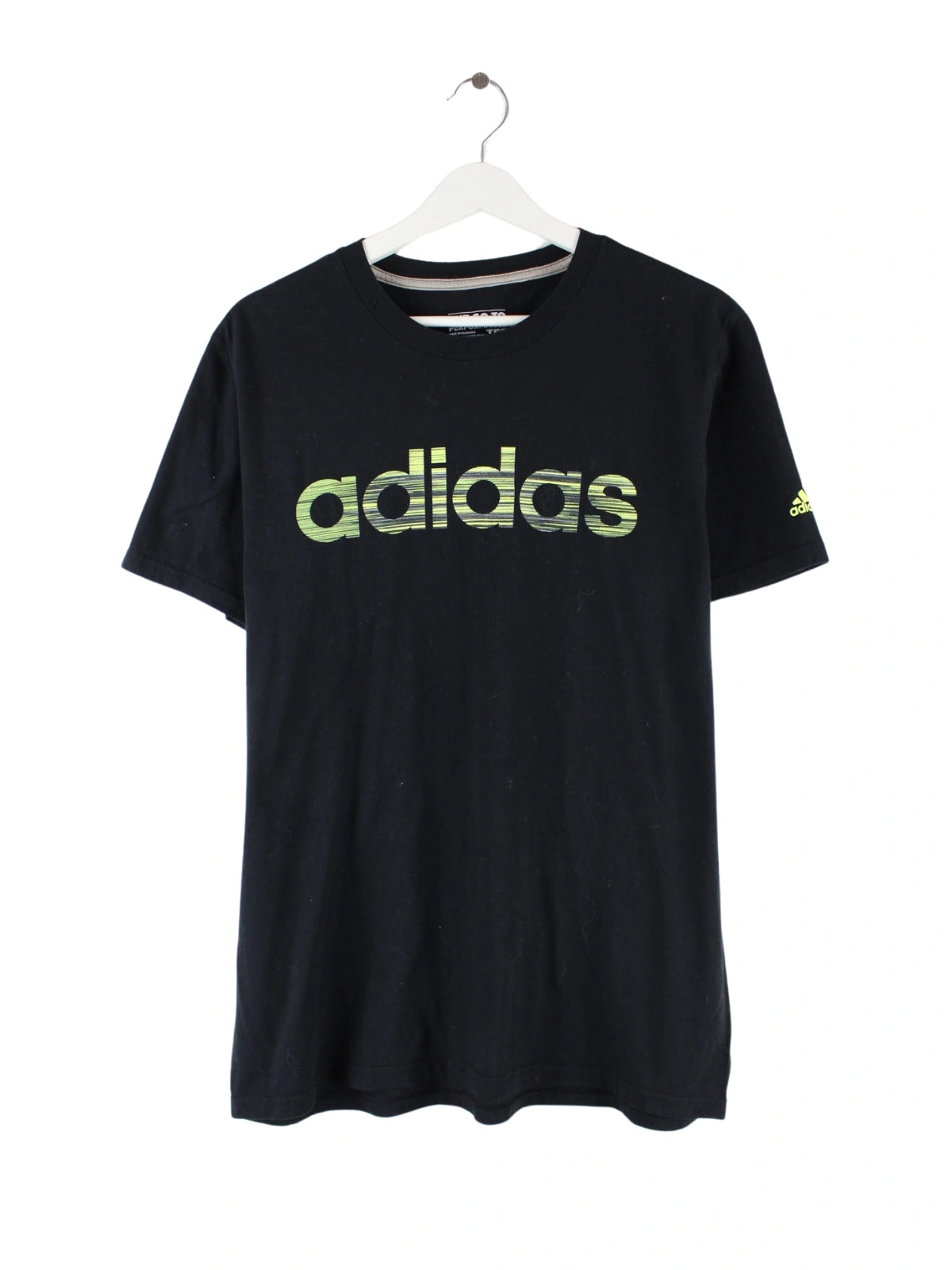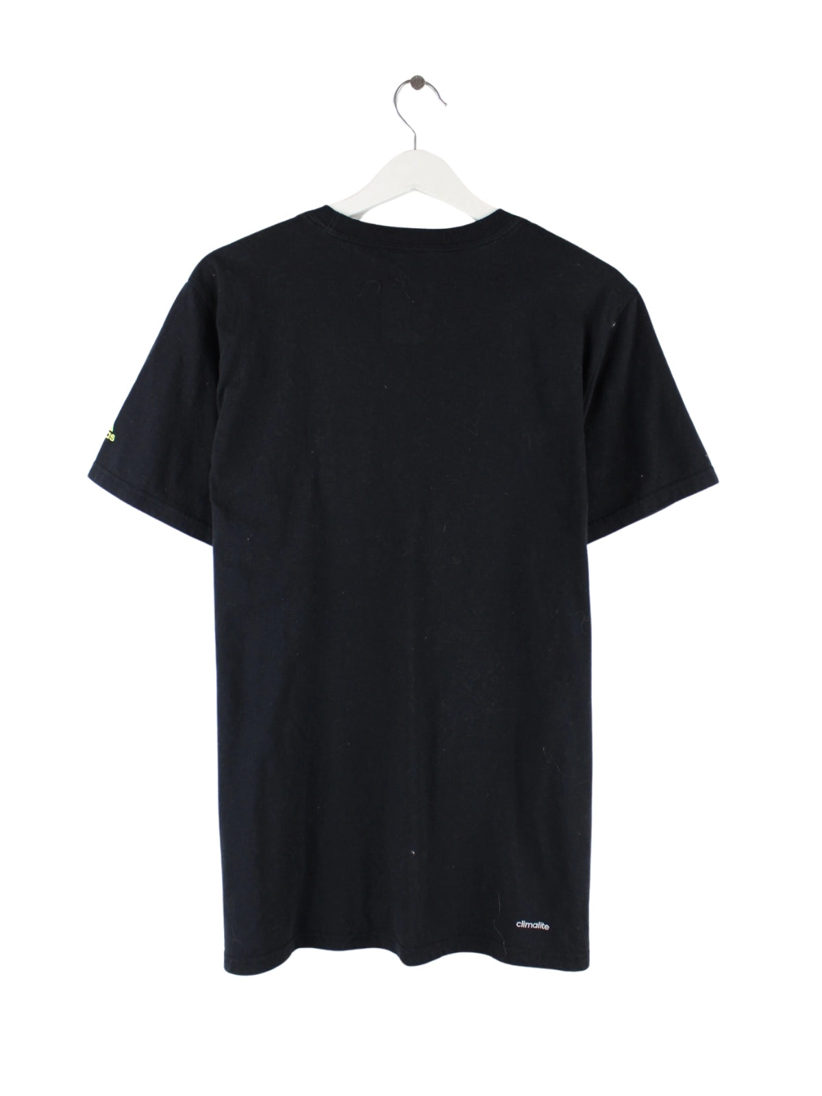 Schwarzes T-Shirt der Marke Adidas in Größe L. Es ist aus einer Baumwollmischung gemacht und in sehr gutem Zustand in Stock. Mit seltenem Print.