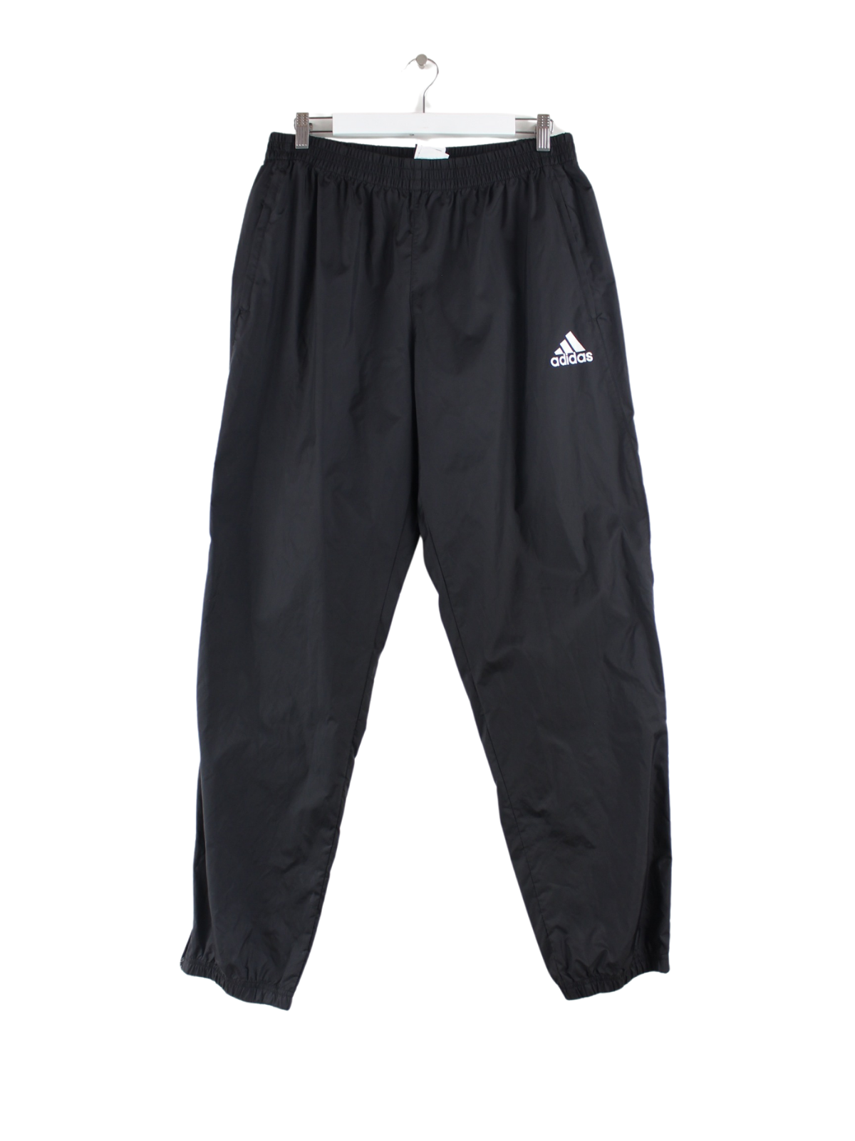 Schwarze Track Pants der Marke Adidas in Größe M. Sie sind aus Synthetik und in sehr gutem Zustand lieferbar. Mit tollem Print.