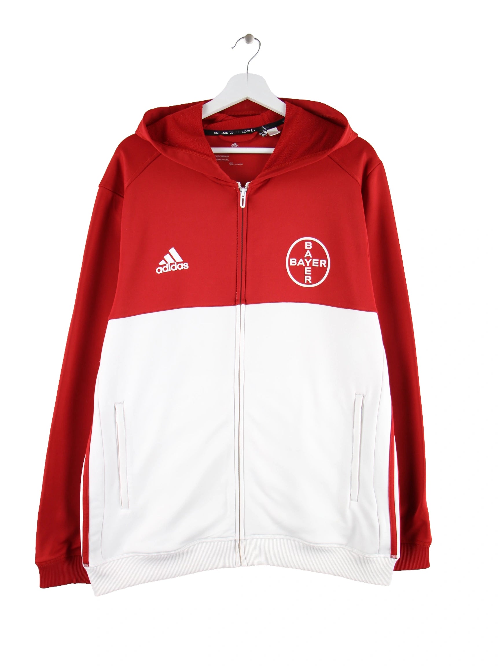 Hoodie der Brand Adidas mit langem Reißverschluß in Größe XL. Er ist aus Synthetik angefertigt und in Rot auf Lager. Mit tollem undefined Print.