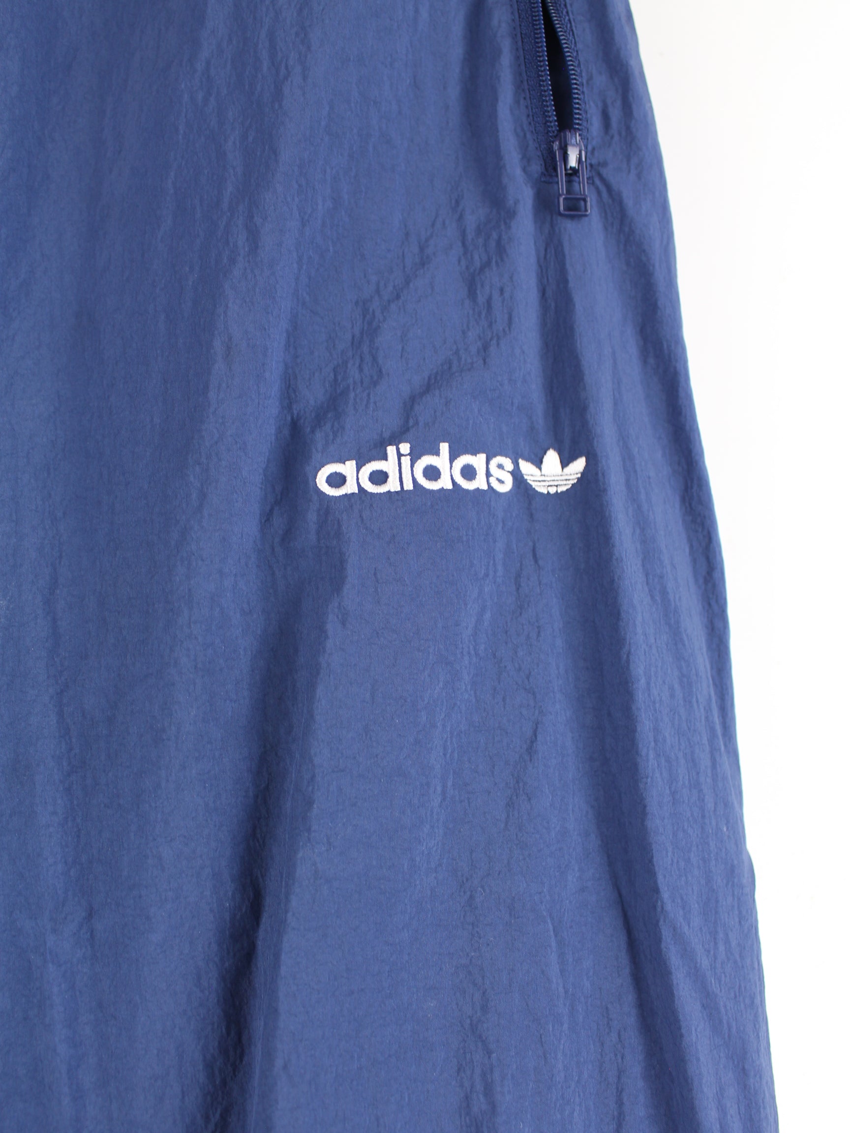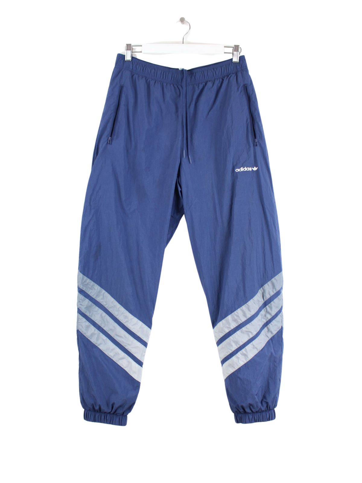 Blaue Track Pants aus dem Hause Adidas in Größe M. Sie sind aus Synthetik und in gutem Zustand lieferbar.