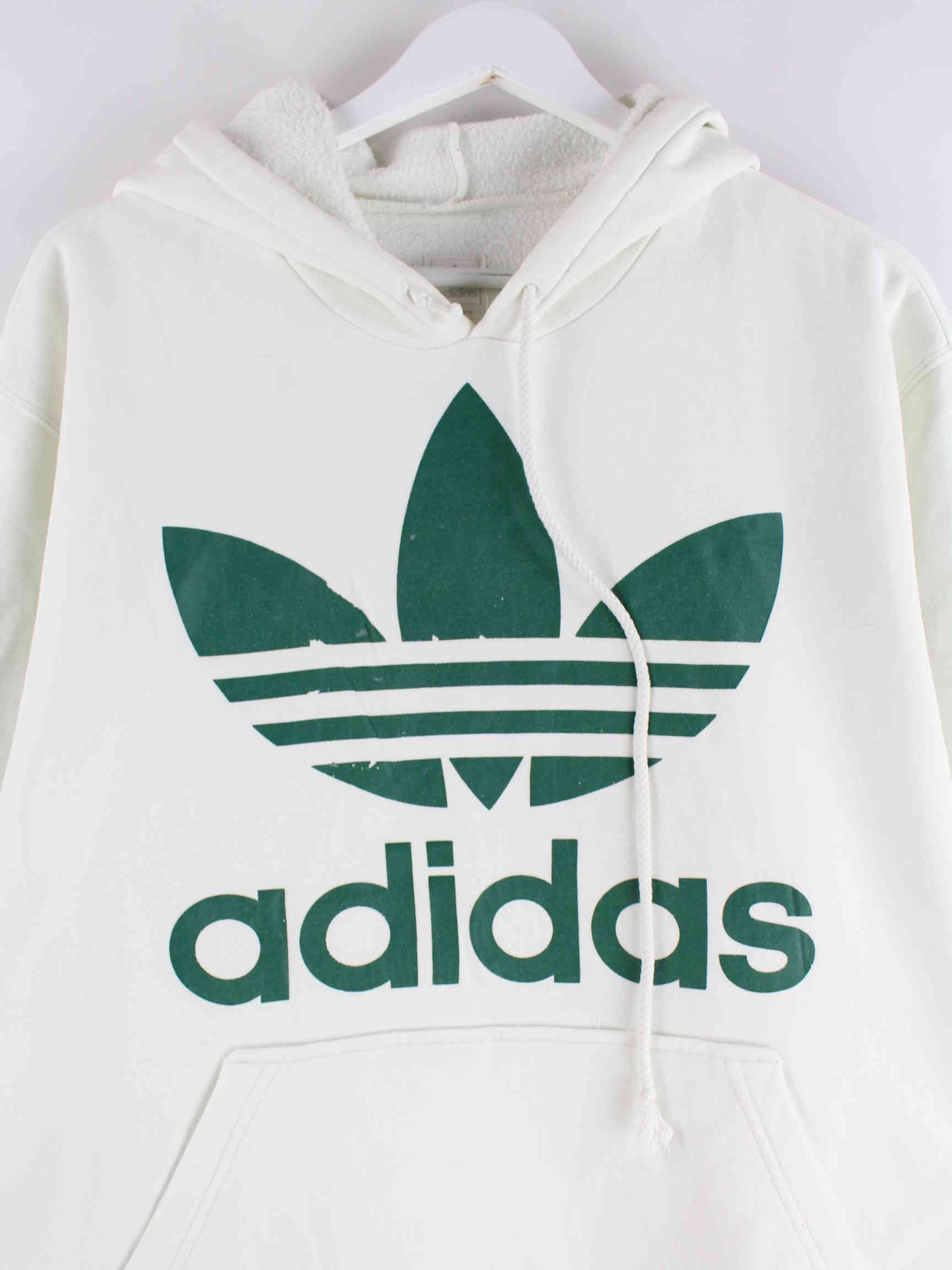 Weißer Hoodie der Brand Adidas aus Anfang der 2000'er in Größe XL. Er ist aus einer Baumwollmischung gemacht und in gutem Zustand lieferbar.