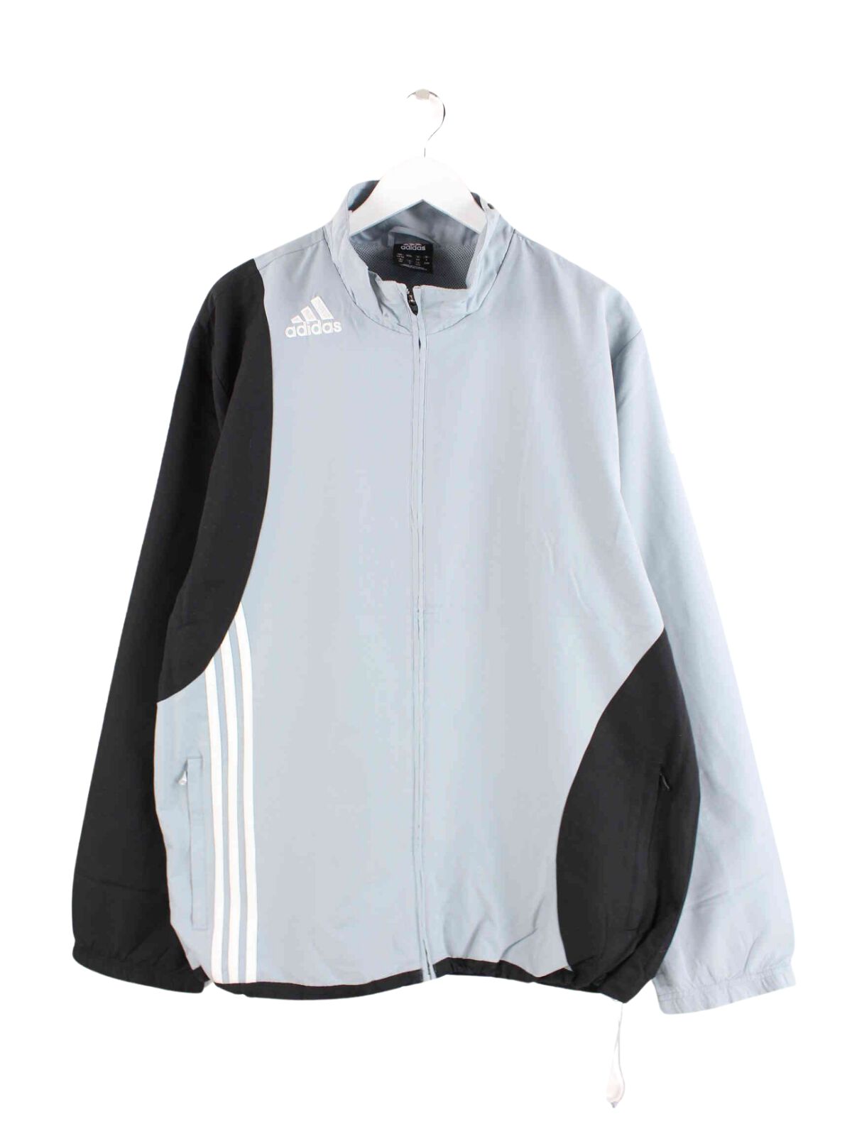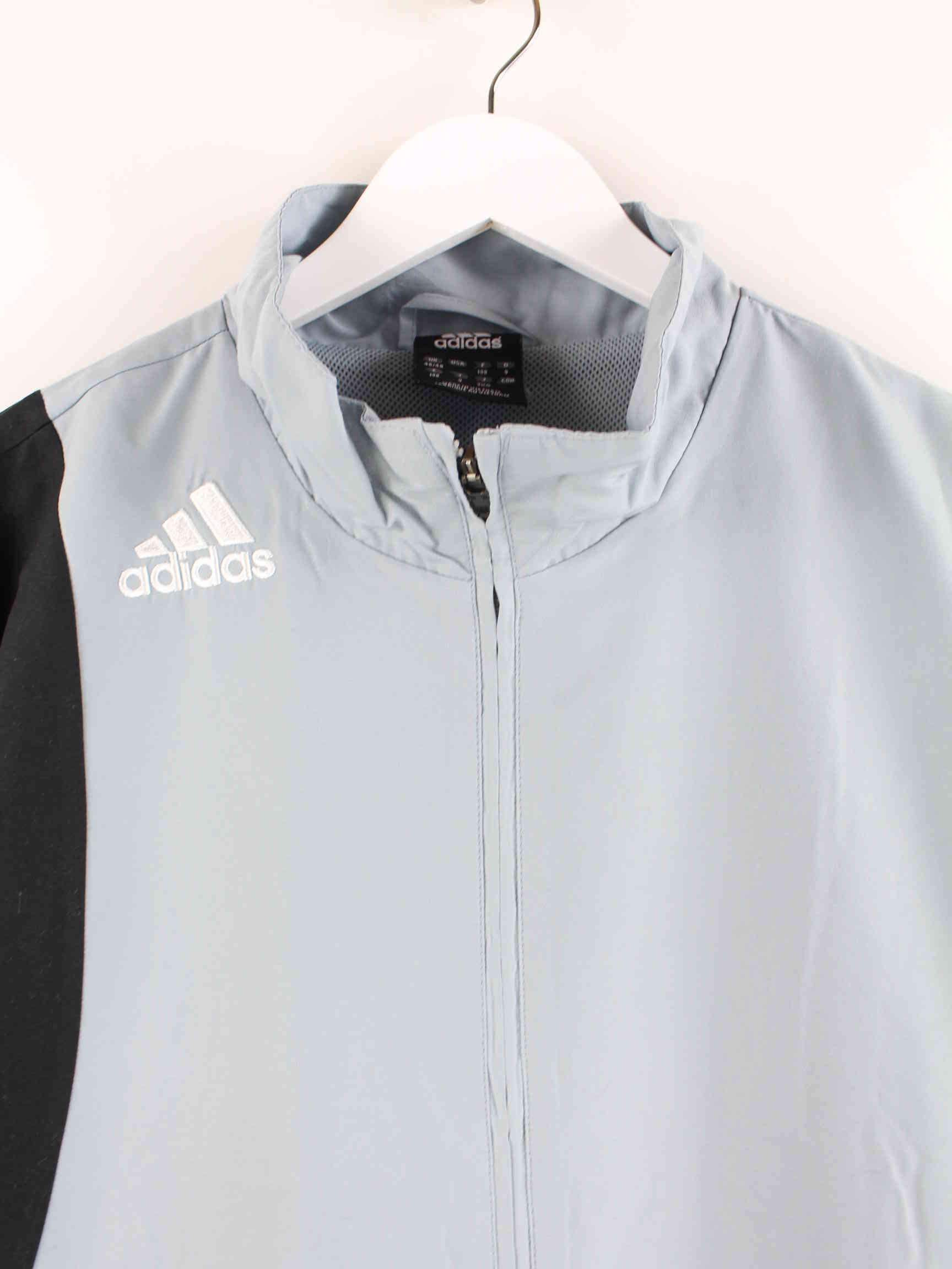Trainingsjacke des Labels Adidas in Größe 3XL aus Anfang der 2000'er. Sie ist aus Synthetik gefertigt und in Grau bei uns vorrätig.
