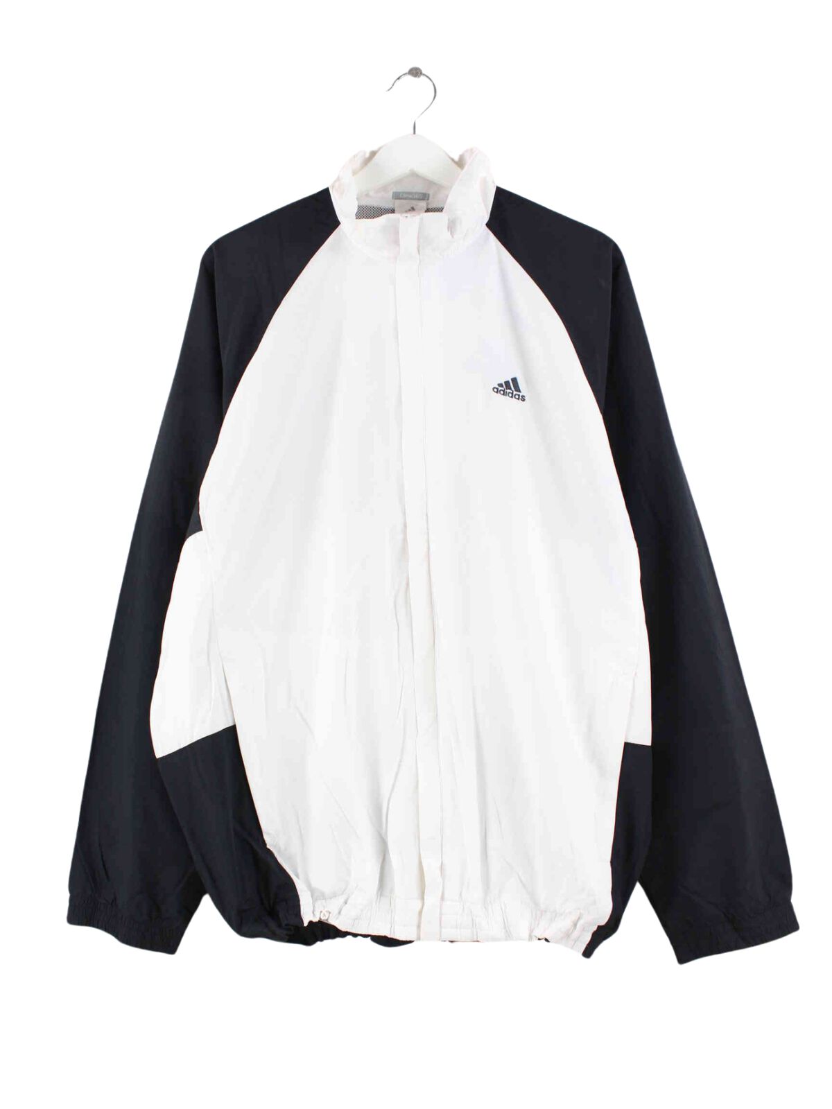 Weiße Trainingsjacke vom Label Adidas aus Anfang der 2000'er in Größe XL. Sie ist aus Synthetik und in gutem Zustand in Stock.
