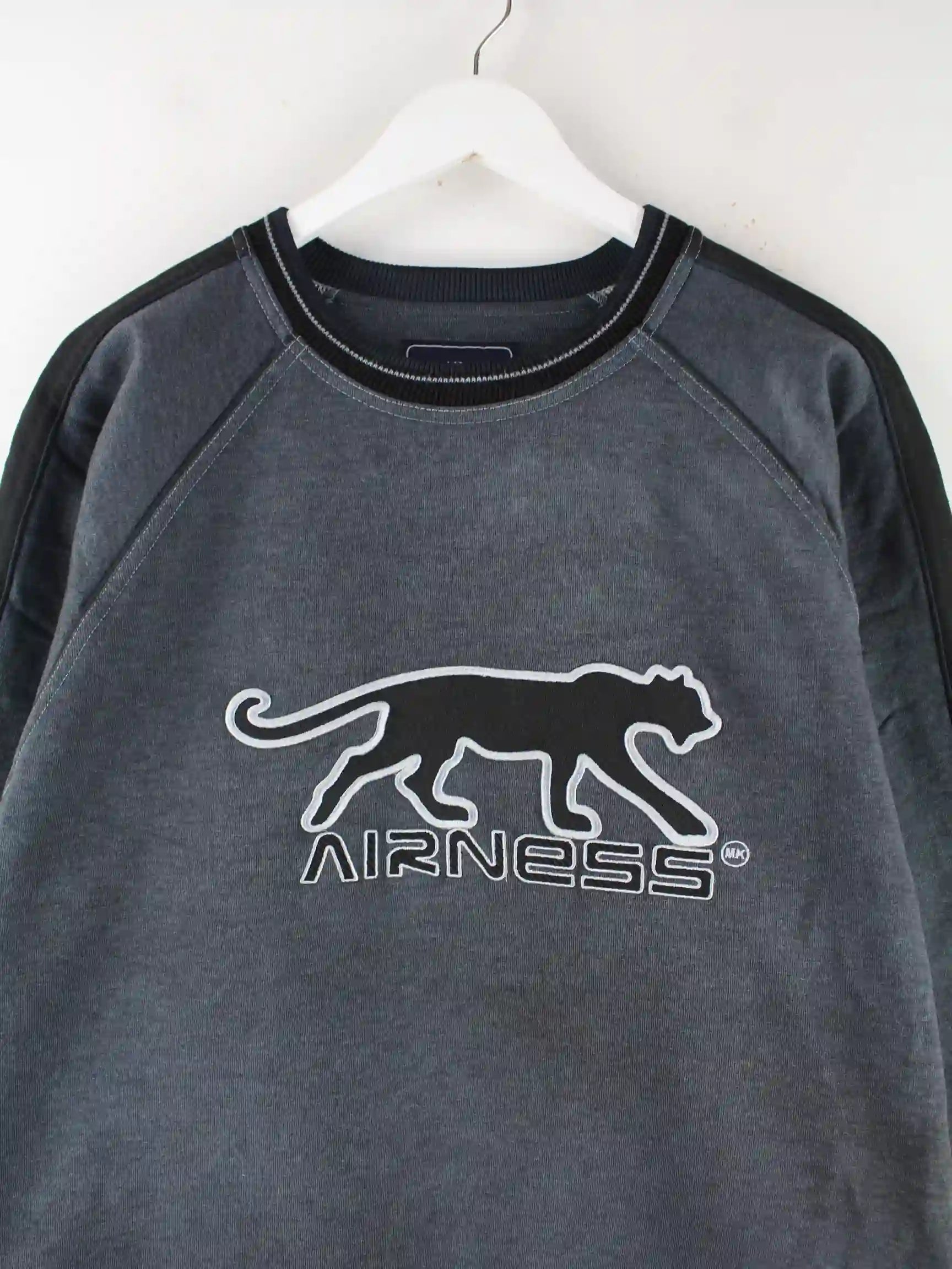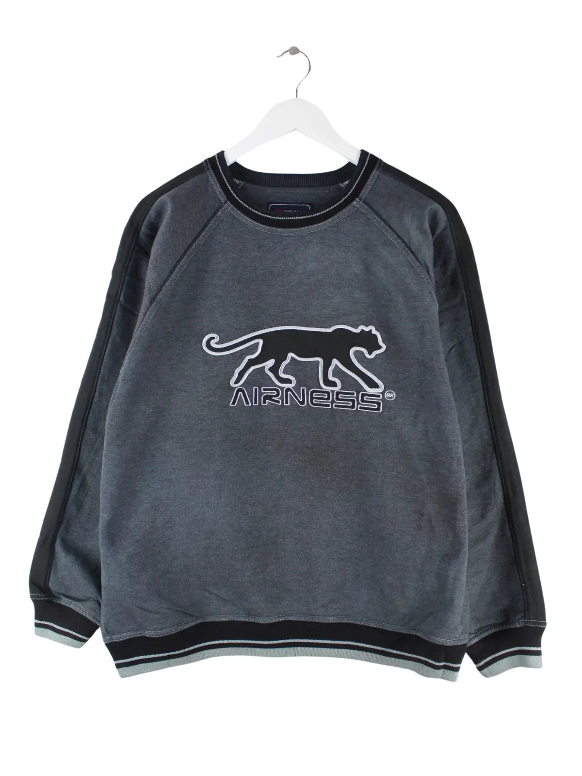 Sweater vom Brand Airness mit gesticktem Logo in Größe L aus Anfang der 2000'er. Er ist aus einer Baumwollmischung und in Grau vorrätig.