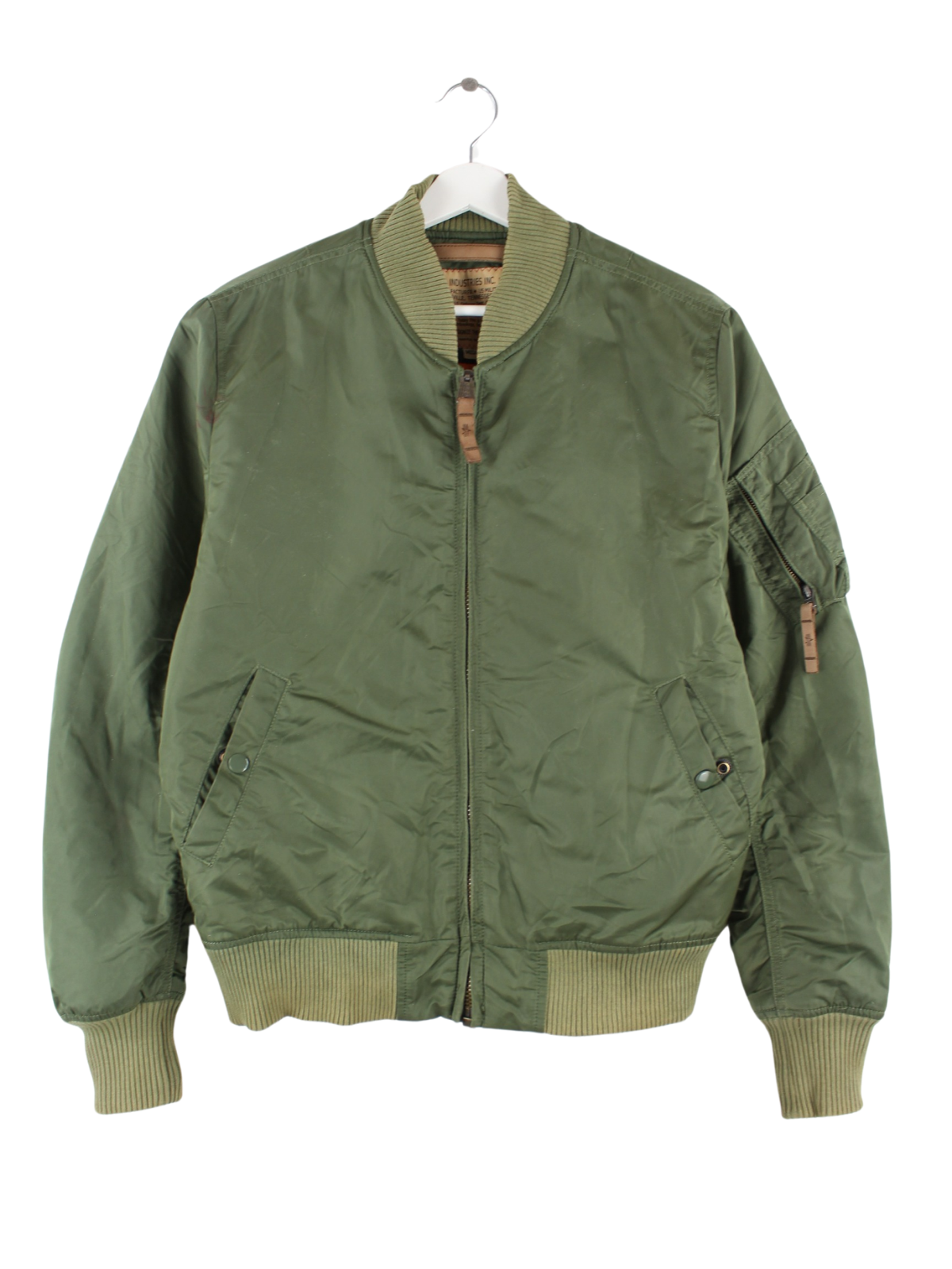 Jacke vom Label Alpha Industries in Größe M. Sie ist aus Synthetik produziert und in Grün im Bestand.