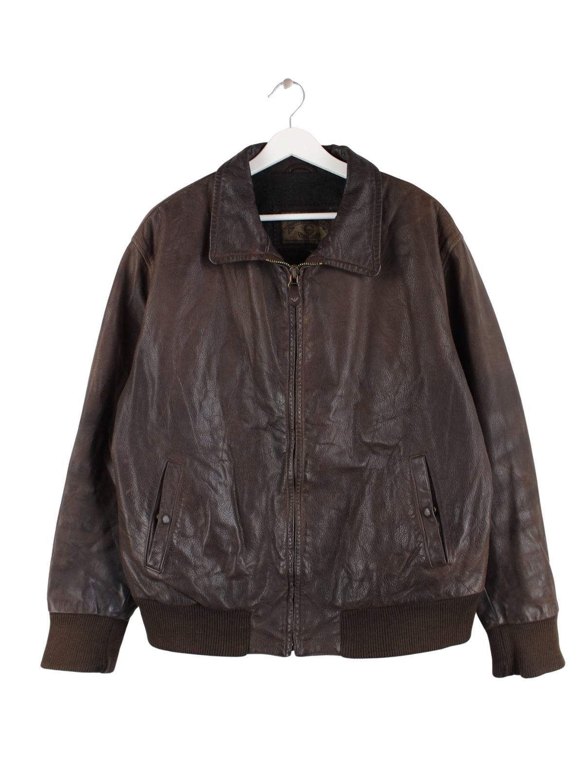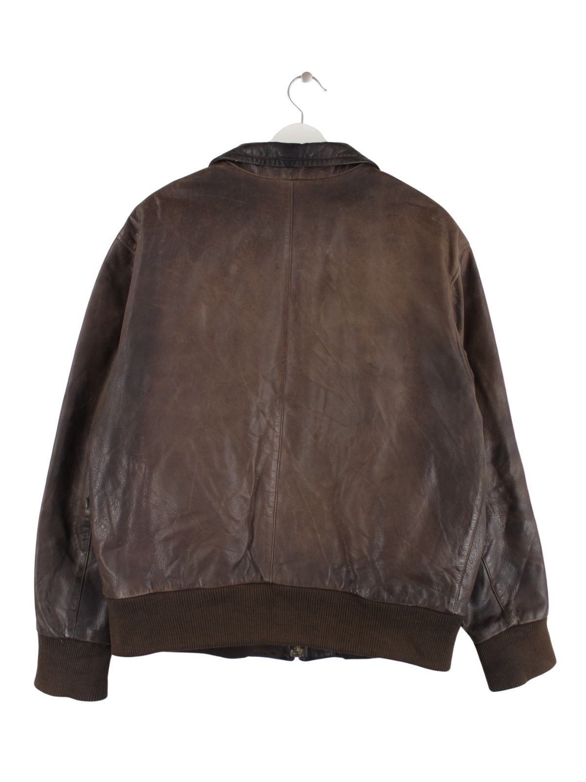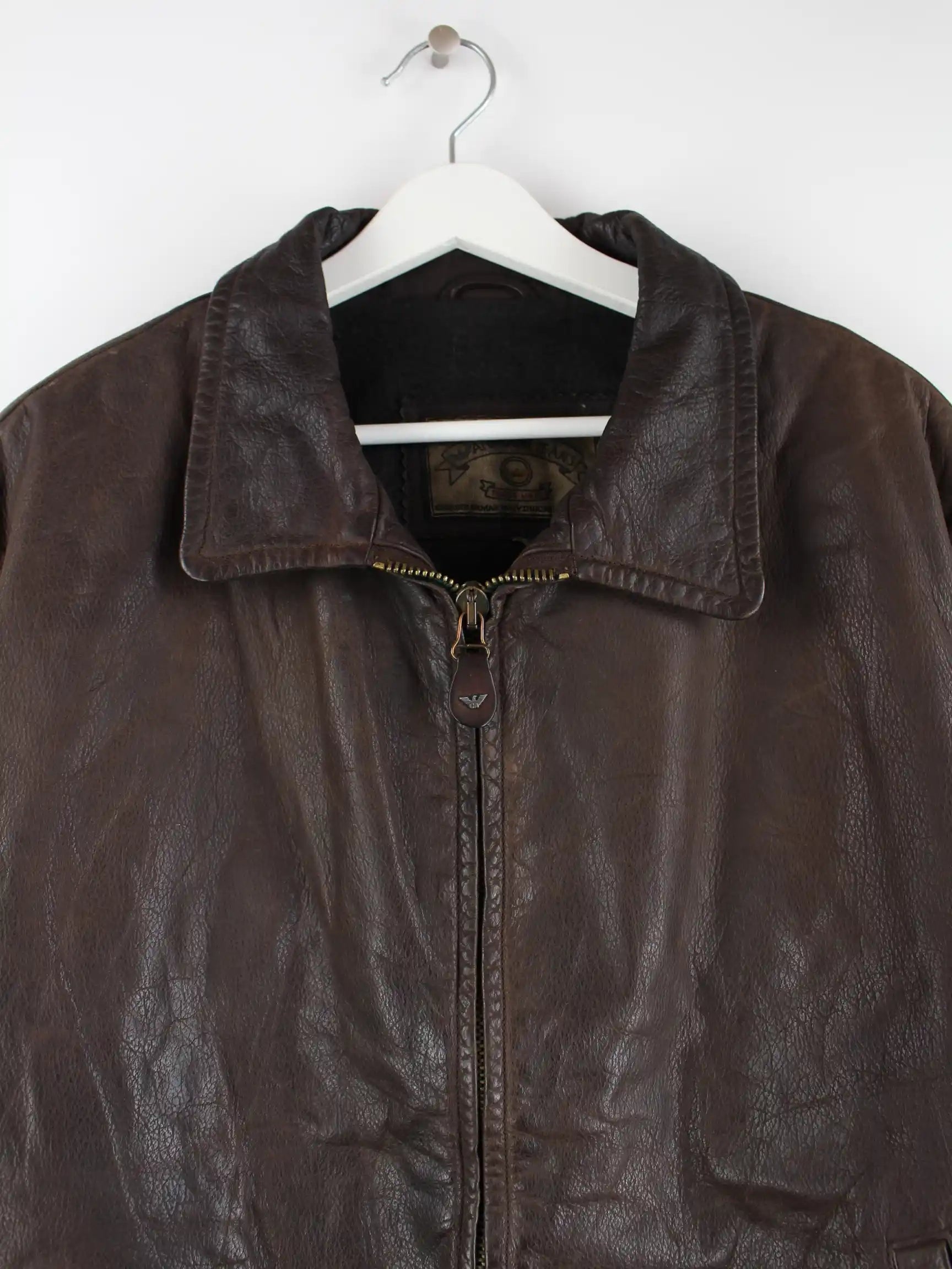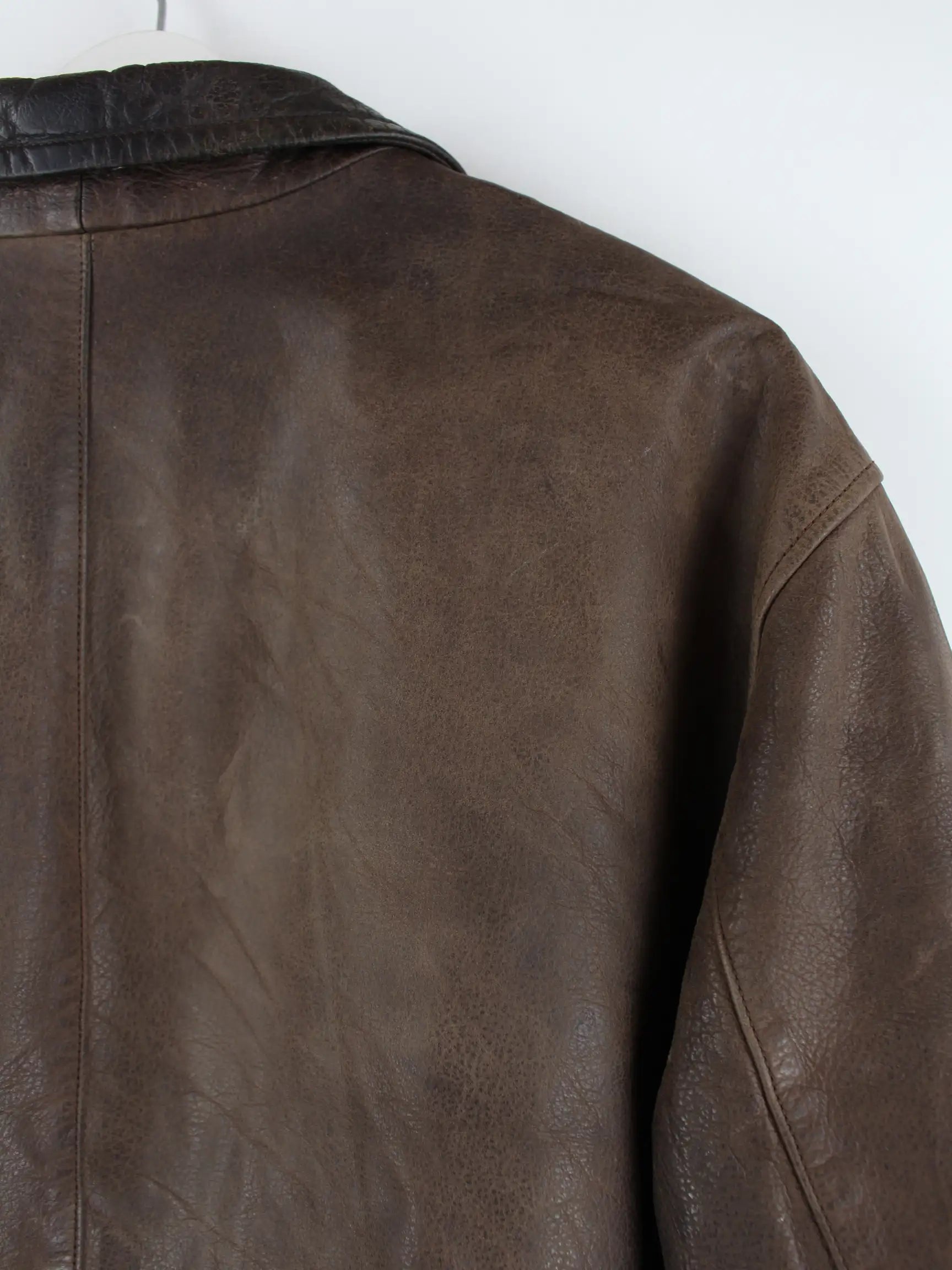 Jacke des Labels Armani in Größe L aus den 90'ern. Sie ist aus Leder angefertigt und in Braun zu bekommen.