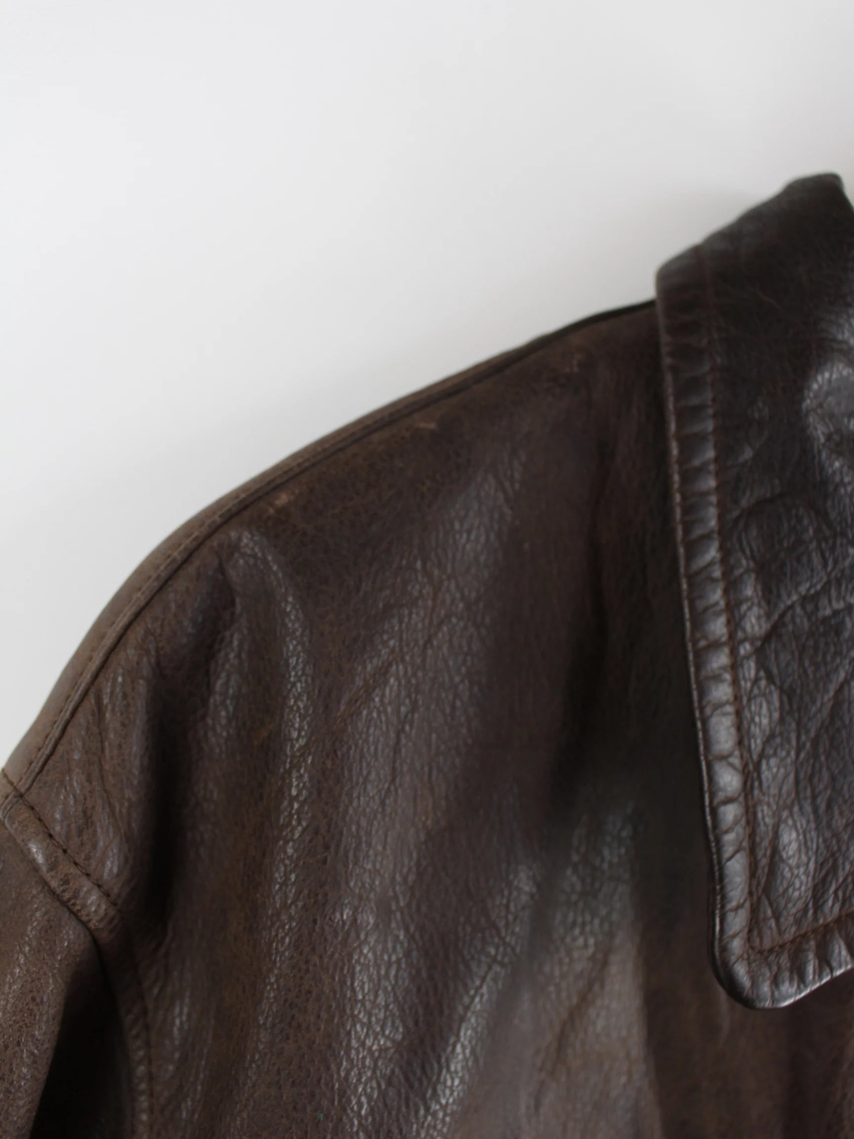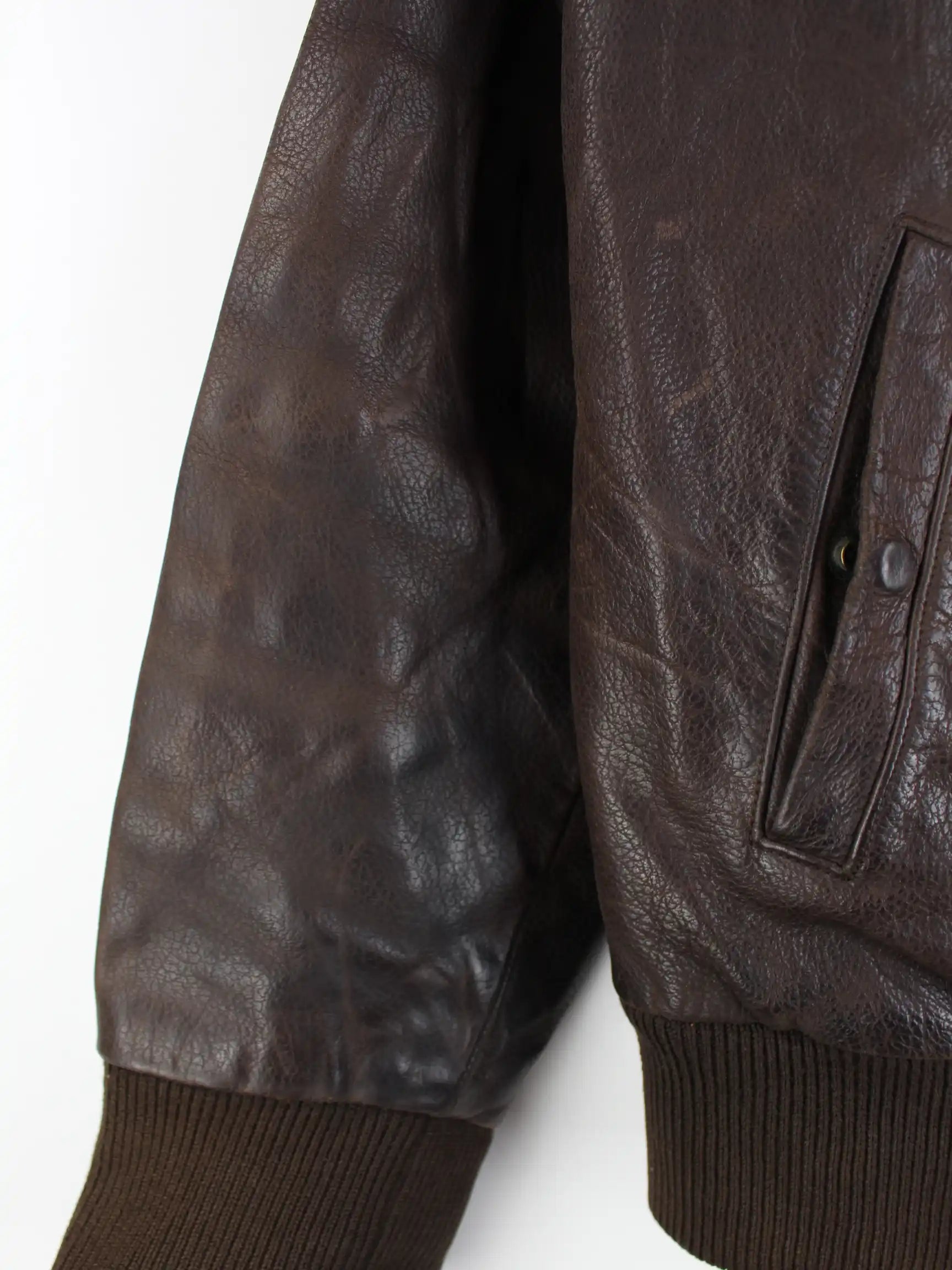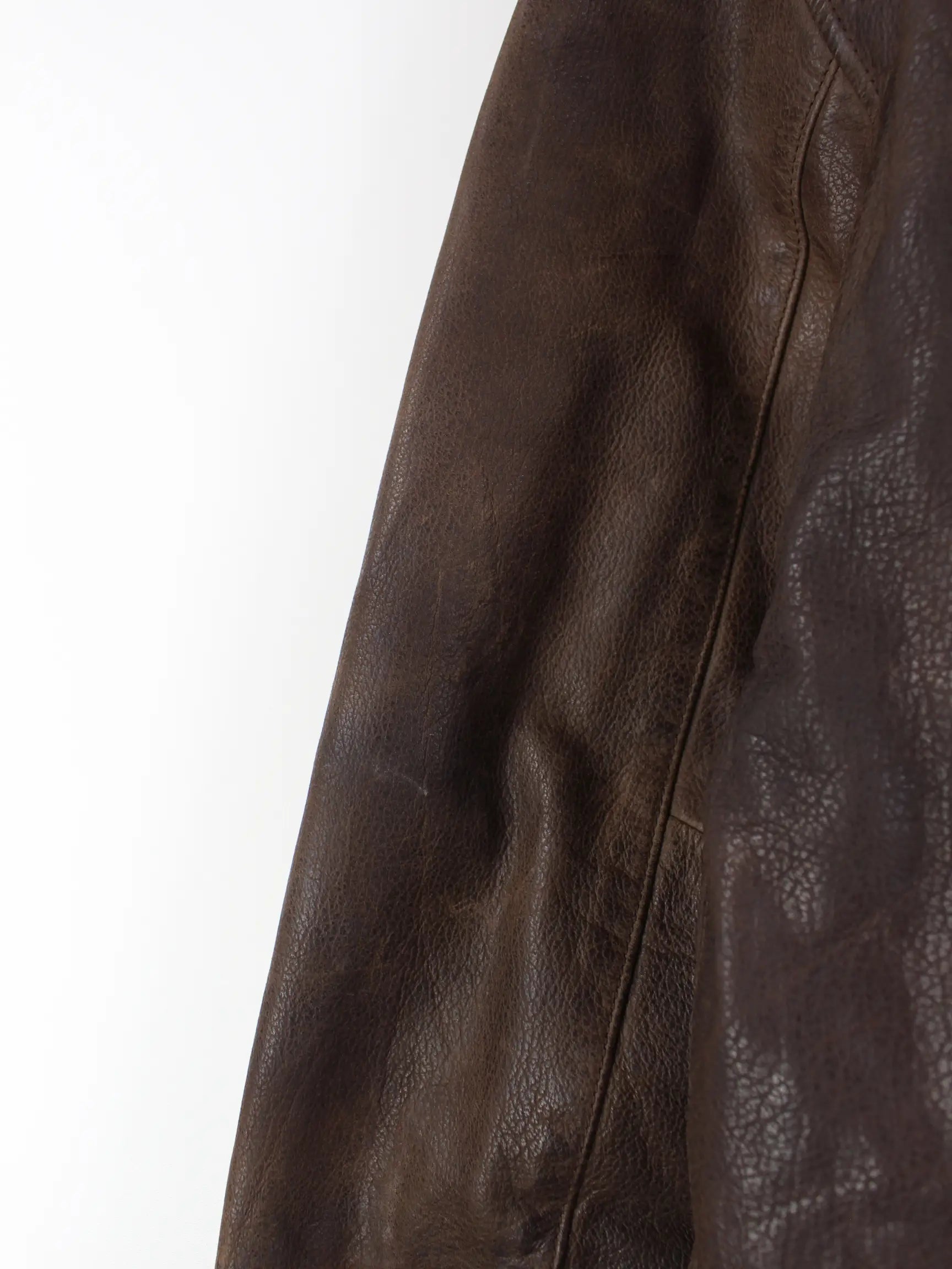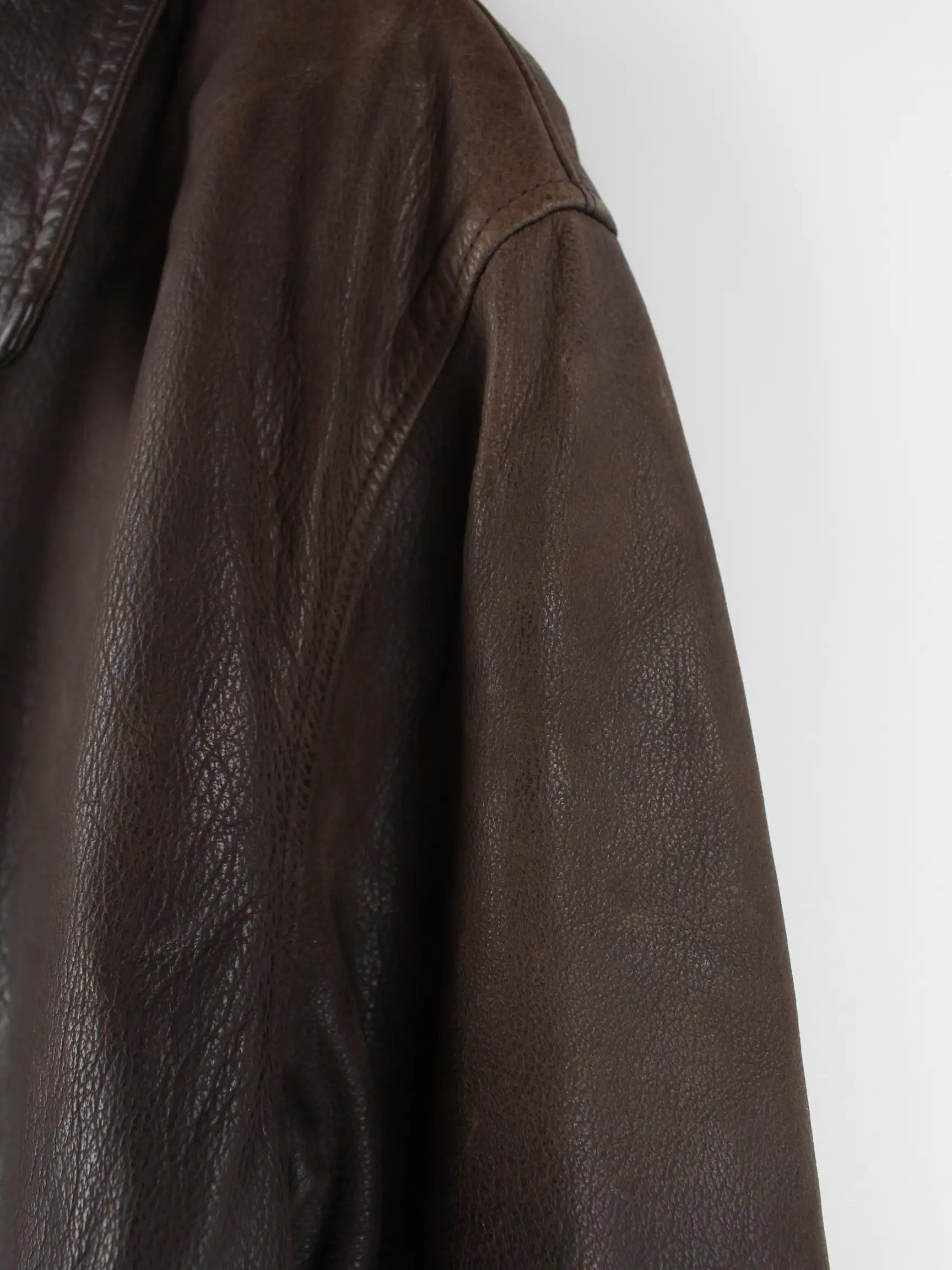 Jacke des Labels Armani in Größe L aus den 90'ern. Sie ist aus Leder angefertigt und in Braun zu bekommen.