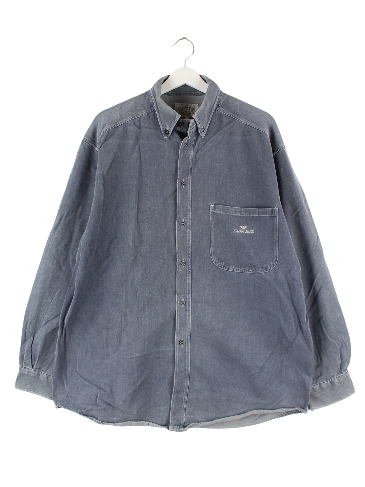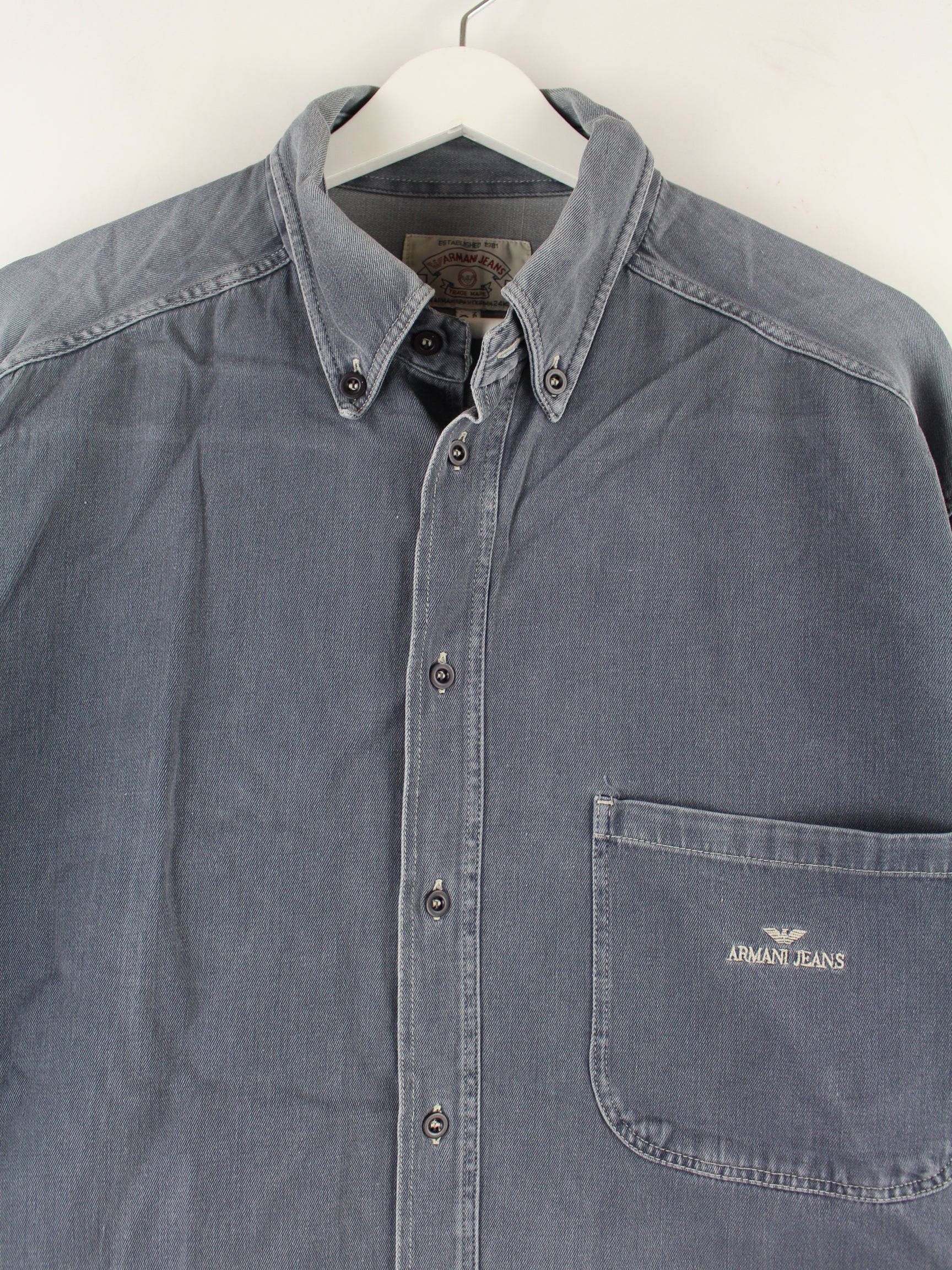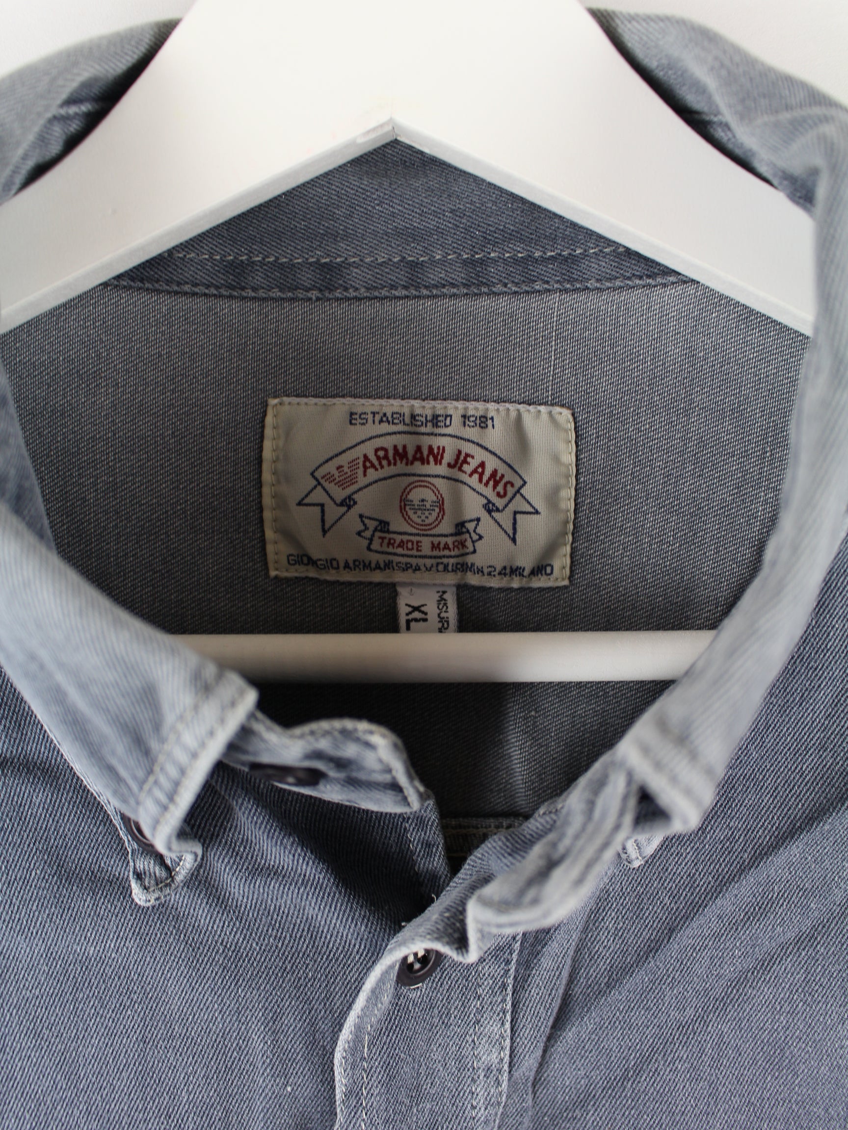 Graues Freizeit Hemd der Brand Armani aus den 90'ern in Größe XL. Es ist aus Baumwolle gefertigt und in gutem Zustand im Angebot.