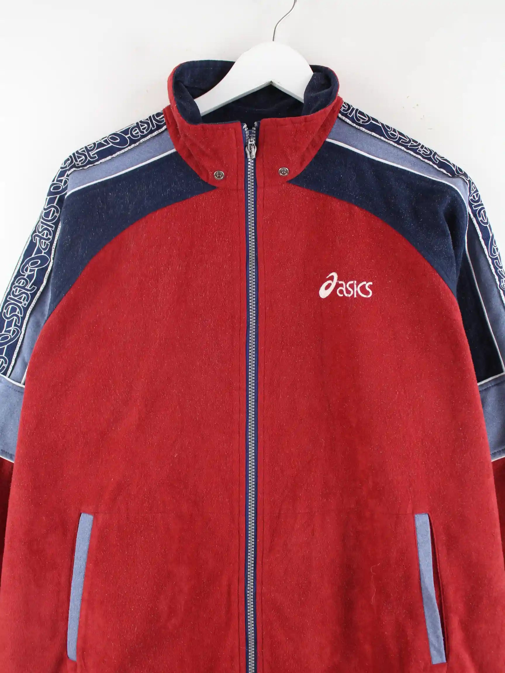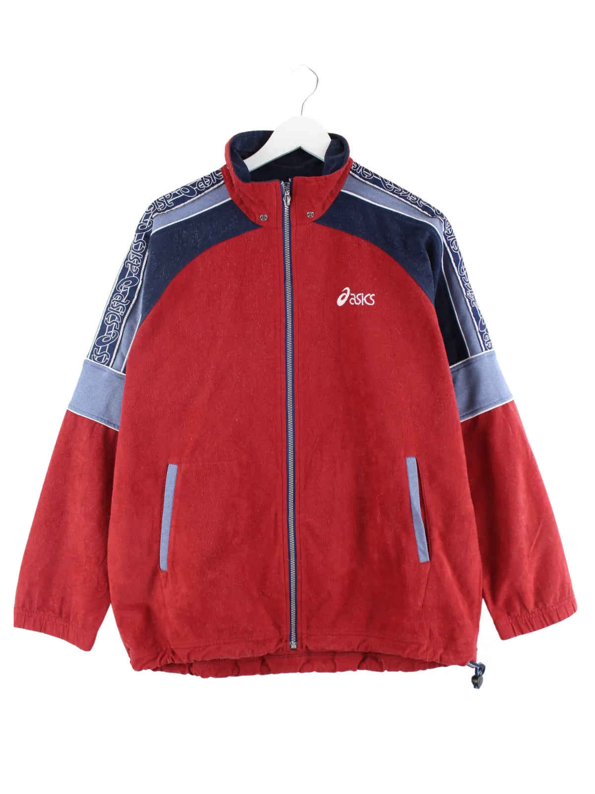 Rote Trainingsjacke des Labels Asics aus den 90'ern in Größe M. Sie ist aus Synthetik angefertigt. Den Zustand würden wir als 'In Ordnung' bezeichnen (vergl. Bilder).