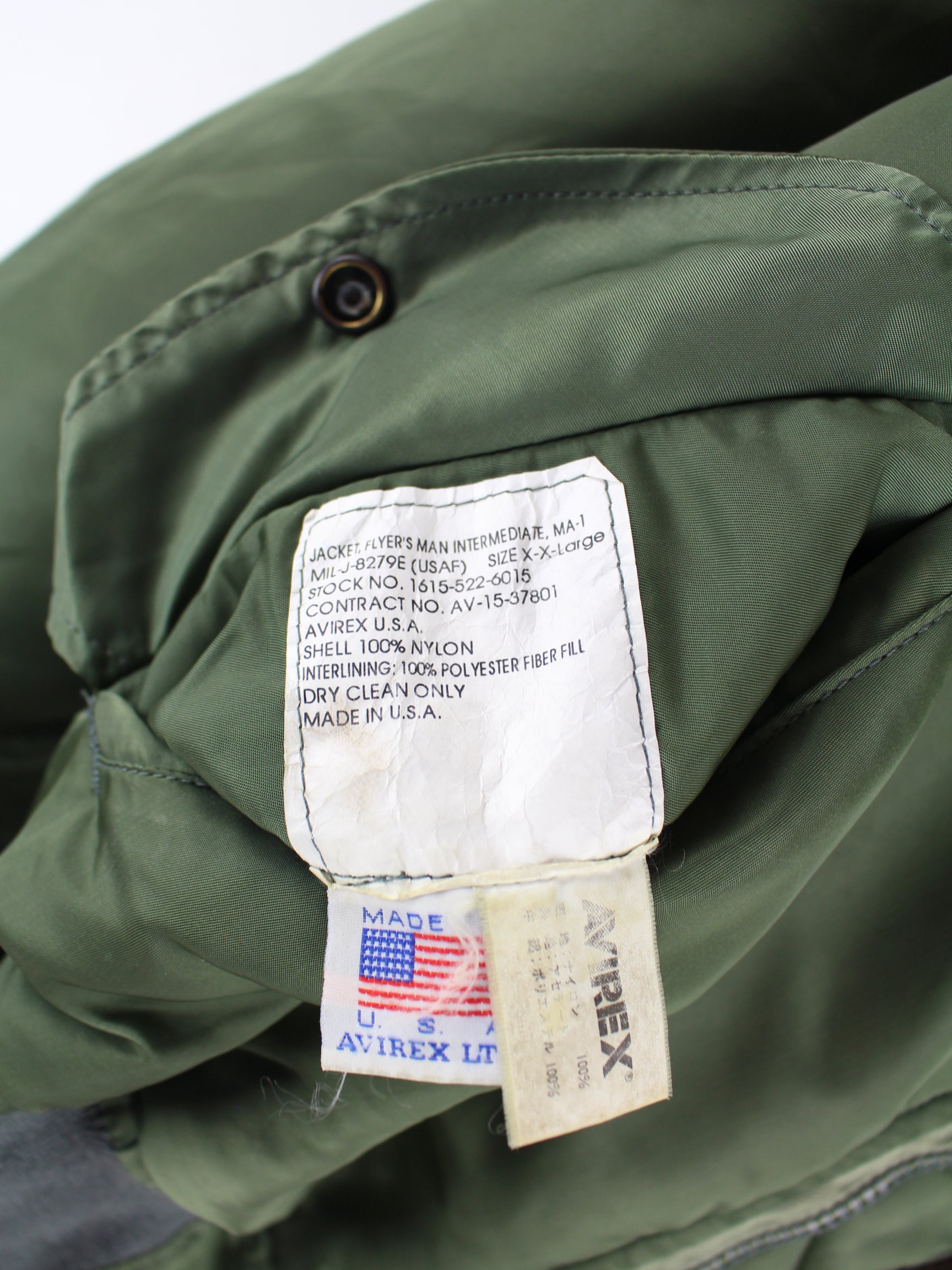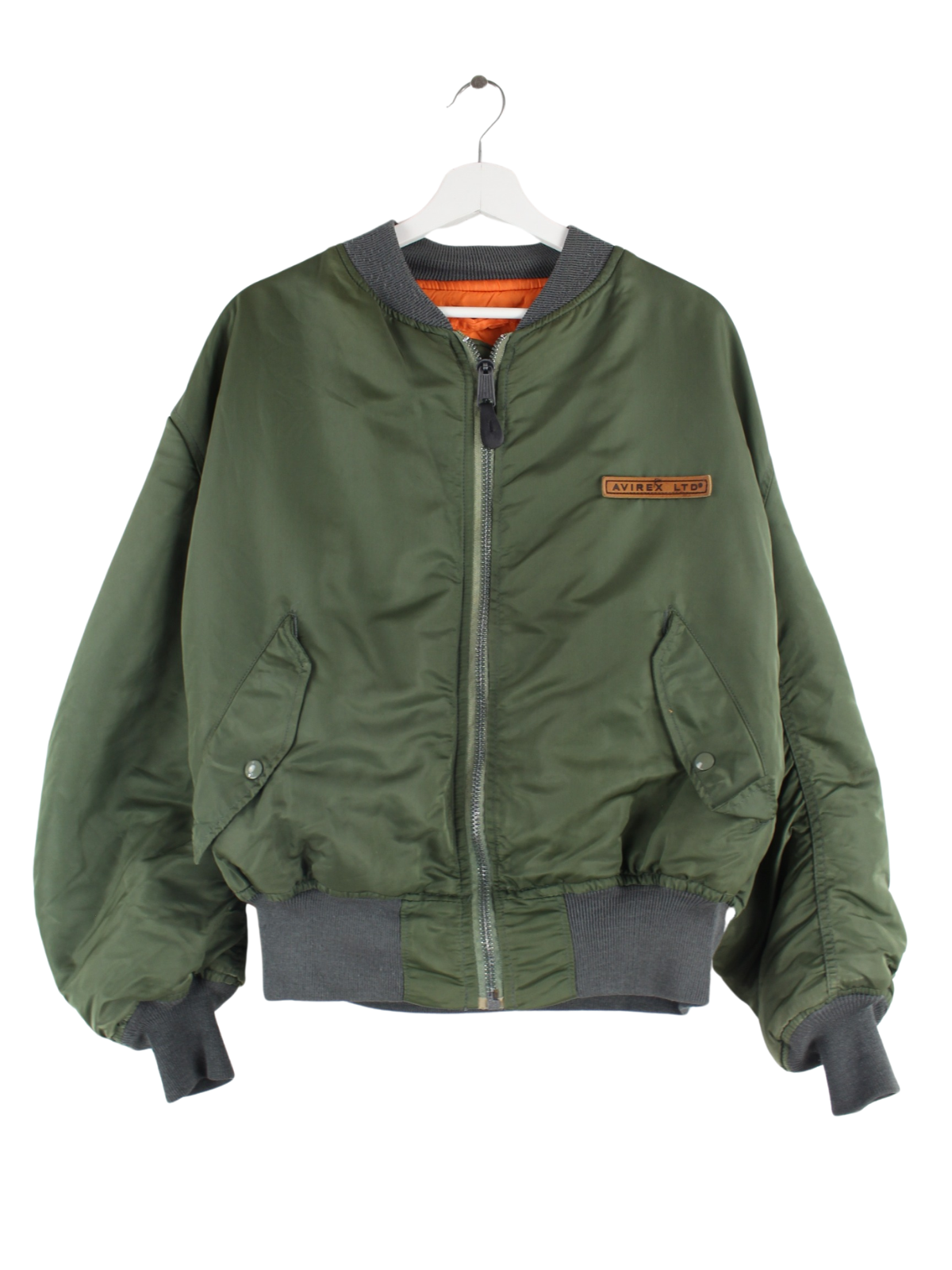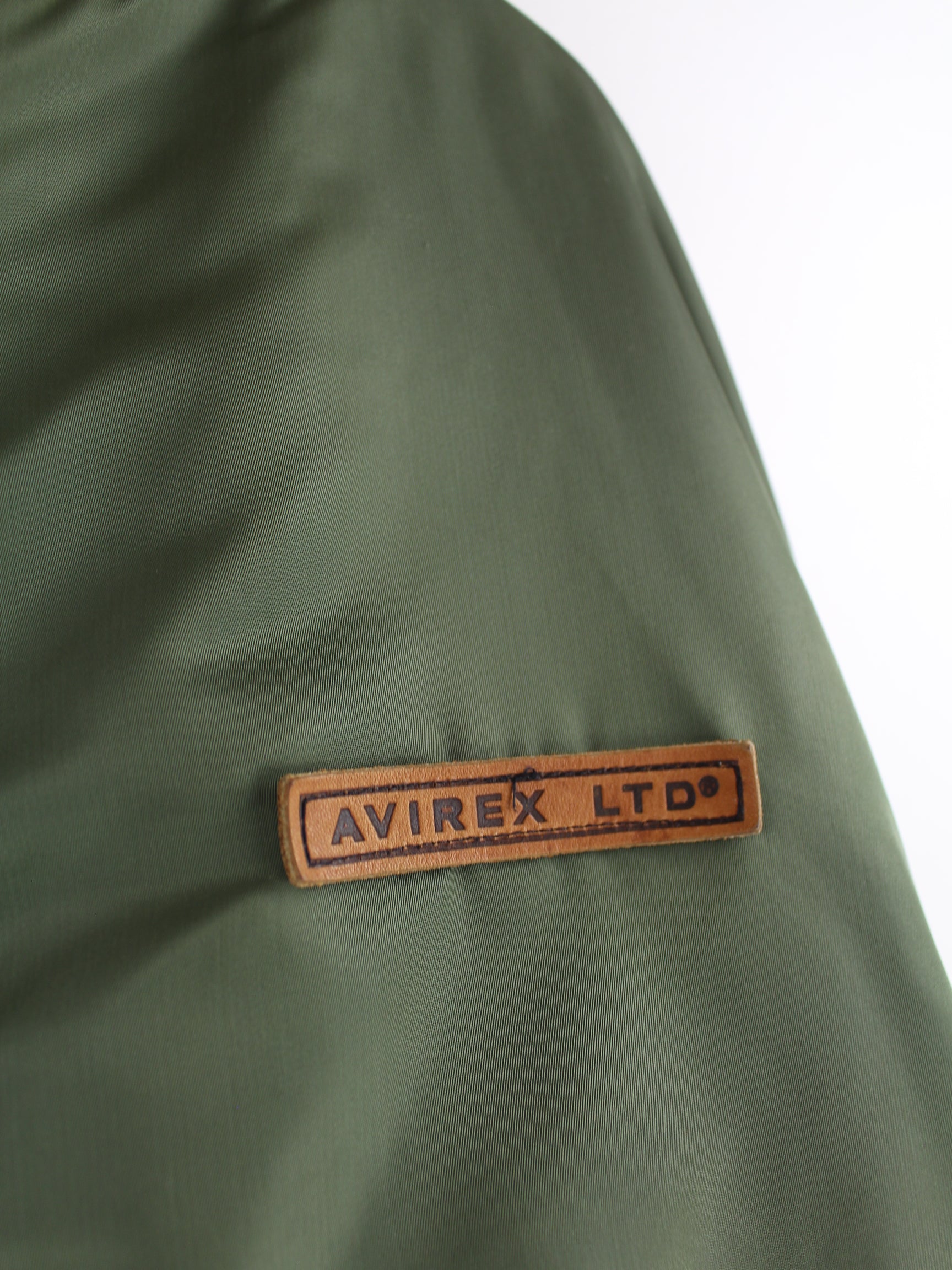 Jacke von Avirex mit gesticktem Logo in Größe L aus den 90'ern. Sie ist aus Synthetik angefertigt und in Grün auf Lager.