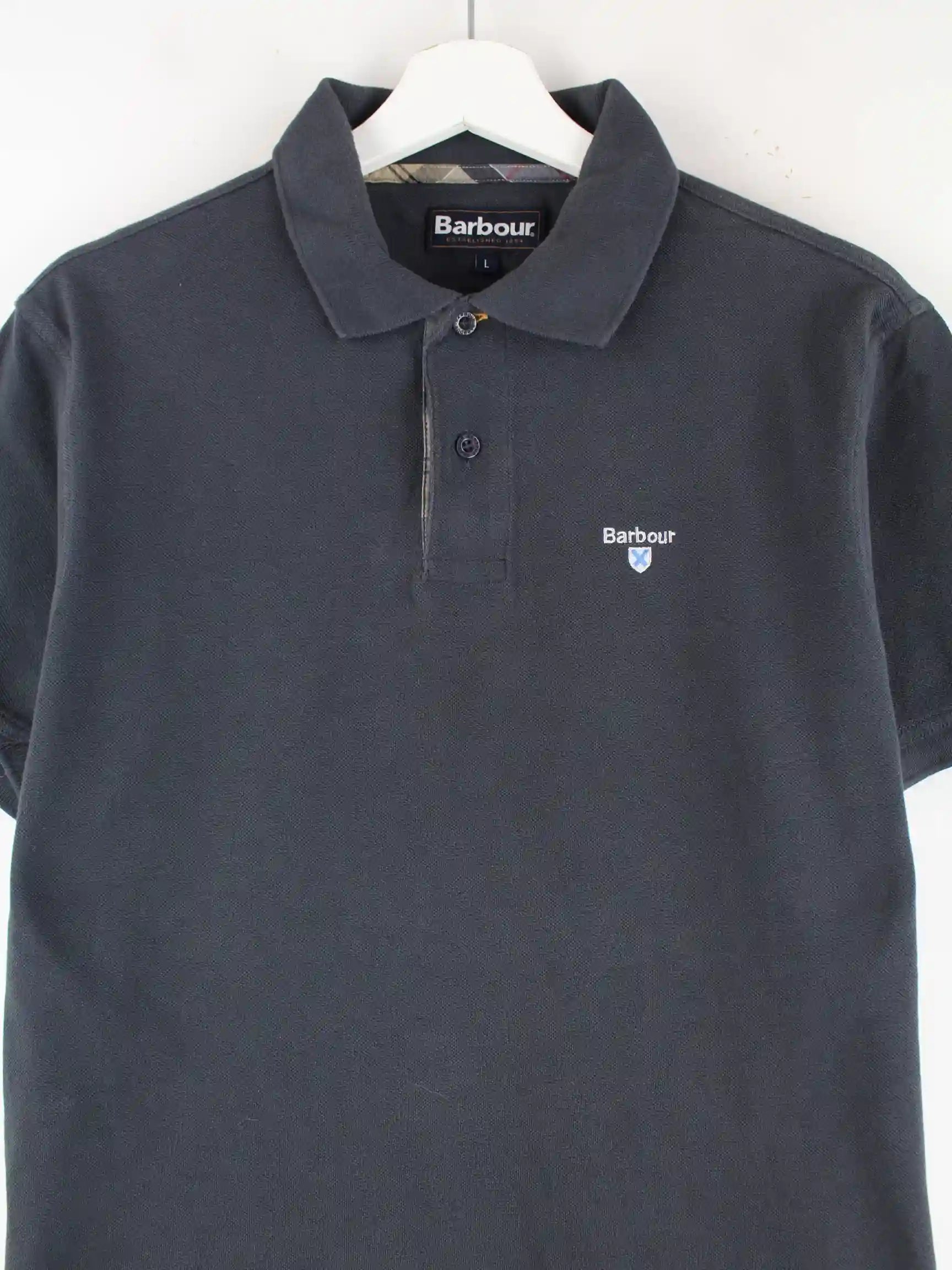 Poloshirt der Brand Barbour in Größe L. Es ist aus Baumwolle gemacht und in Grau auf Lager.