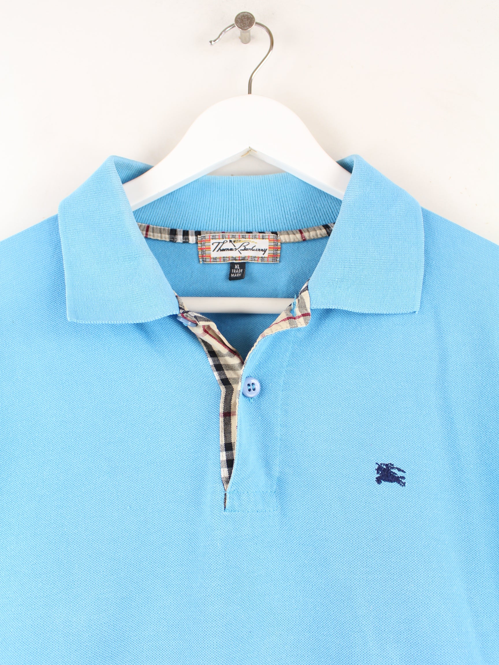 Blaues Poloshirt der Brand Burberry in Größe XL. Es ist aus Baumwolle angefertigt. Den Zustand würden wir als 'In Ordnung' bezeichnen (vergl. Bilder).
