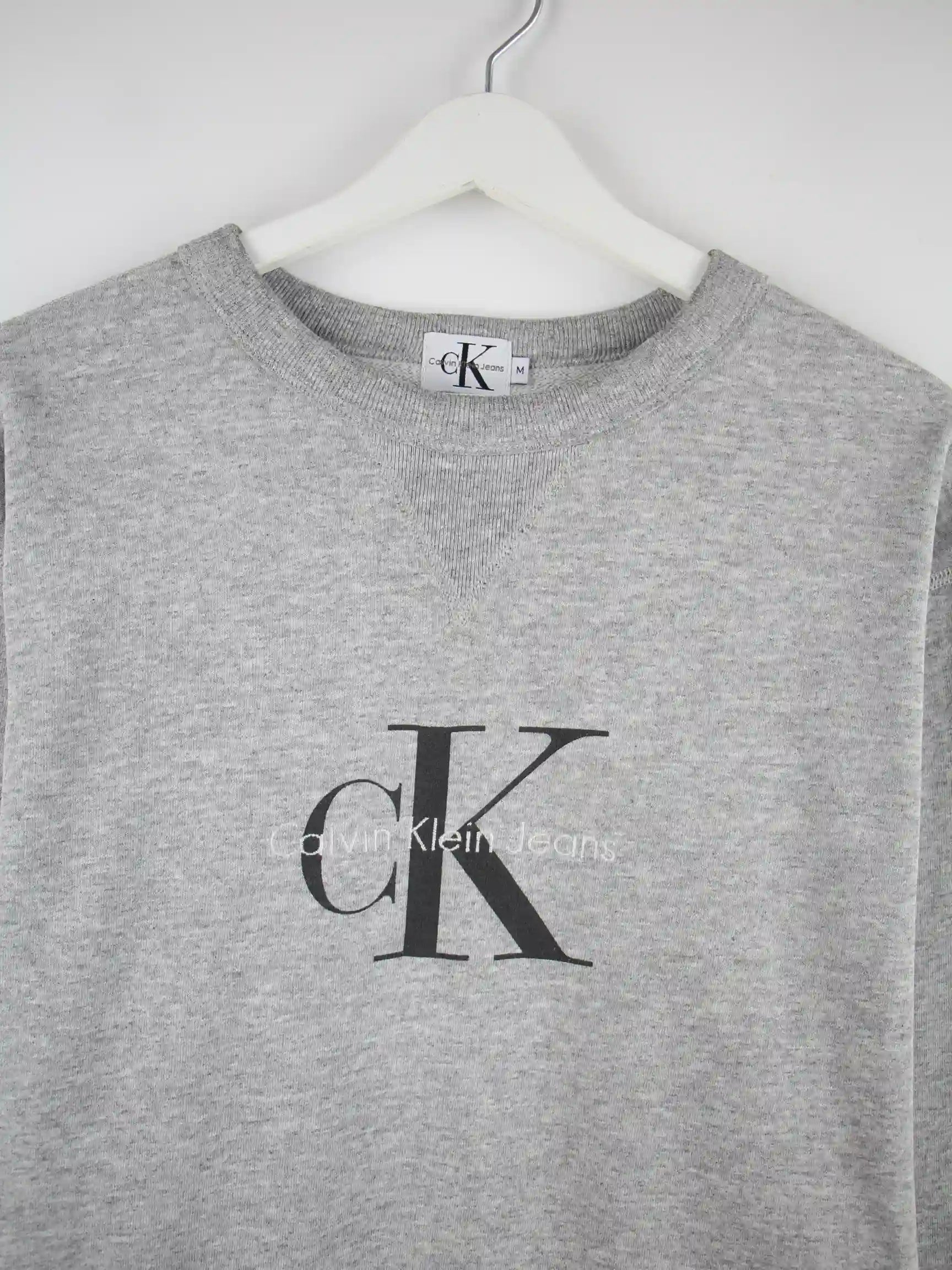 Calvin Klein 00s Big Logo Print Sweater Grau M