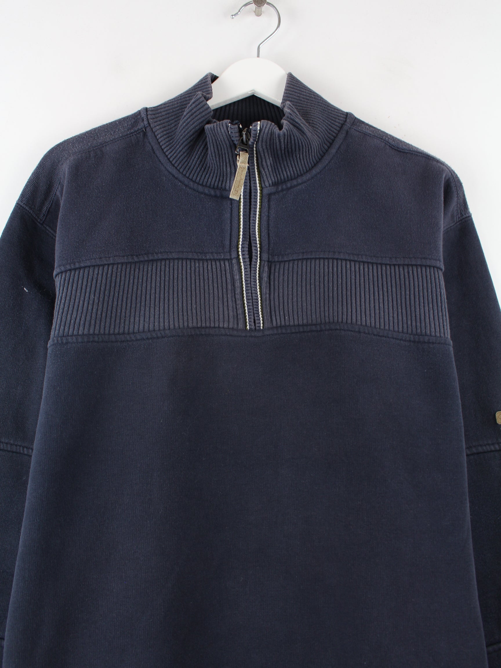 Sweater der Brand Champion mit halbem Reißverschluß in Größe XXL. Er ist aus einer Baumwollmischung gemacht und in Blau lieferbar.