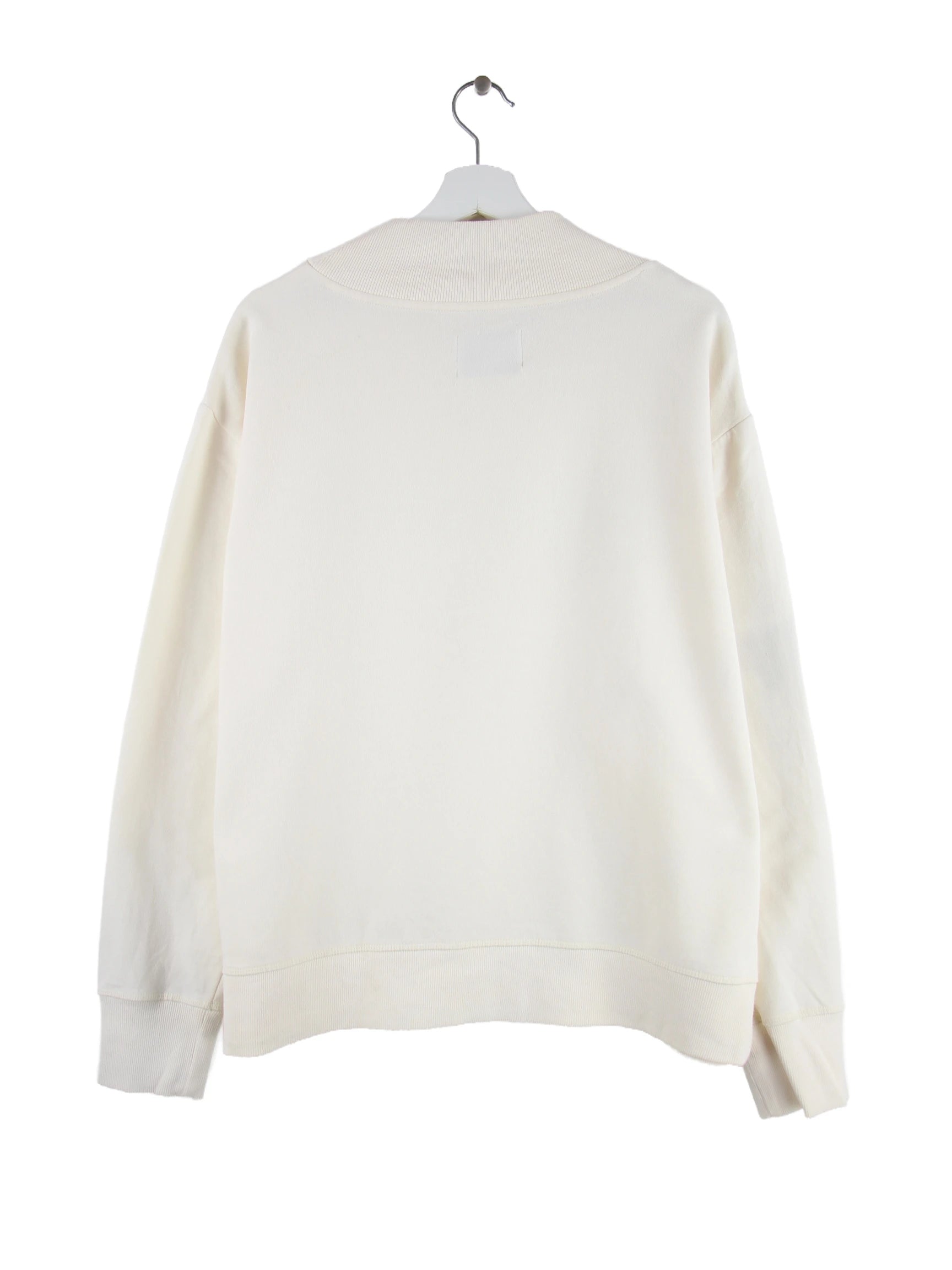 Weißer Sweater aus dem Hause Champion in Größe M. Er ist aus einer Baumwollmischung gefertigt. Den Zustand würden wir als 'In Ordnung' bezeichnen (vergl. Bilder).Mit schickem Logo Print.