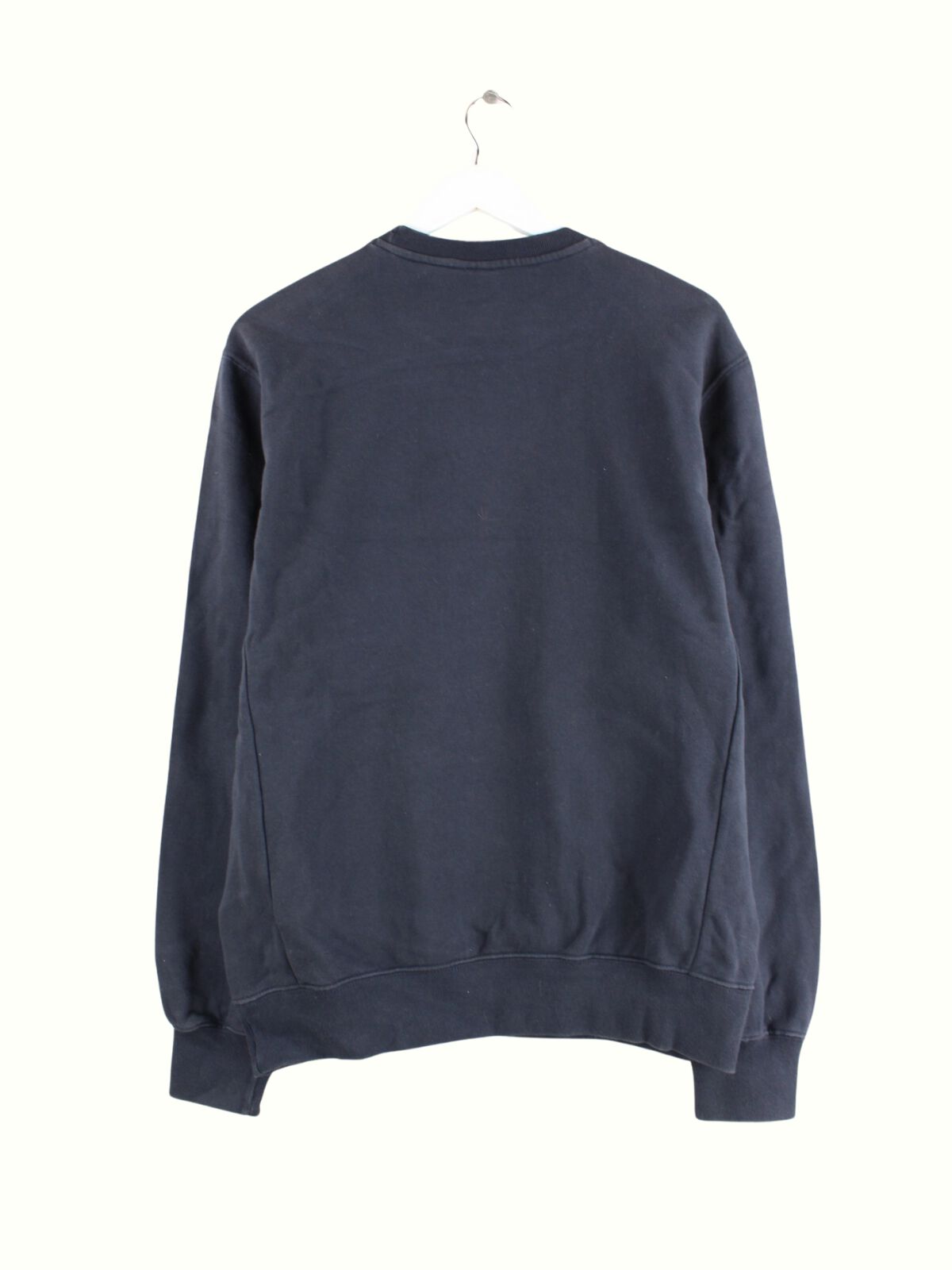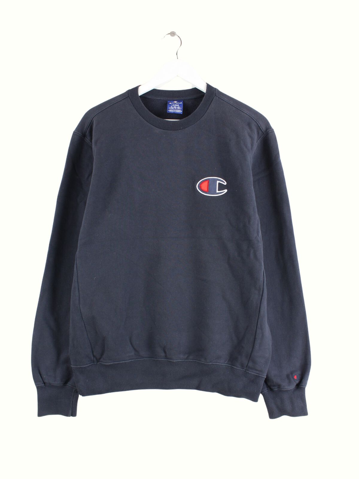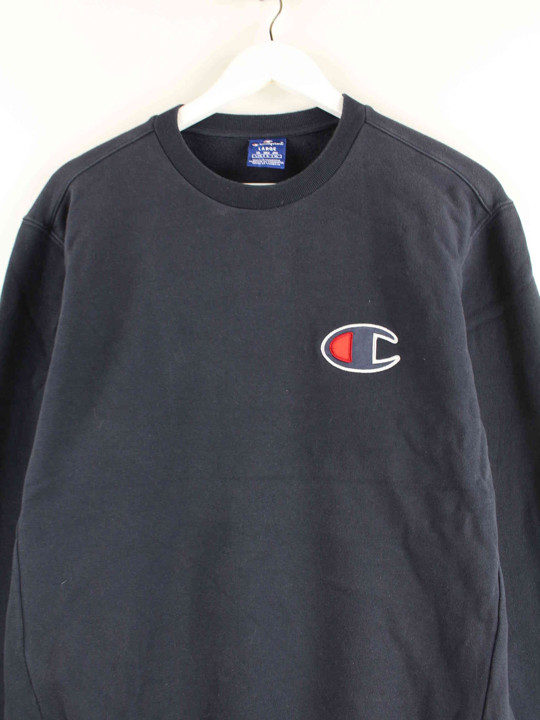 Blauer Sweater mit gesticktem Logo vom Label Champion in Größe L. Er ist aus einer Baumwollmischung gemacht und in sehr gutem Zustand im Bestand.
