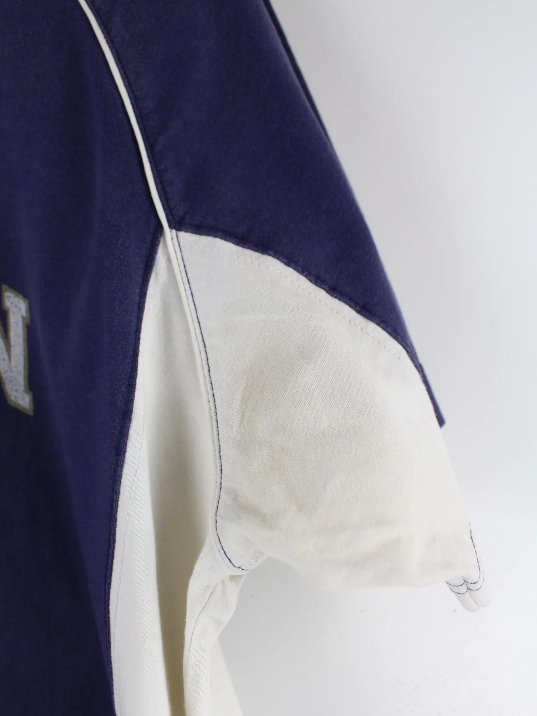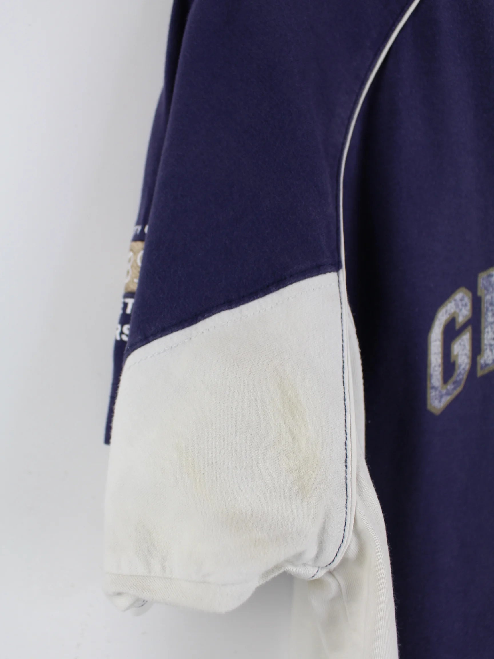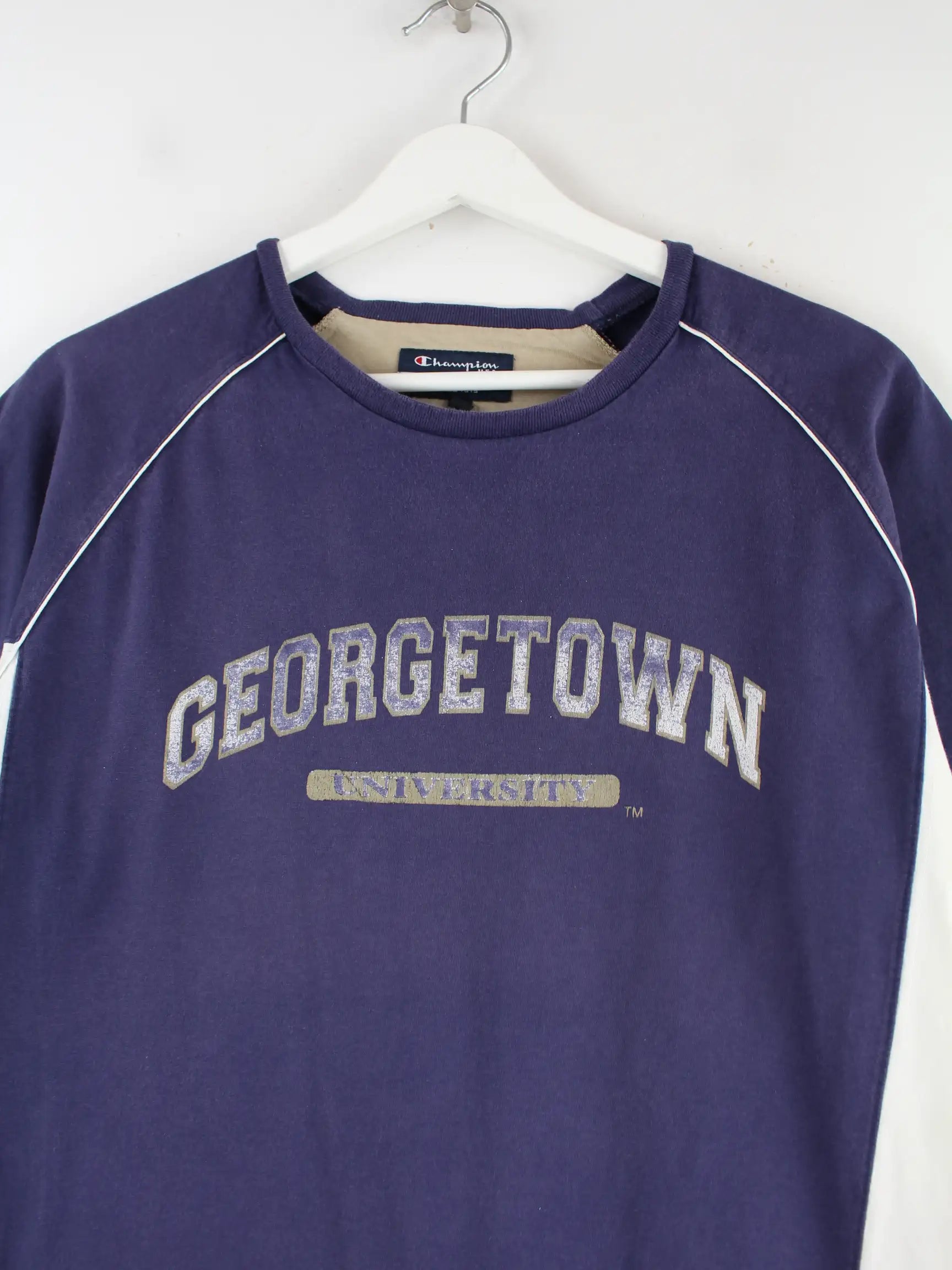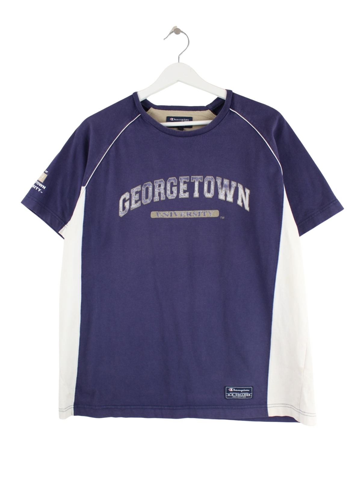 Blaues T-Shirt vom Brand Champion in Größe M. Es ist aus Baumwolle hergestellt. Den Zustand würden wir als 'In Ordnung' bezeichnen (vergl. Bilder).Mit seltenem Georgetown Print.