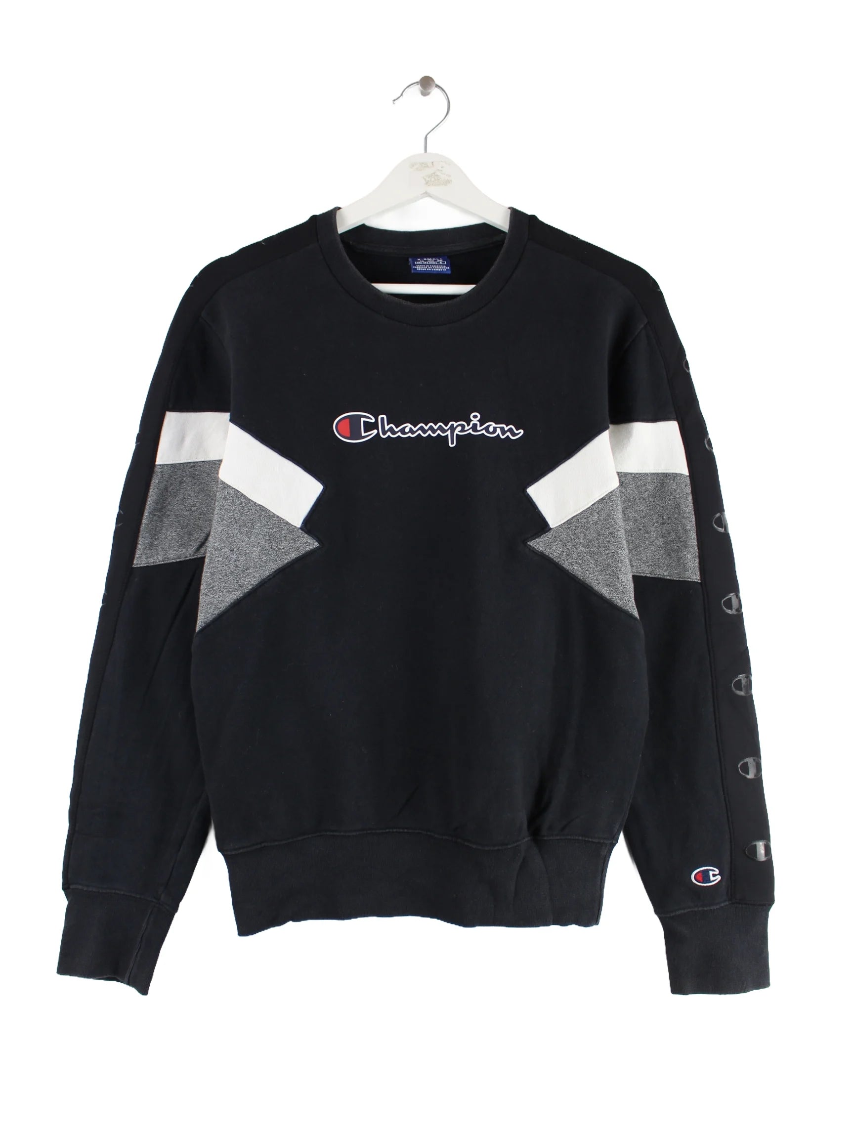 Sweater der Brand Champion in Größe XS. Er ist aus einer Baumwollmischung gefertigt und in Schwarz vorrätig. Mit seltenem Logo Print.