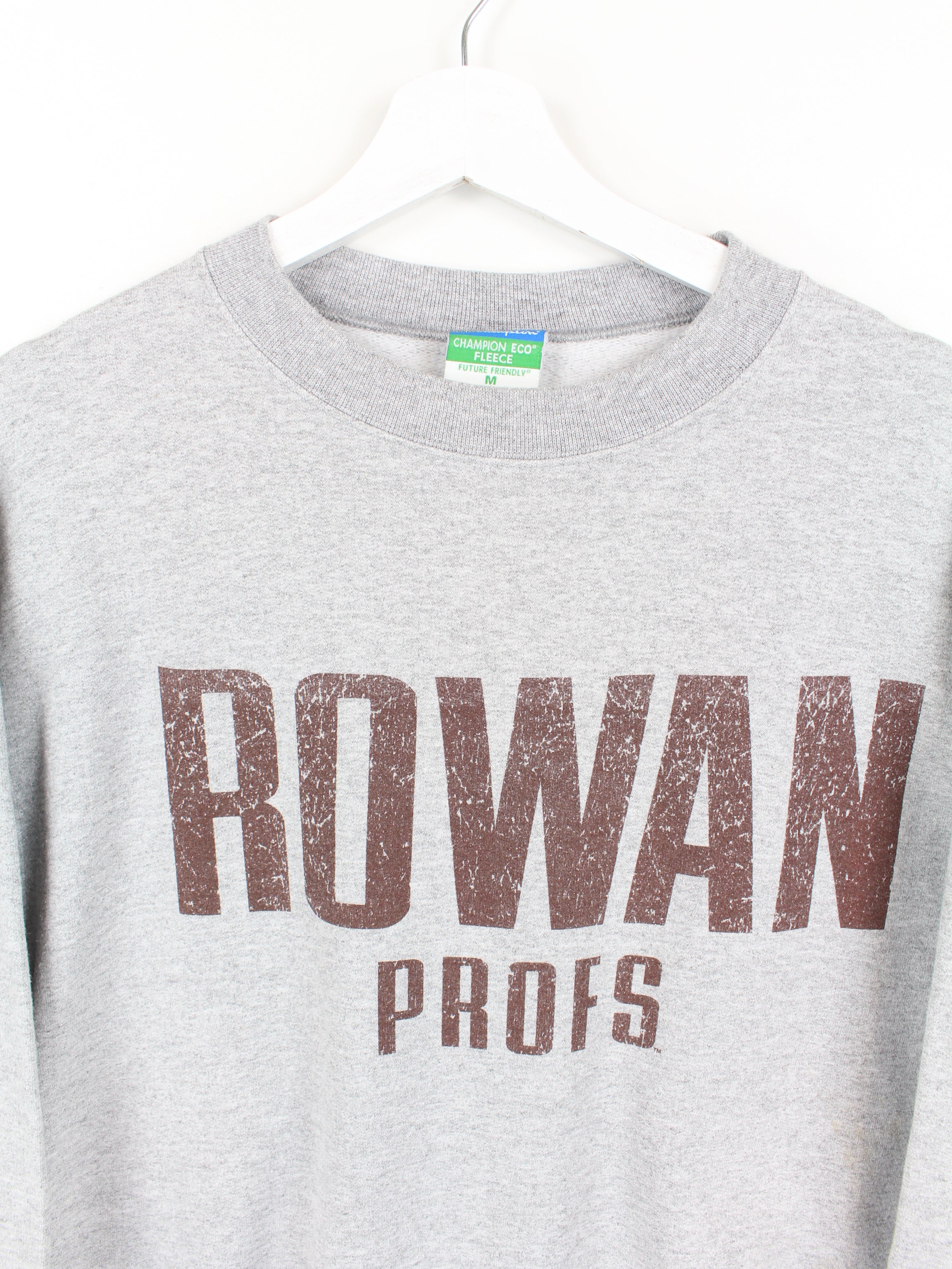 Grauer Champion Sweater mit Rowan Profs Aufdruck.