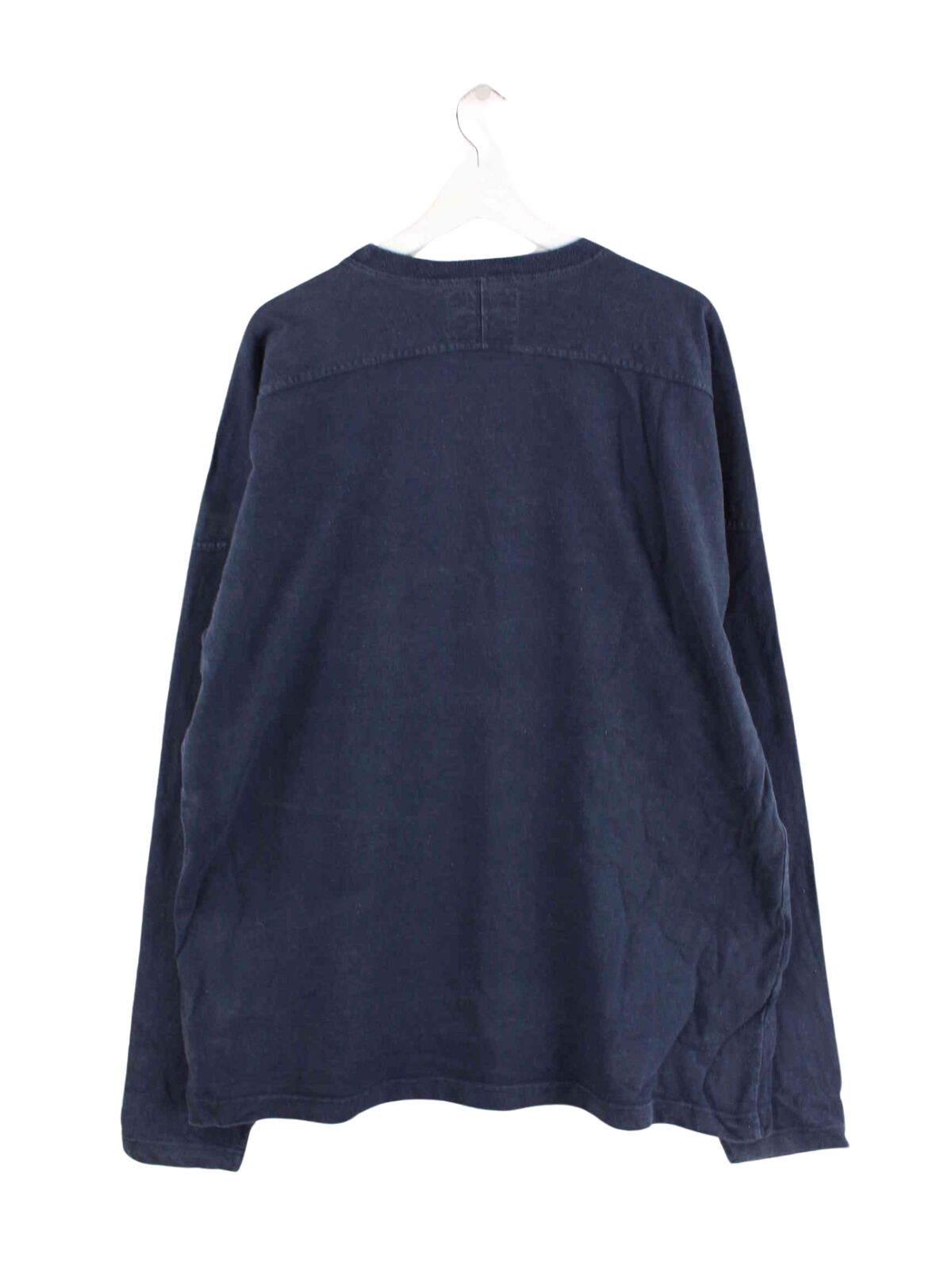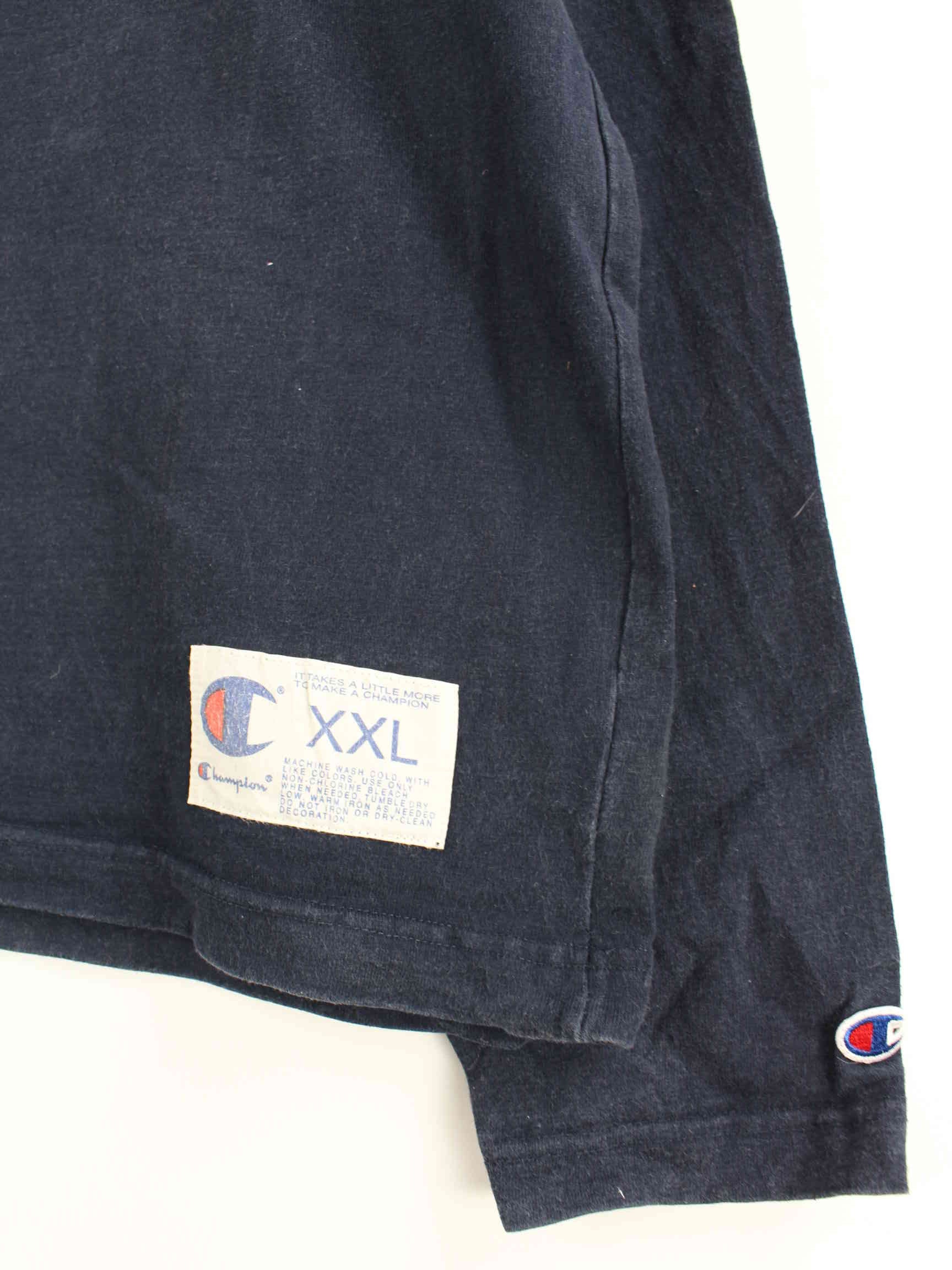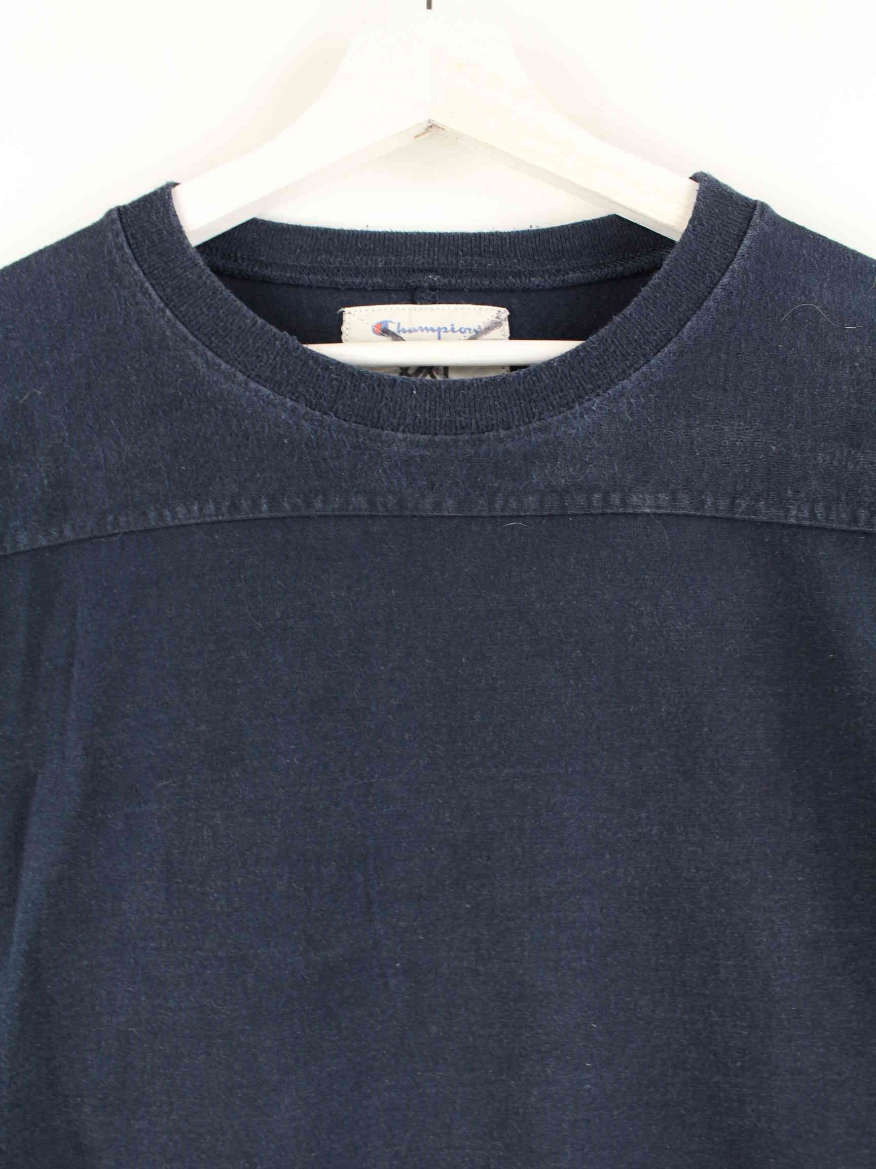 Blauer Sweater der Marke Champion aus Anfang der 2000'er in Größe 3XL. Er ist aus einer Baumwollmischung angefertigt und in sehr gutem Zustand in Stock.