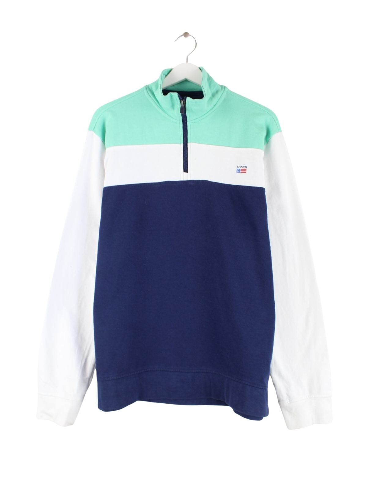 Sweater aus dem Hause Chaps by Ralph Lauren mit kurzem Reißverschluß in Größe L. Er ist aus einer Baumwollmischung gefertigt und in Blau zu bekommen.