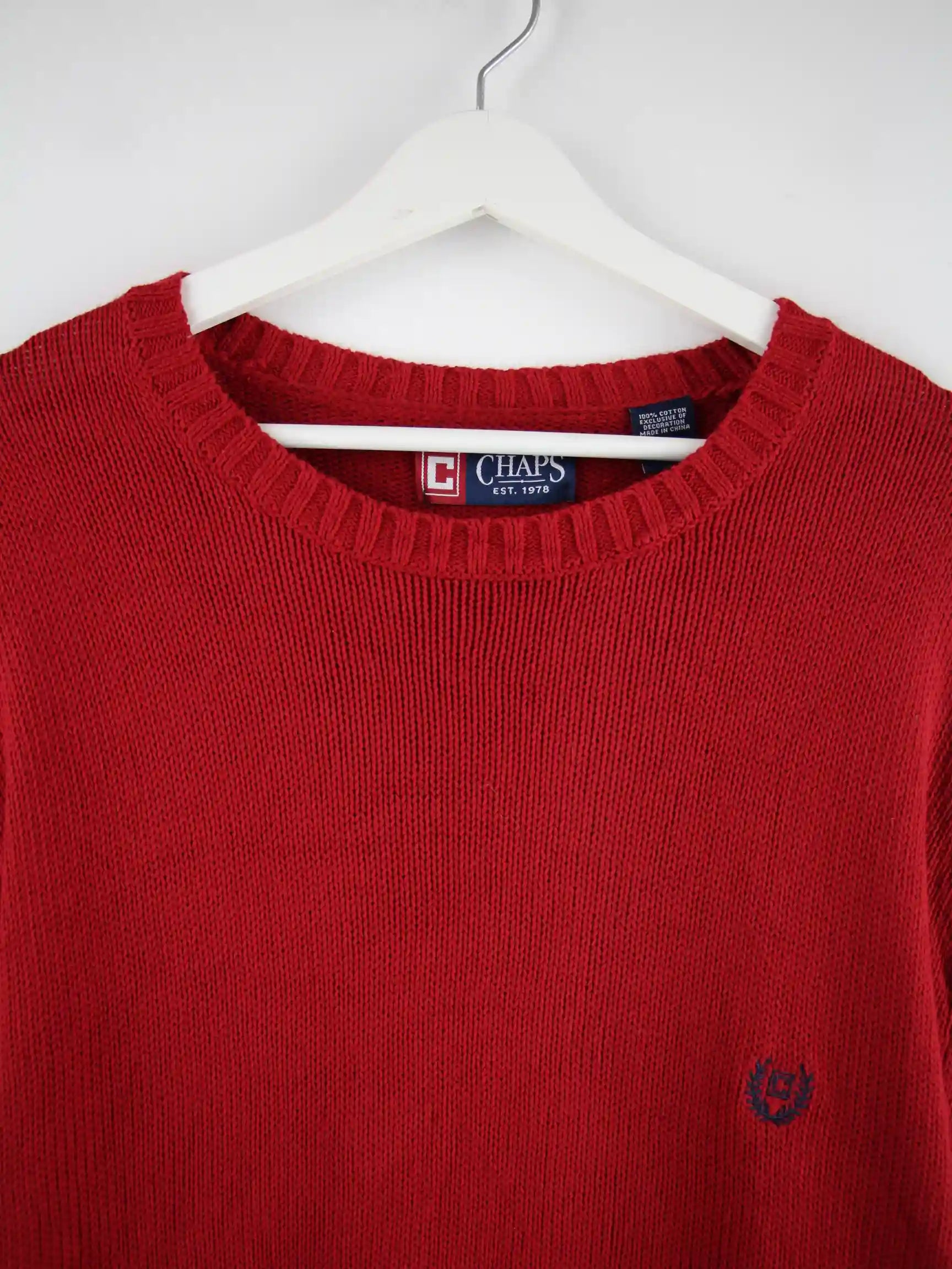 Roter Pullover vom Label Chaps by Ralph Lauren in Größe 3XL. Er ist aus Baumwolle produziert und in sehr gutem Zustand auf Lager.
