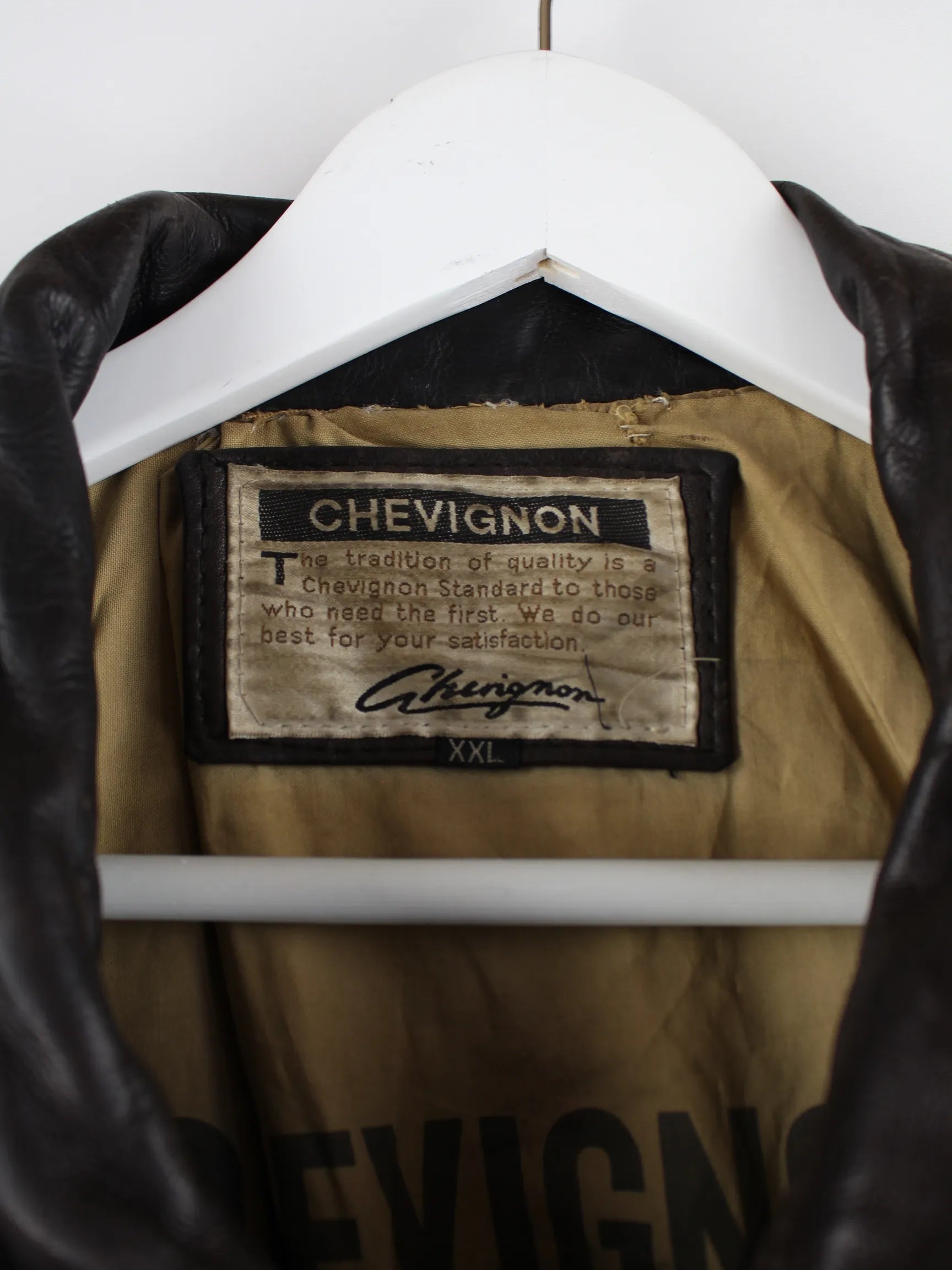 Jacke der Marke Chevignon in Größe XXL aus den 90'ern. Sie ist aus Leder gefertigt und in Braun lieferbar.