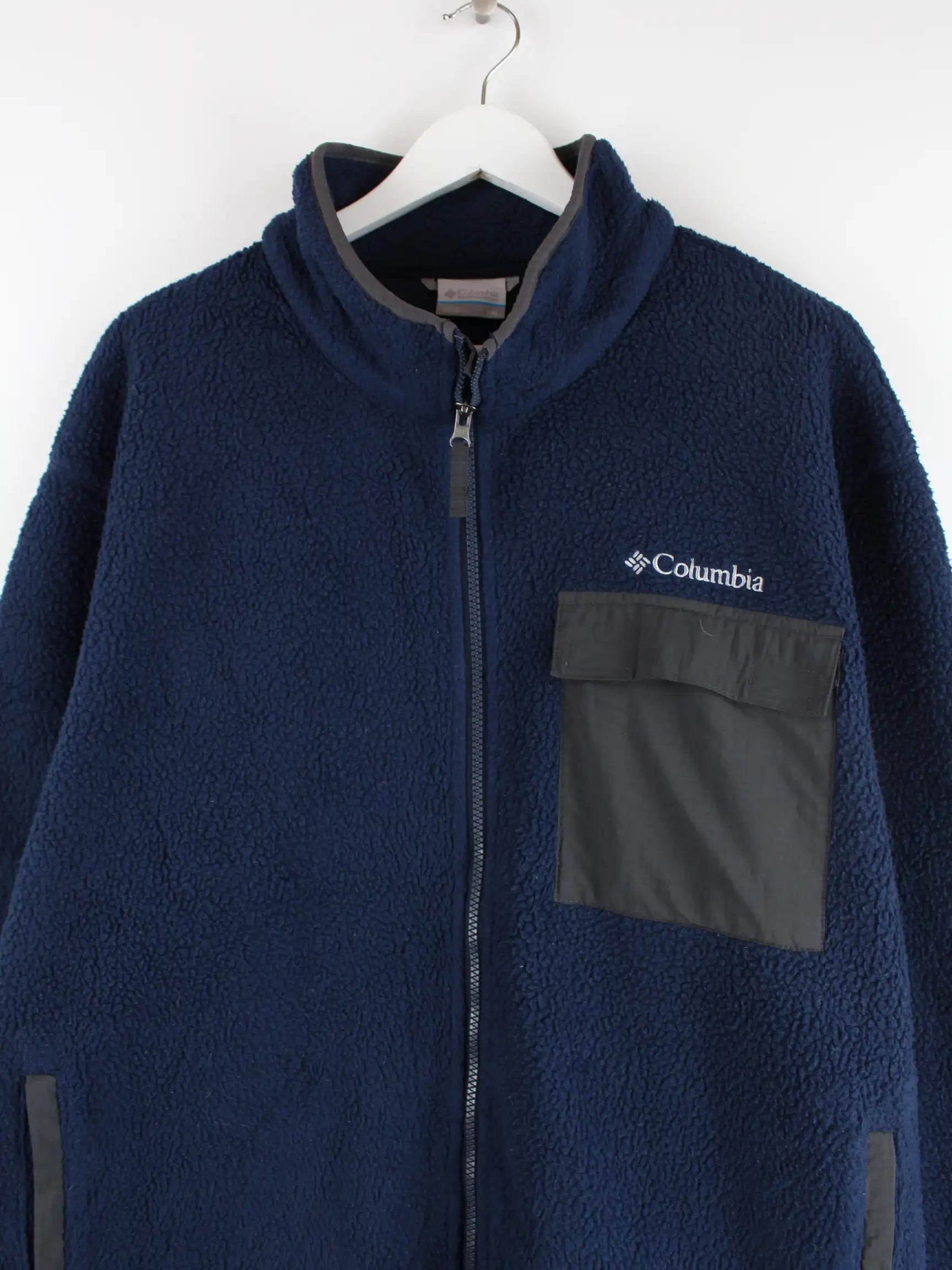 Leichte Jacke vom Label Columbia in Größe XXL. Sie ist aus gemütlichem Fleece gemacht und in Blau vorrätig.