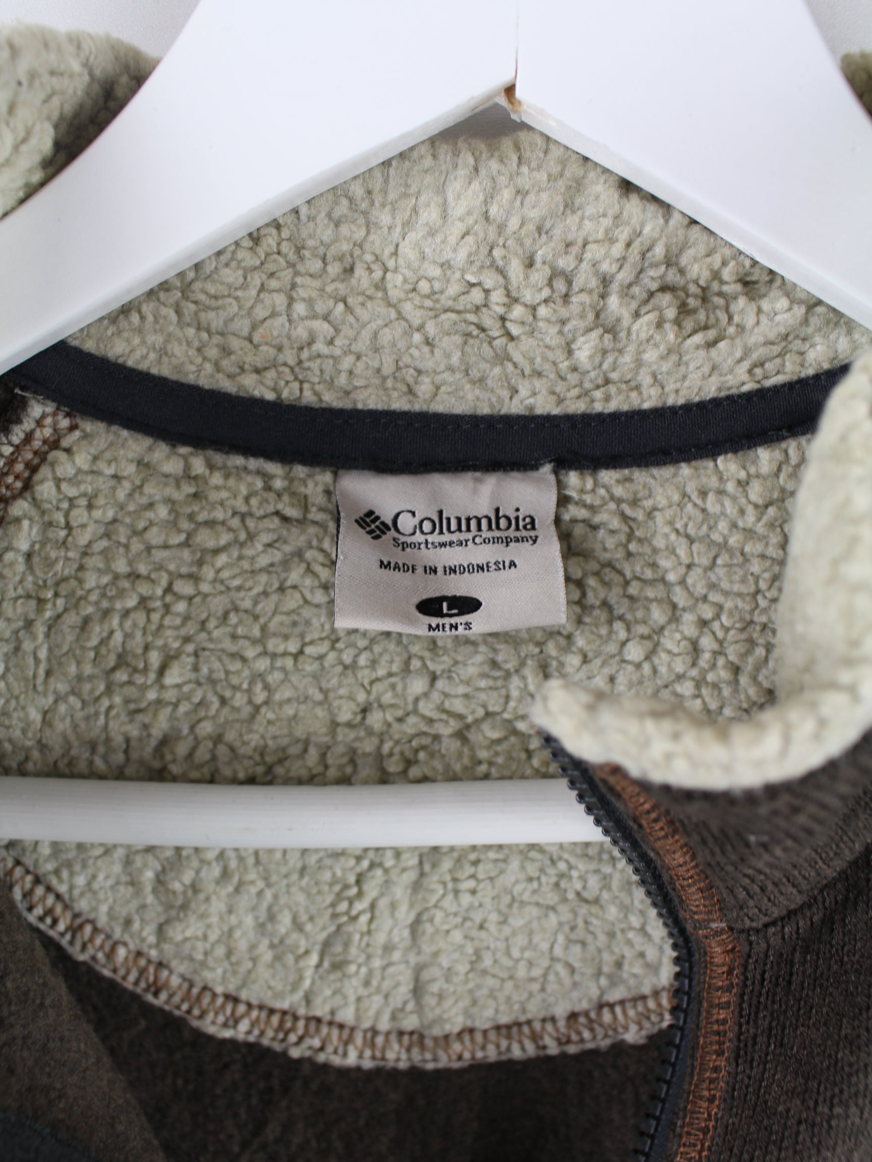 Leichte Jacke der Brand Columbia mit halbem Reißverschluß in Größe L. Sie ist aus Synthetik produziert und in Braun zu haben.