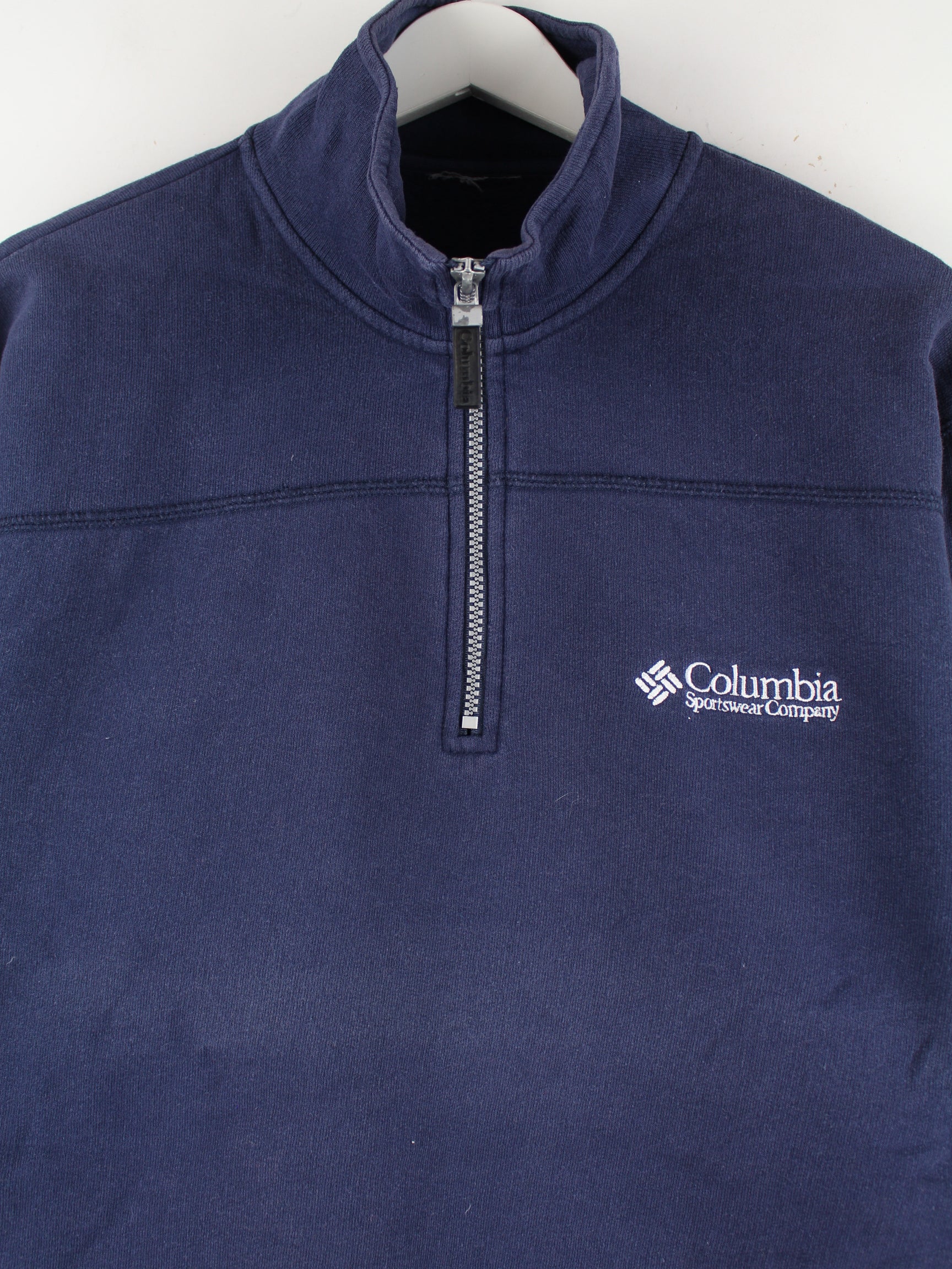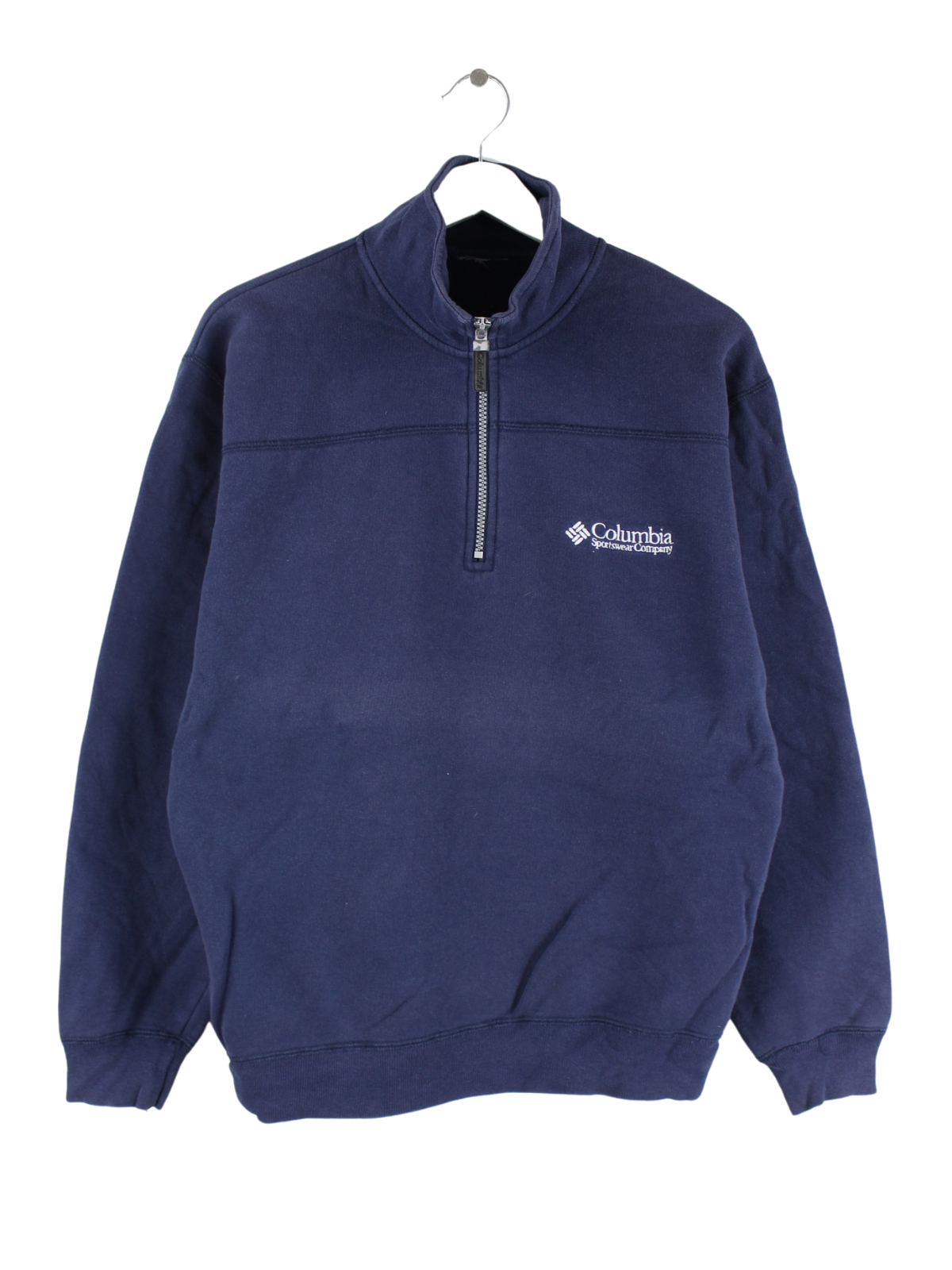 Blauer Sweater mit half Zip des Labels Columbia in Größe M. Er ist aus einer Baumwollmischung und in sehr gutem Zustand im Angebot.