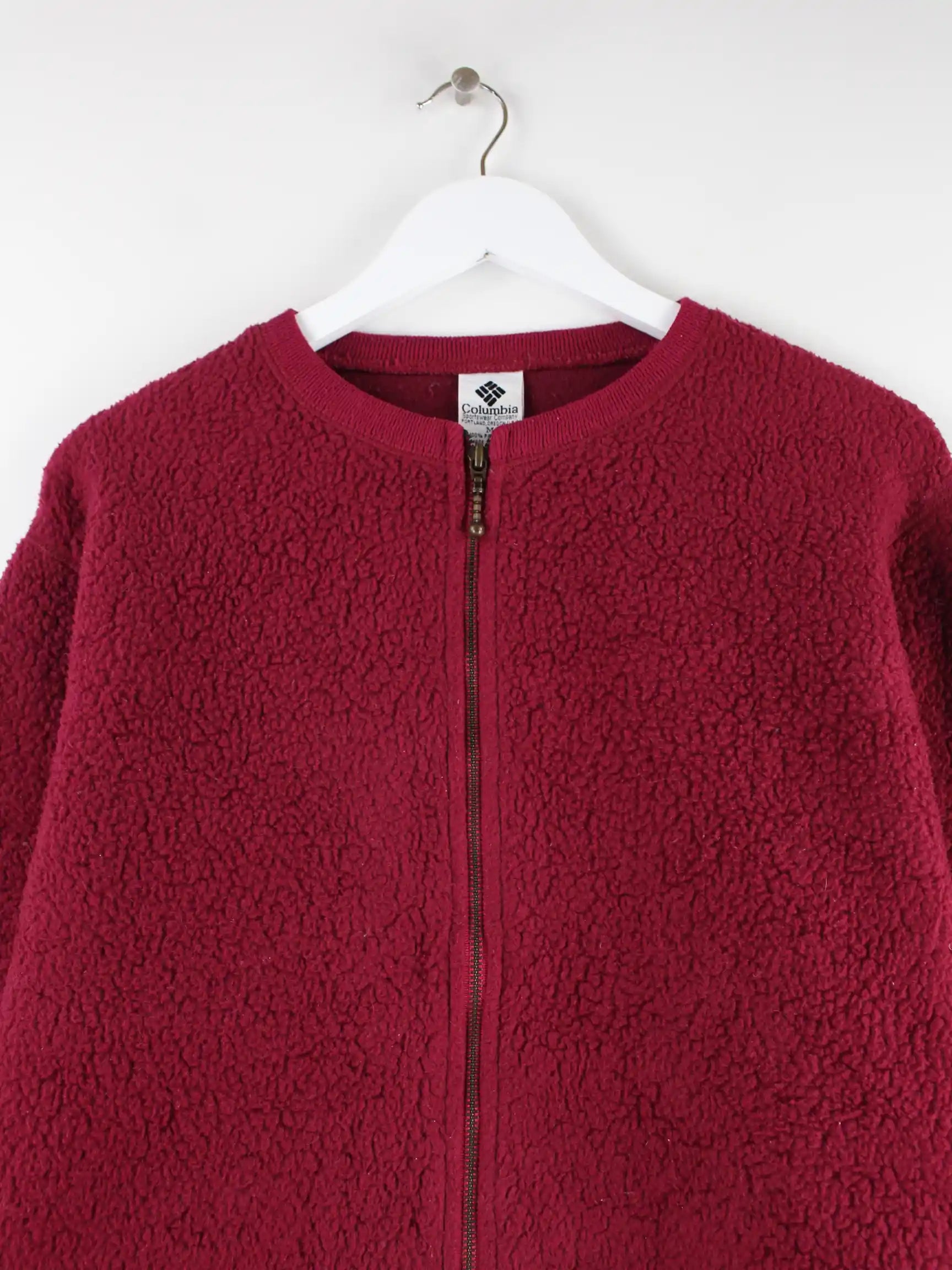 Leichte Jacke der Marke Columbia in Größe M aus den 90'ern. Sie ist aus behaglichem Fleece angefertigt und in Rot vorrätig.