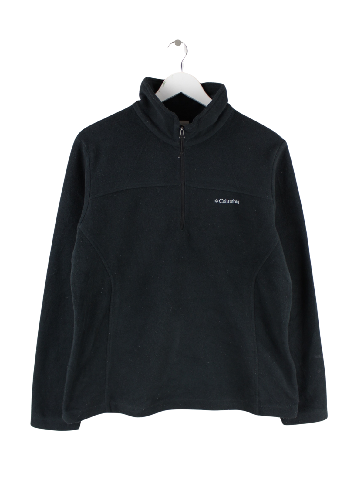 Sweater des Labels Columbia mit halbem Reißverschluß in Größe L. Er ist aus behaglichem Fleece gefertigt und in Schwarz in Stock.
