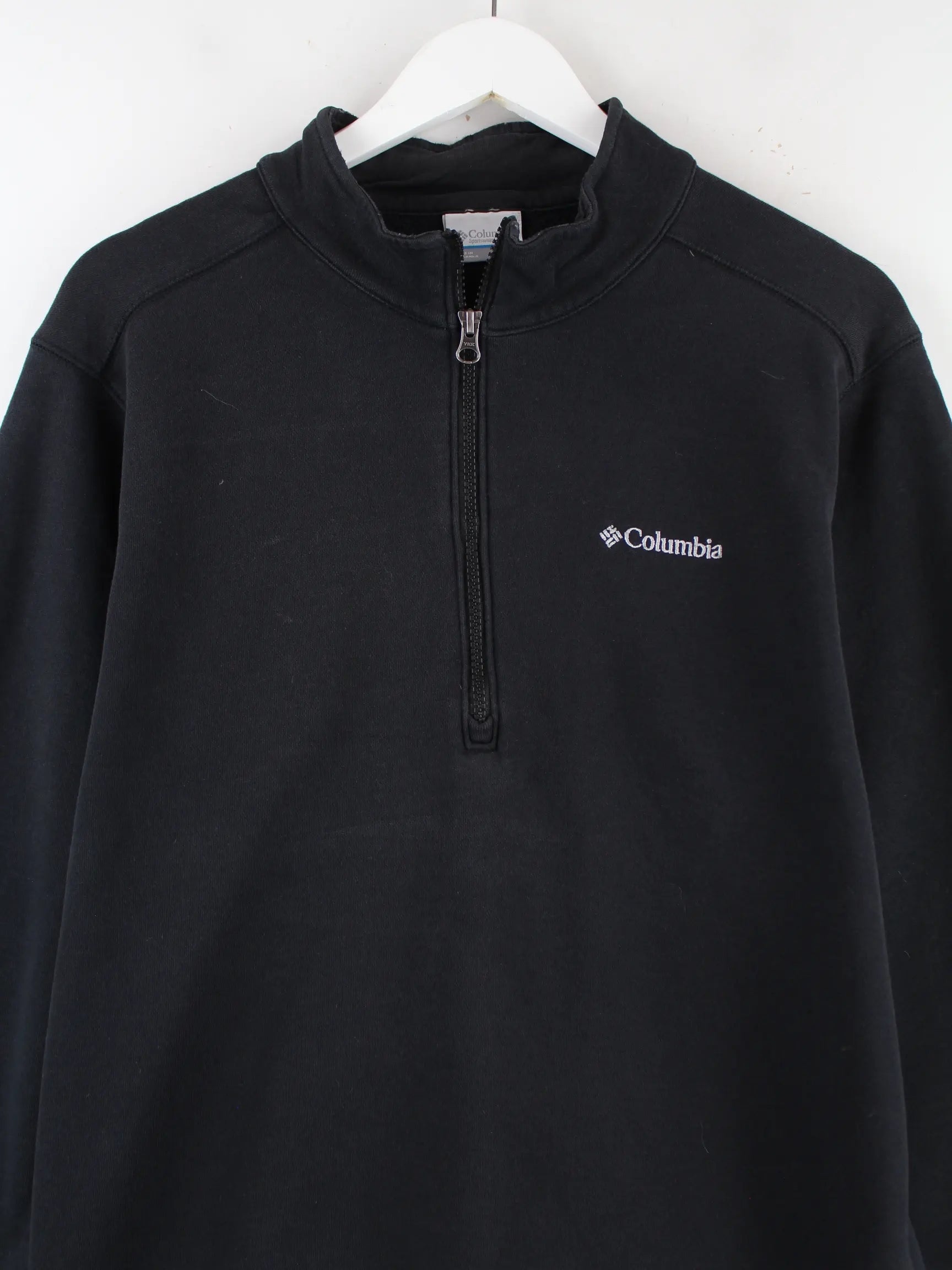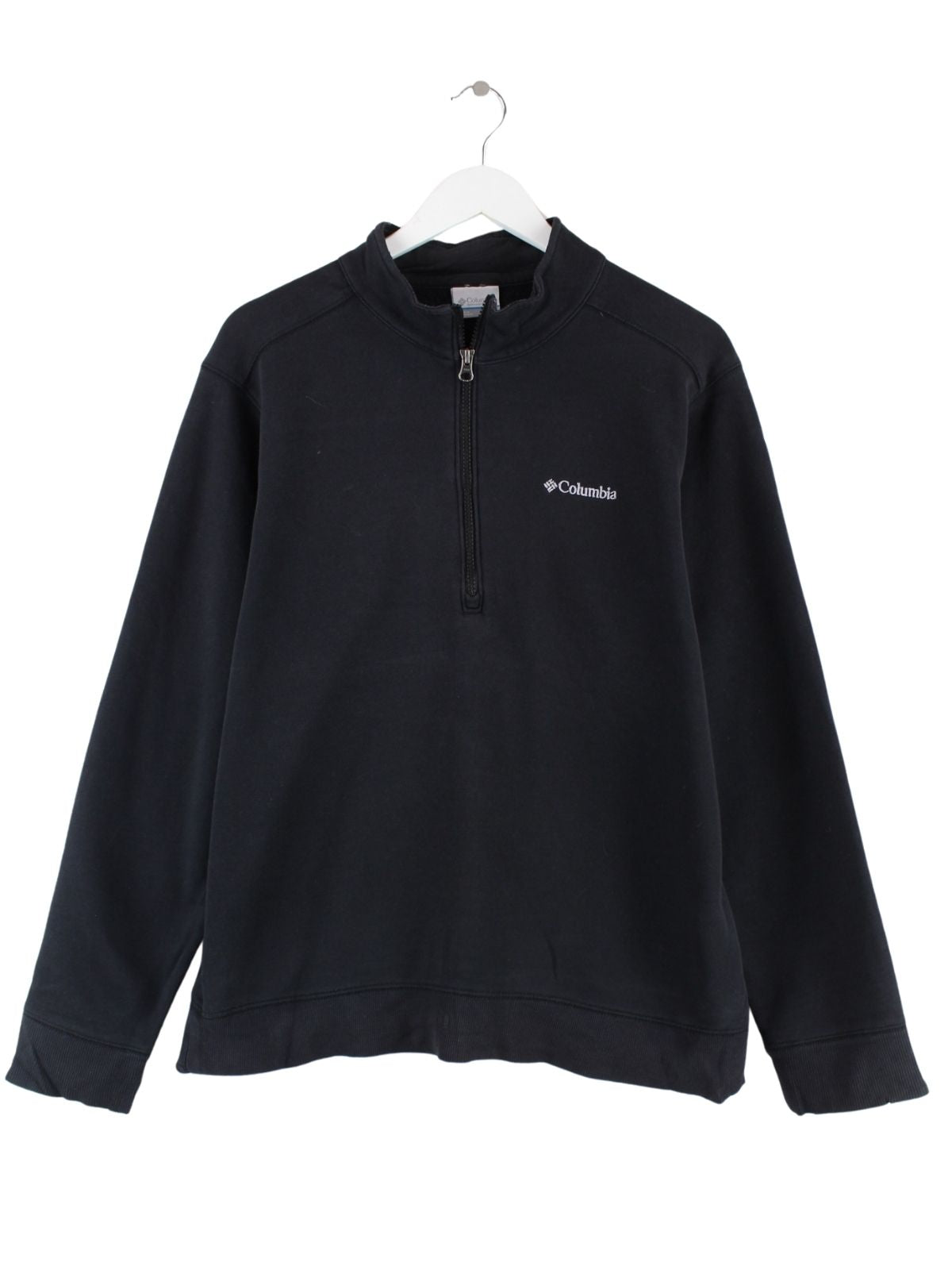 Schwarzer Sweater mit halbem Reißverschluß des Labels Columbia in Größe M. Er ist aus einer Baumwollmischung produziert und in gutem Zustand bei uns zu bekommen.