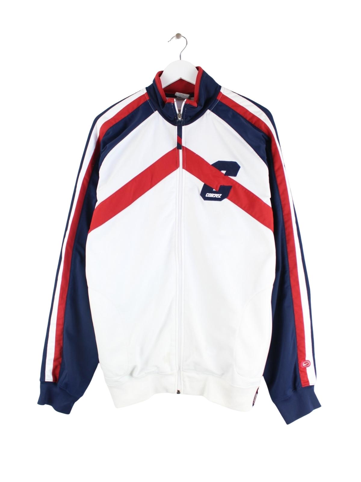 Weiße Trainingsjacke mit Stickereien vom Label Coogi in Größe XXL. Sie ist aus Synthetik gemacht und in gutem Zustand bei uns zu bekommen.