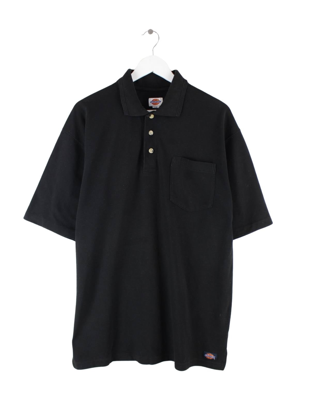 Poloshirt vom Label Dickies in Größe XXL aus den 90'ern. Es ist aus Baumwolle hergestellt und in Schwarz im Bestand.