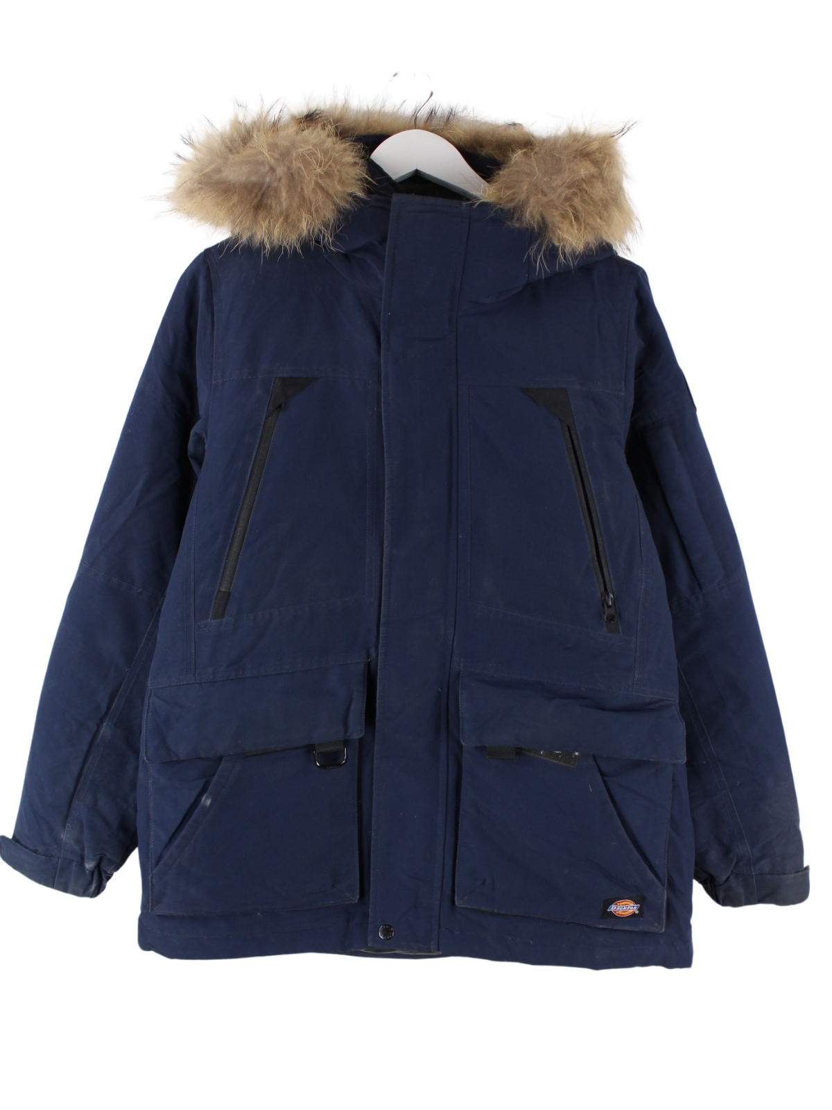 Blaue Jacke aus dem Hause Dickies in Größe S. Sie ist aus Synthetik gefertigt und in gutem Zustand vorrätig.