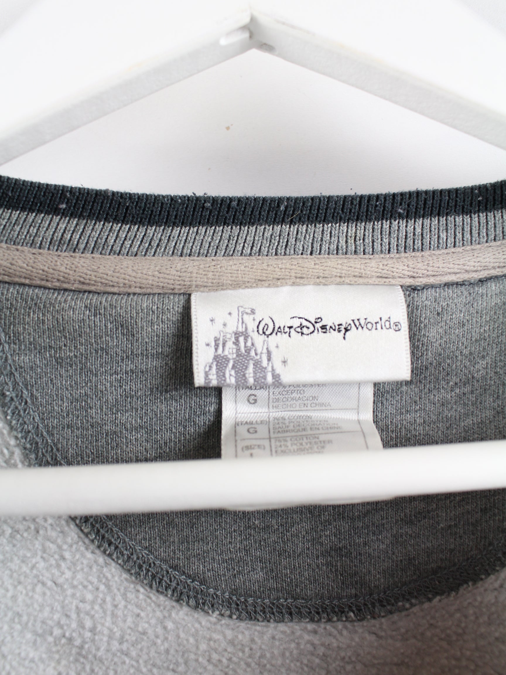 Sweater aus dem Hause Disney mit gestickten Motiven in Größe L aus Anfang der 2000'er. Er ist aus einer Baumwollmischung gefertigt und in Grau im Angebot.