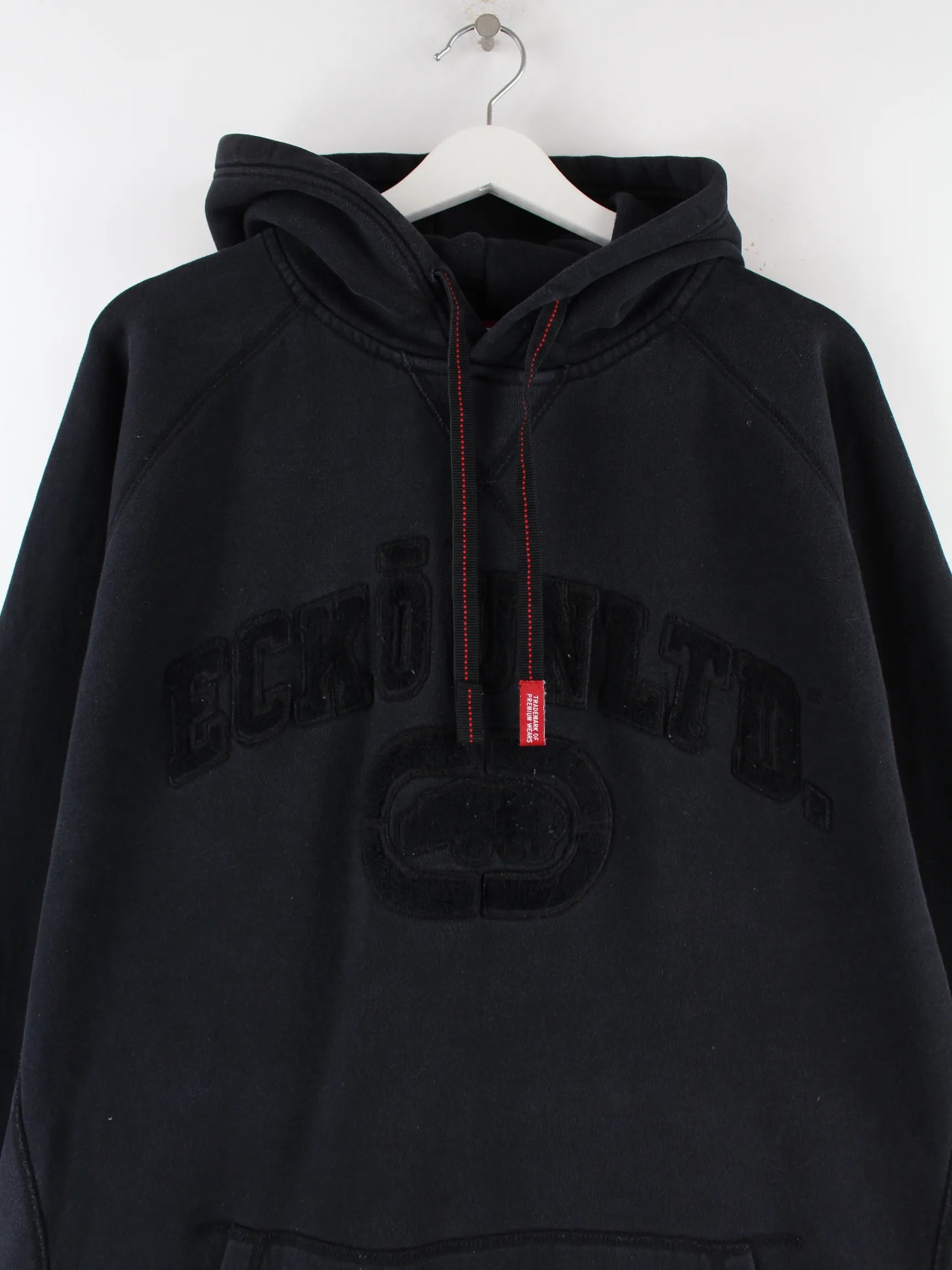 Hoodie vom Brand Ecko mit gesticktem Logo in Größe 3XL. Er ist aus einer Baumwollmischung gemacht und in Schwarz auf Lager.