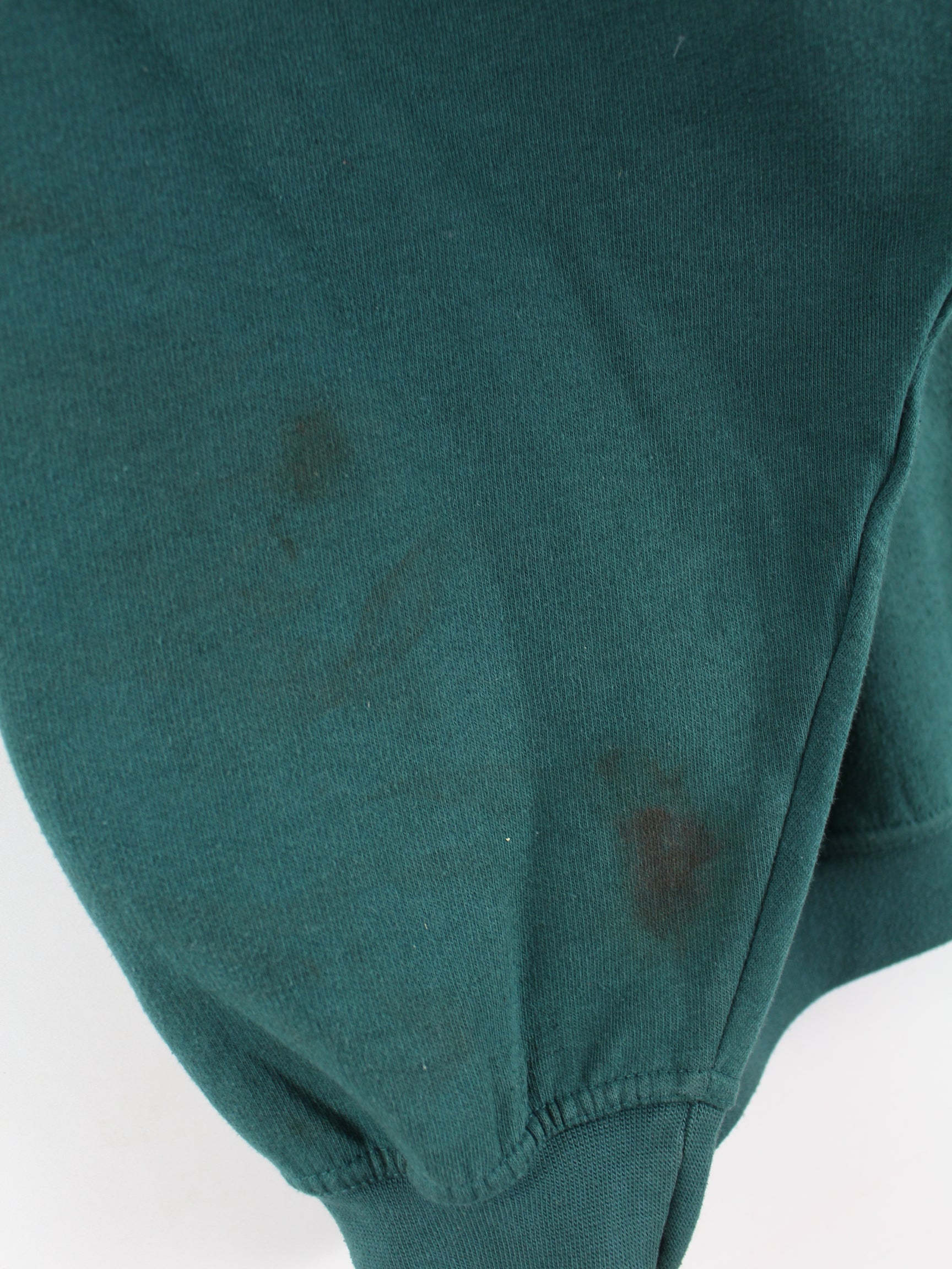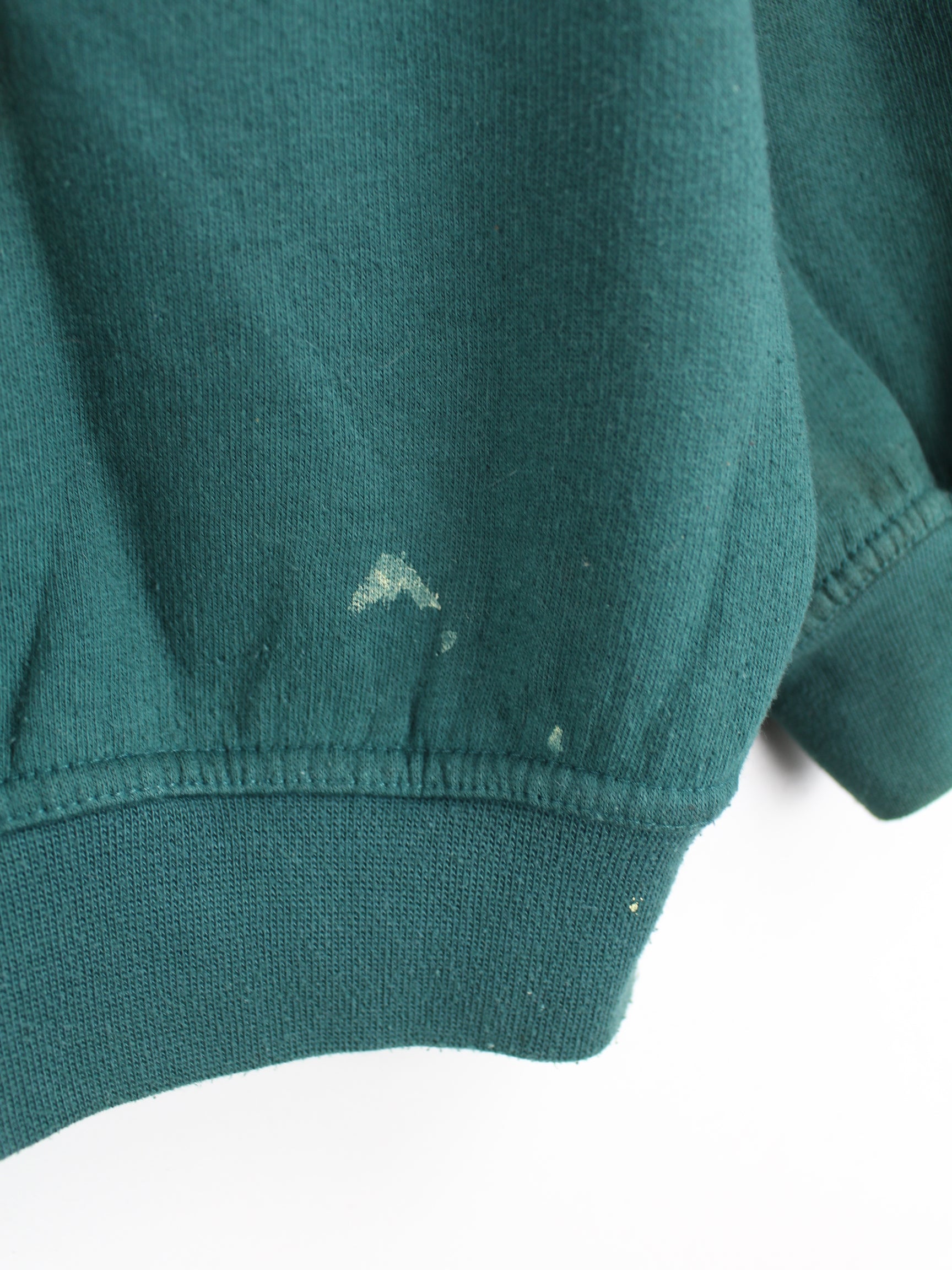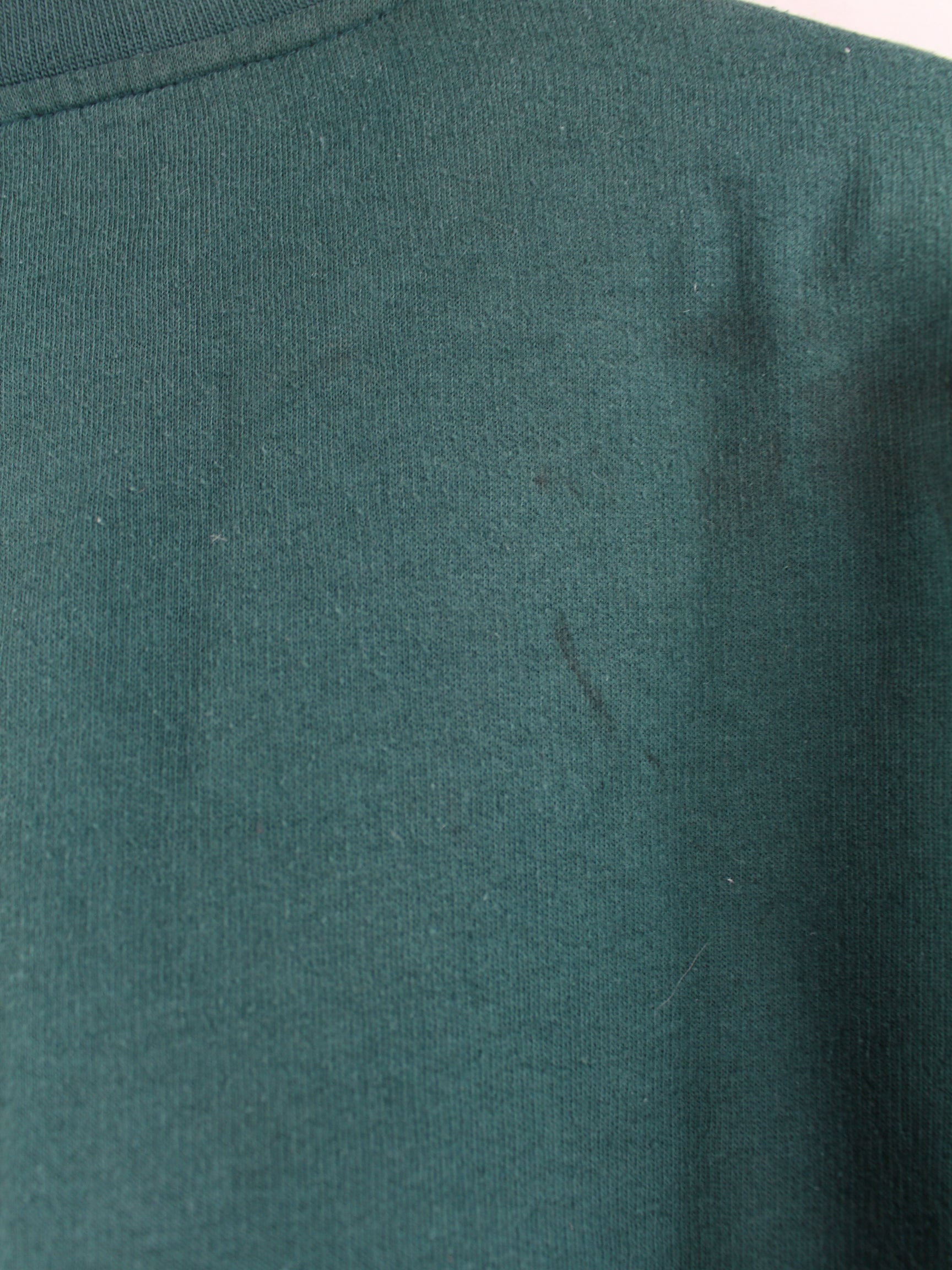 Grüner Sweater mit gestickten Motiven aus dem Hause Ellesse aus den 90'ern in Größe XL. Er ist aus einer Baumwollmischung angefertigt. Den Zustand würden wir als 'In Ordnung' bezeichnen (vergl. Bilder).