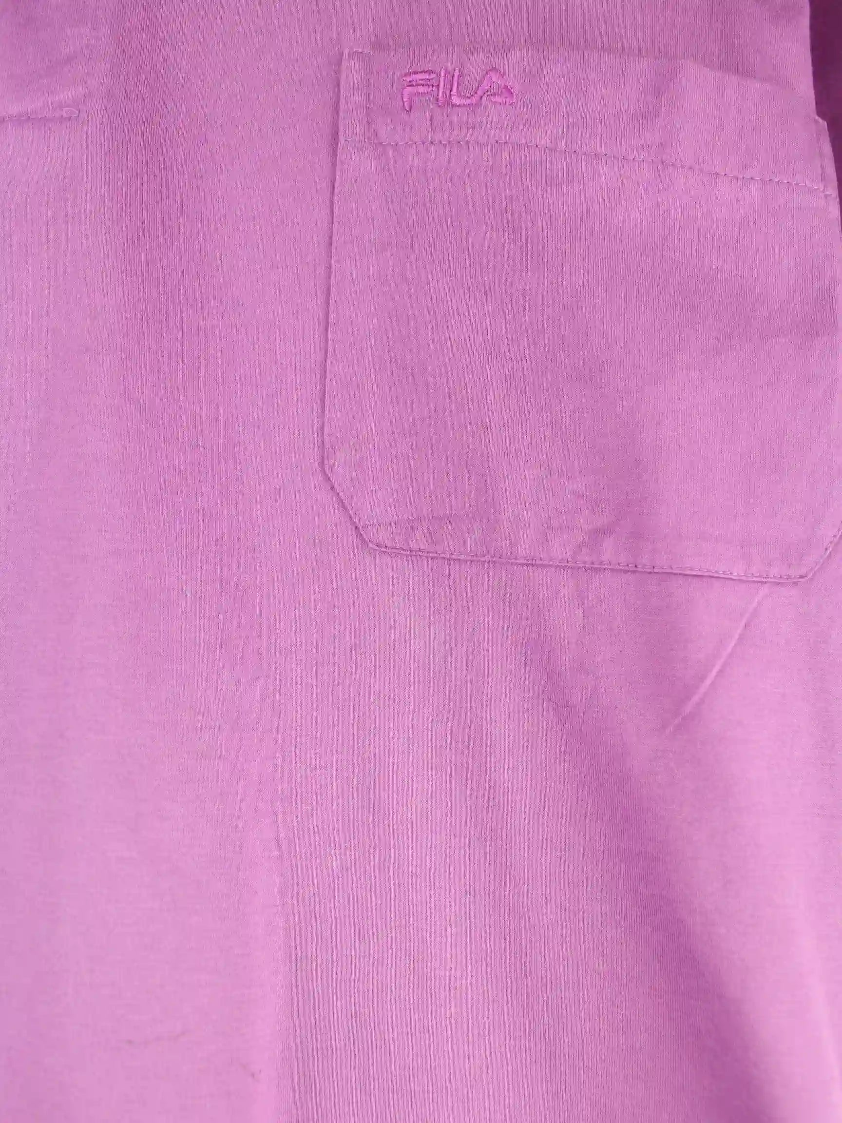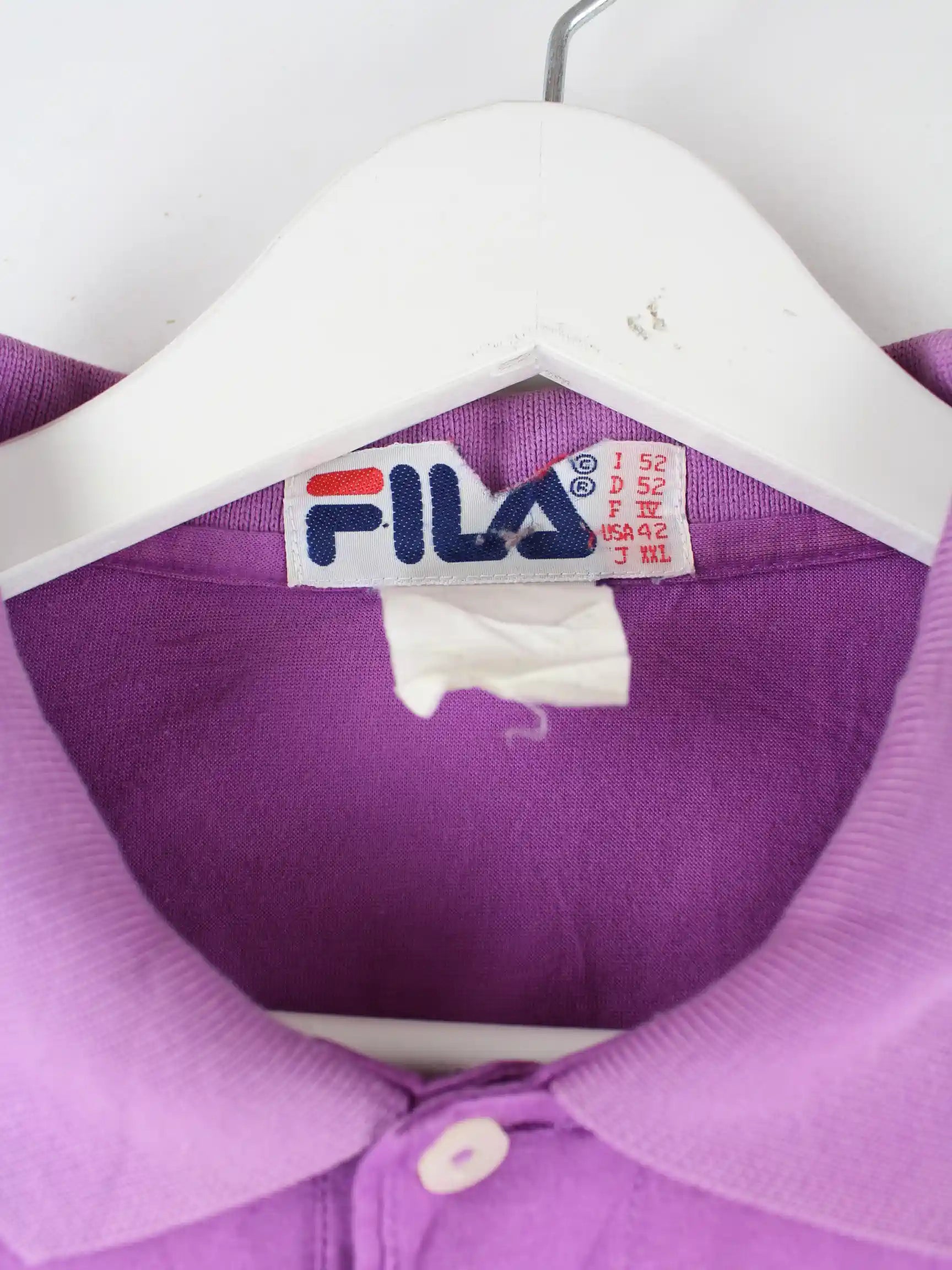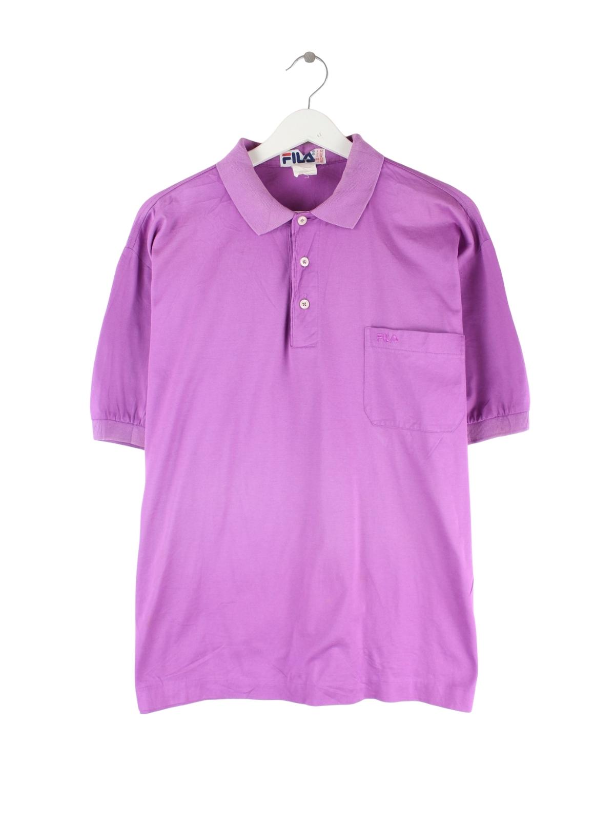Lilafarbenes Poloshirt aus dem Hause Fila aus den 90'ern in Größe L. Es ist aus Baumwolle hergestellt. Den Zustand würden wir als 'In Ordnung' bezeichnen (vergl. Bilder).