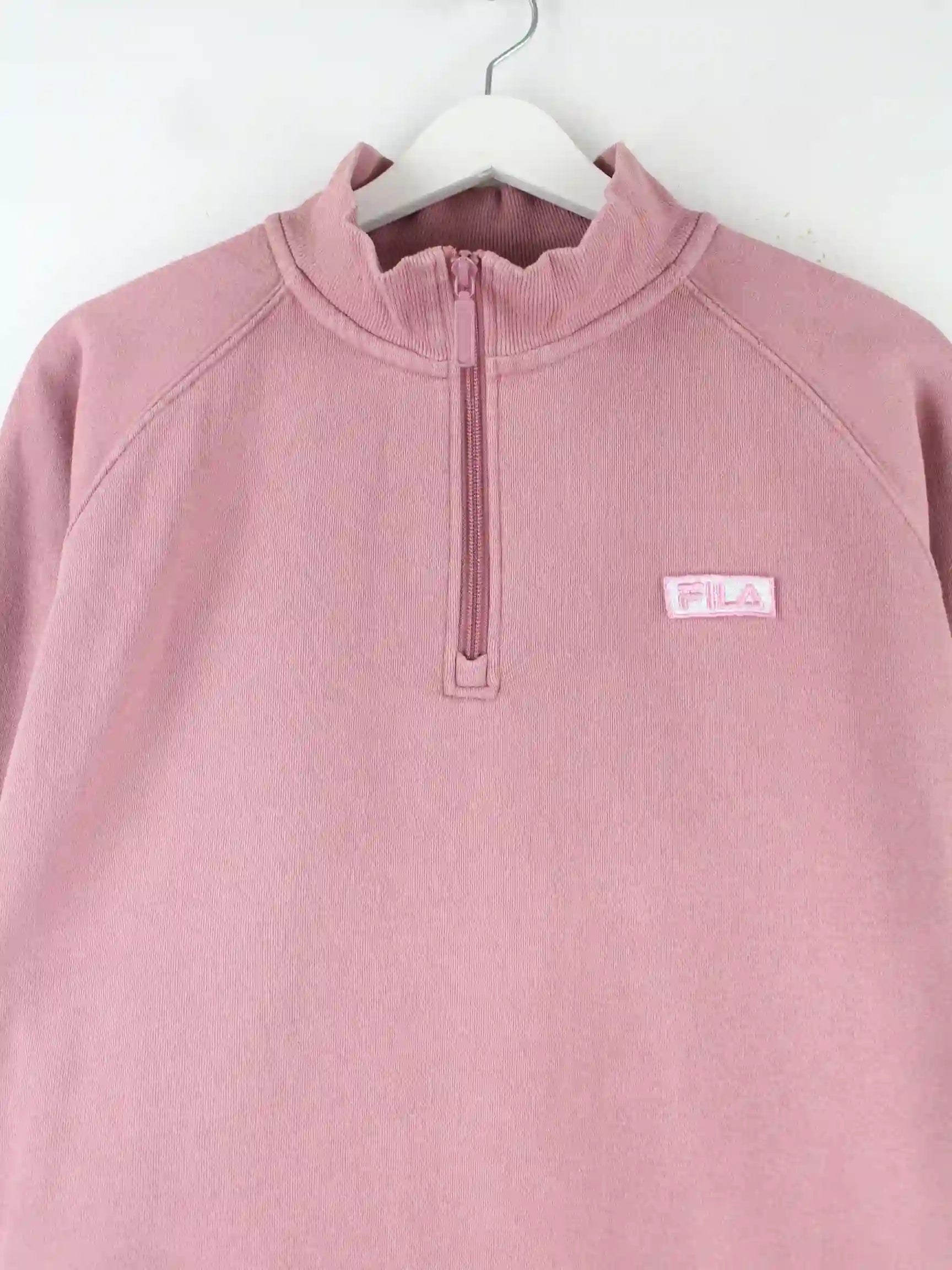 Rosafarbener Sweater mit half Zip vom Label Fila in Größe L. Er ist aus einer Baumwollmischung gemacht. Den Zustand würden wir als 'In Ordnung' bezeichnen (vergl. Bilder).