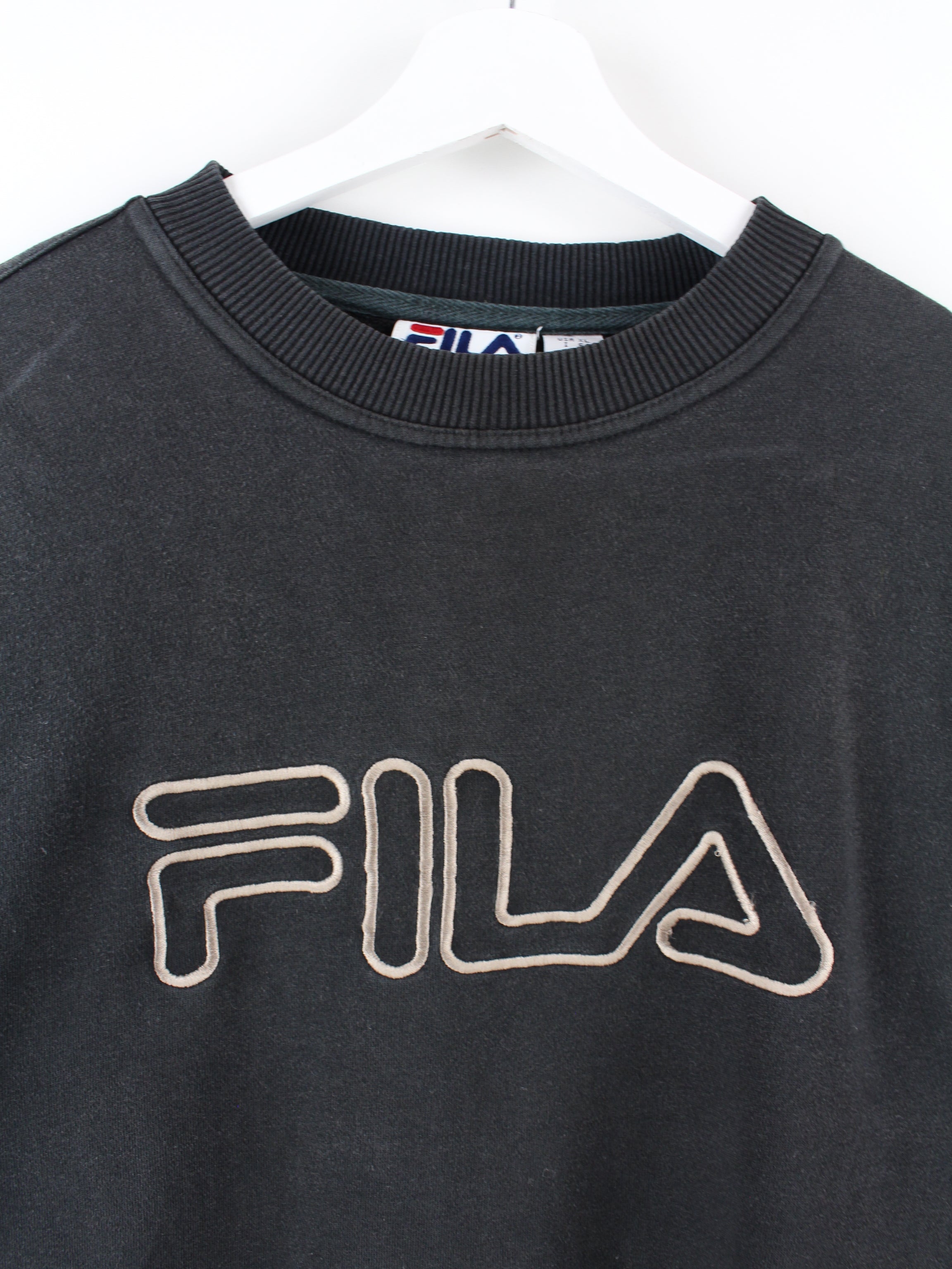 Schwarzer Vintage Fila Sweater mit aufgesticktem Logo.
