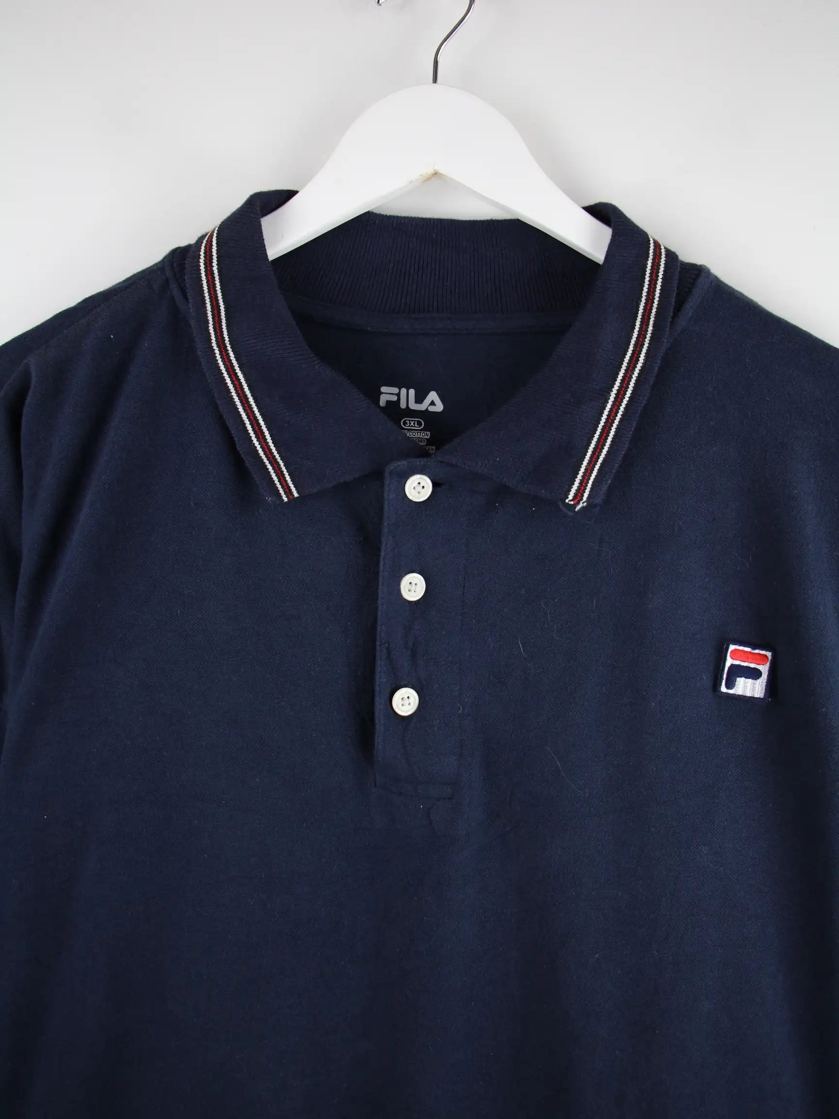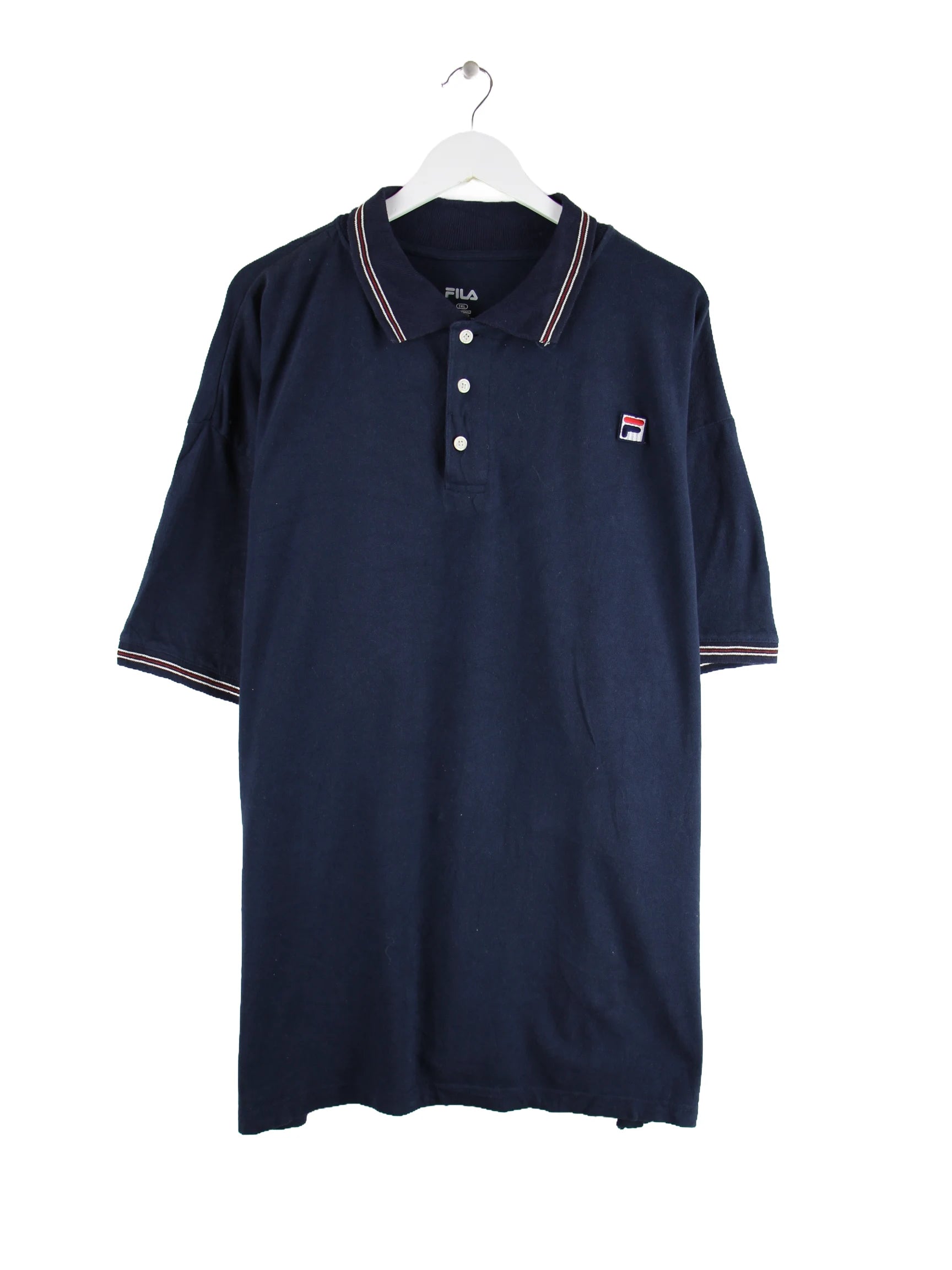 Poloshirt vom Label Fila in Größe 3XL. Es ist aus Baumwolle gefertigt und in Blau lieferbar.