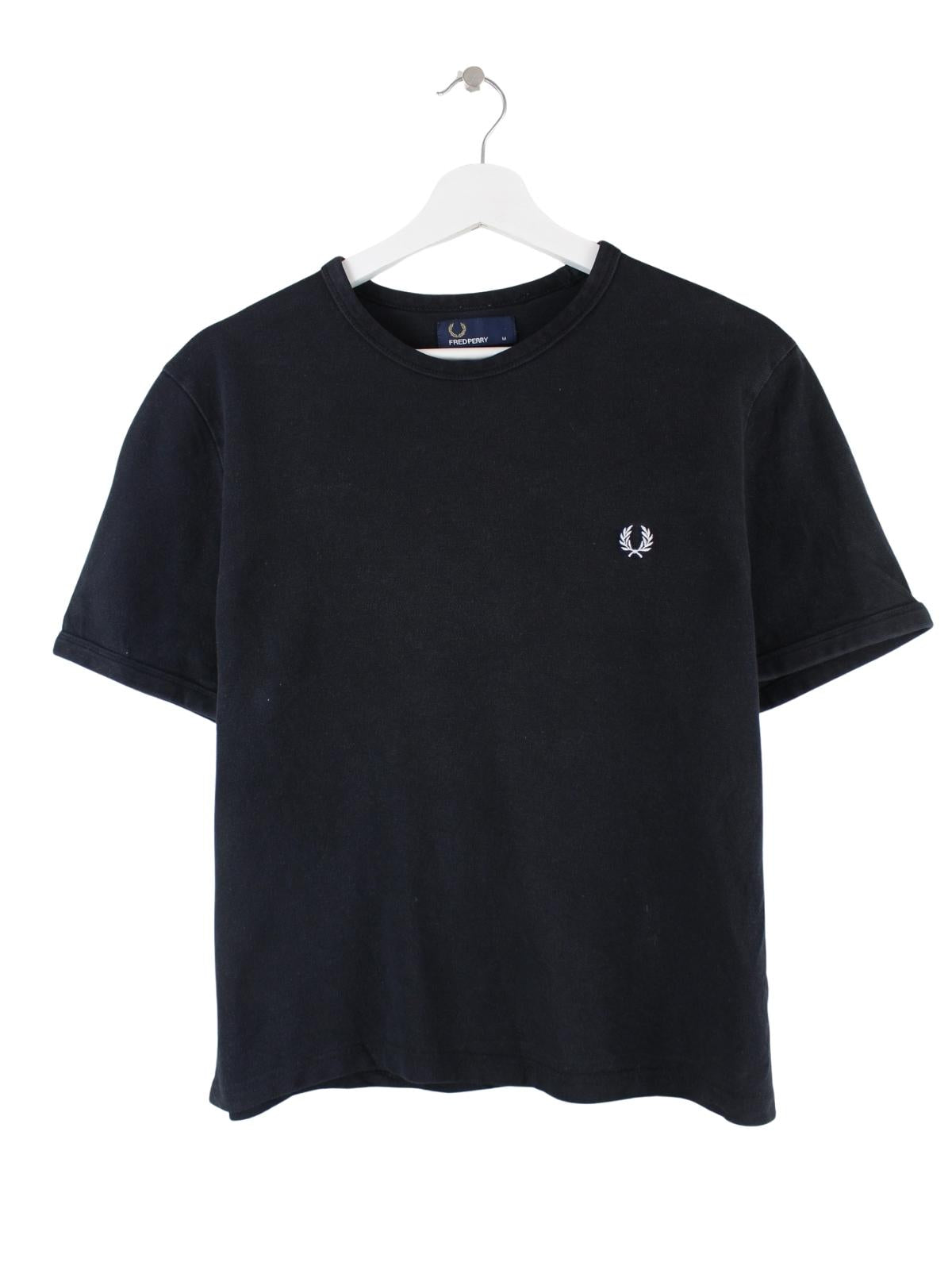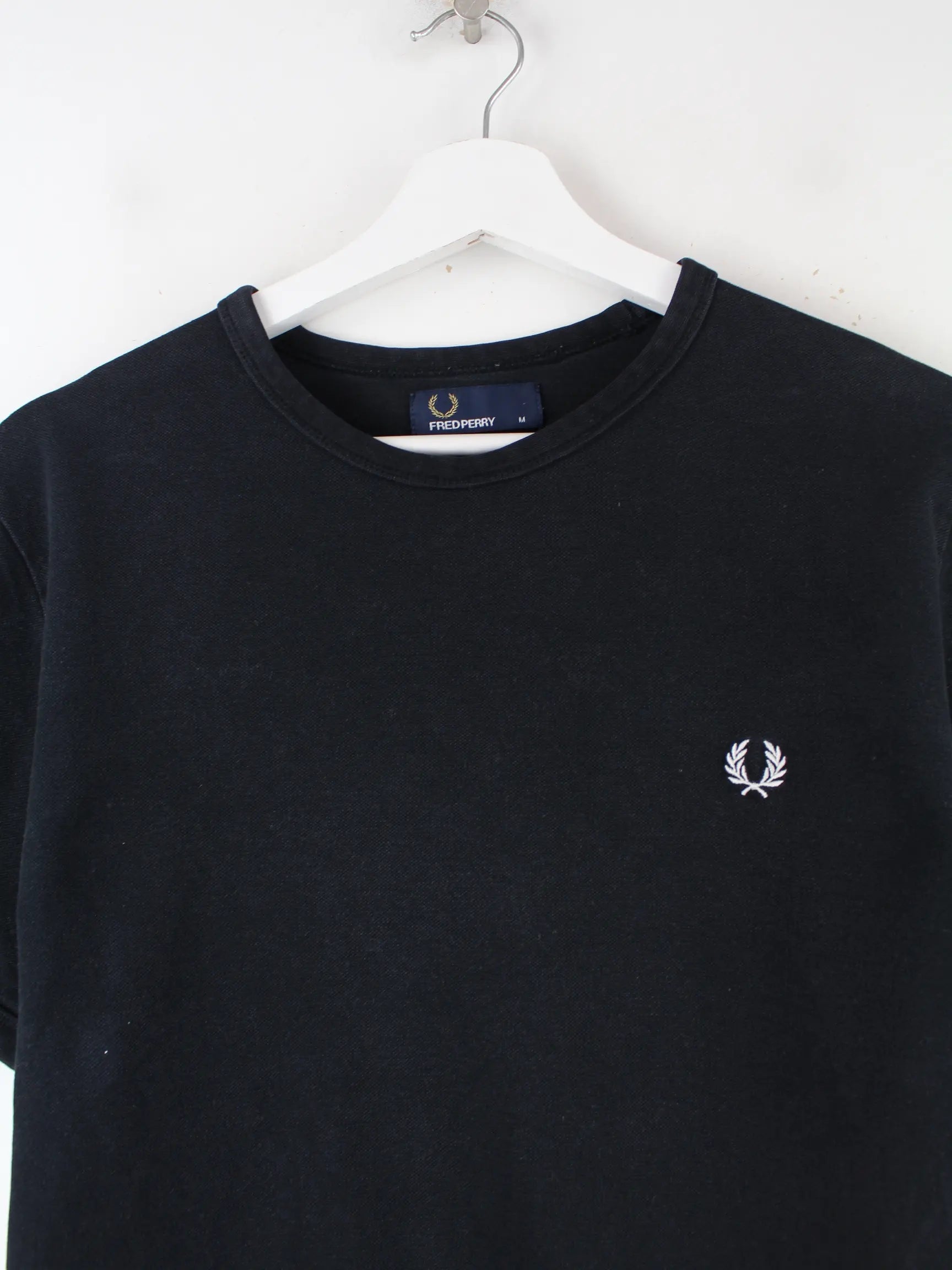 Schwarzes T-Shirt aus dem Hause Fred Perry in Größe M. Es ist aus Baumwolle und in gutem Zustand im Angebot.