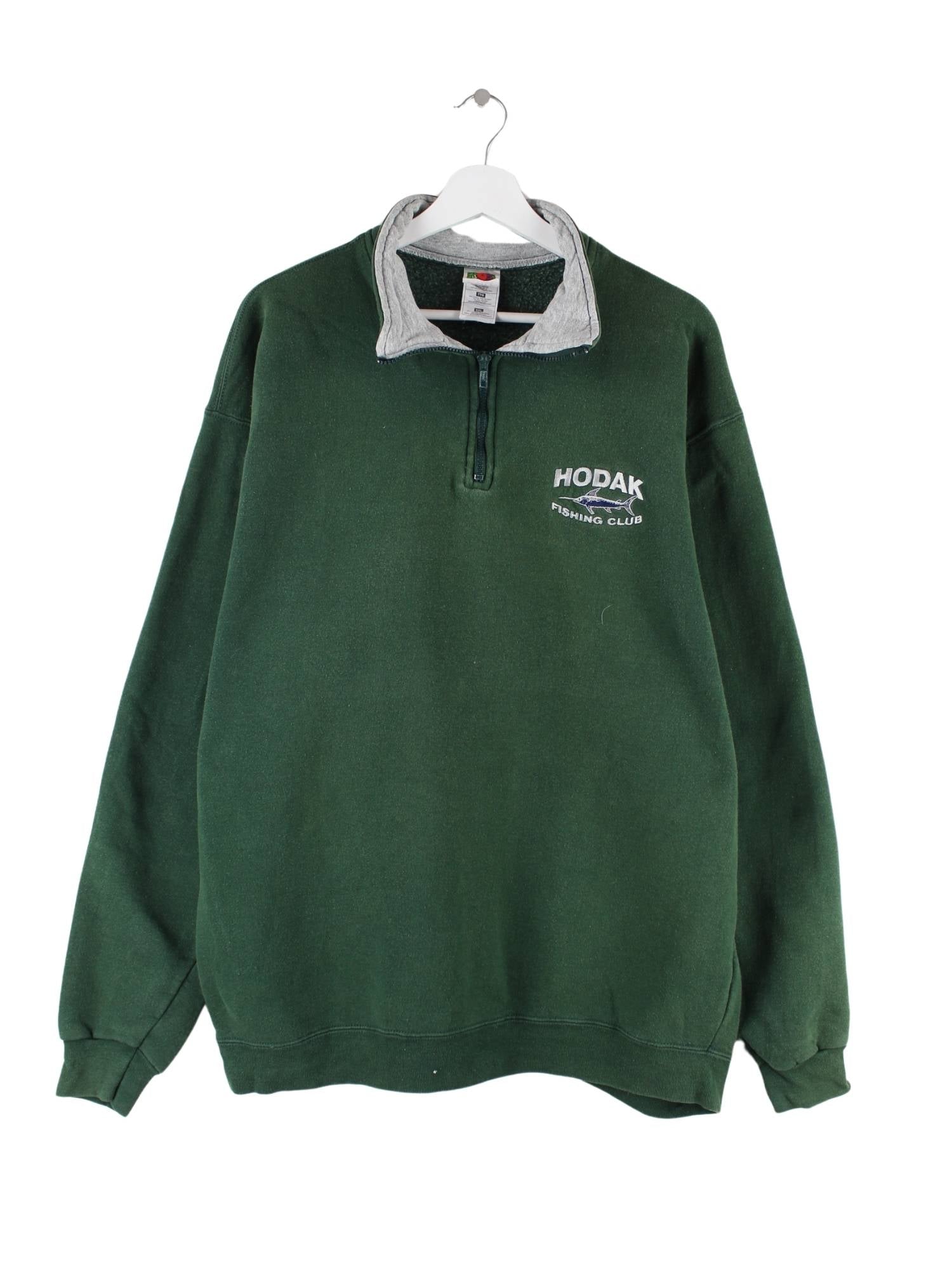 Fruit of the Loom 90s Vintage Fishing Embroidered Half Zip Sweater Grün XXL